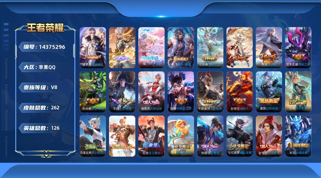 [14375296]贵族8-贵族积分78062-金标曜-147皮-1典藏-11传说-1无双-2珍品传说-1全皮-1改名卡 苹果手q140区 营地id472931049荣耀王者【珍品传说皮肤】:大耳狗之梦兔狲·蓬尾【无双皮肤】:器灵·螭龙剑【荣耀典藏】:星域神启【优质限定皮肤】:至尊宝凤求凰【传说皮肤】:地狱之眼一念神魔云诺千山愿照·九州拓启明星使久胜战神凤求凰武陵仙君仲夏夜之
