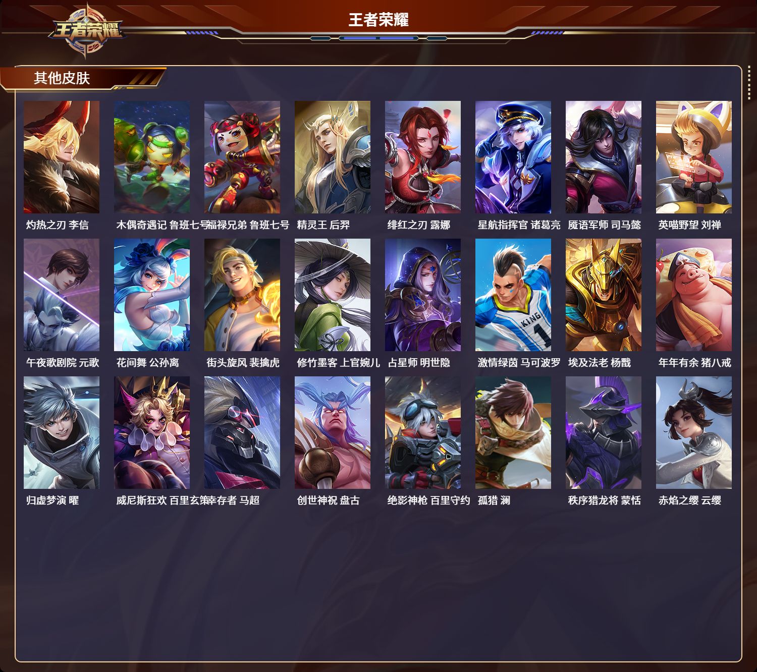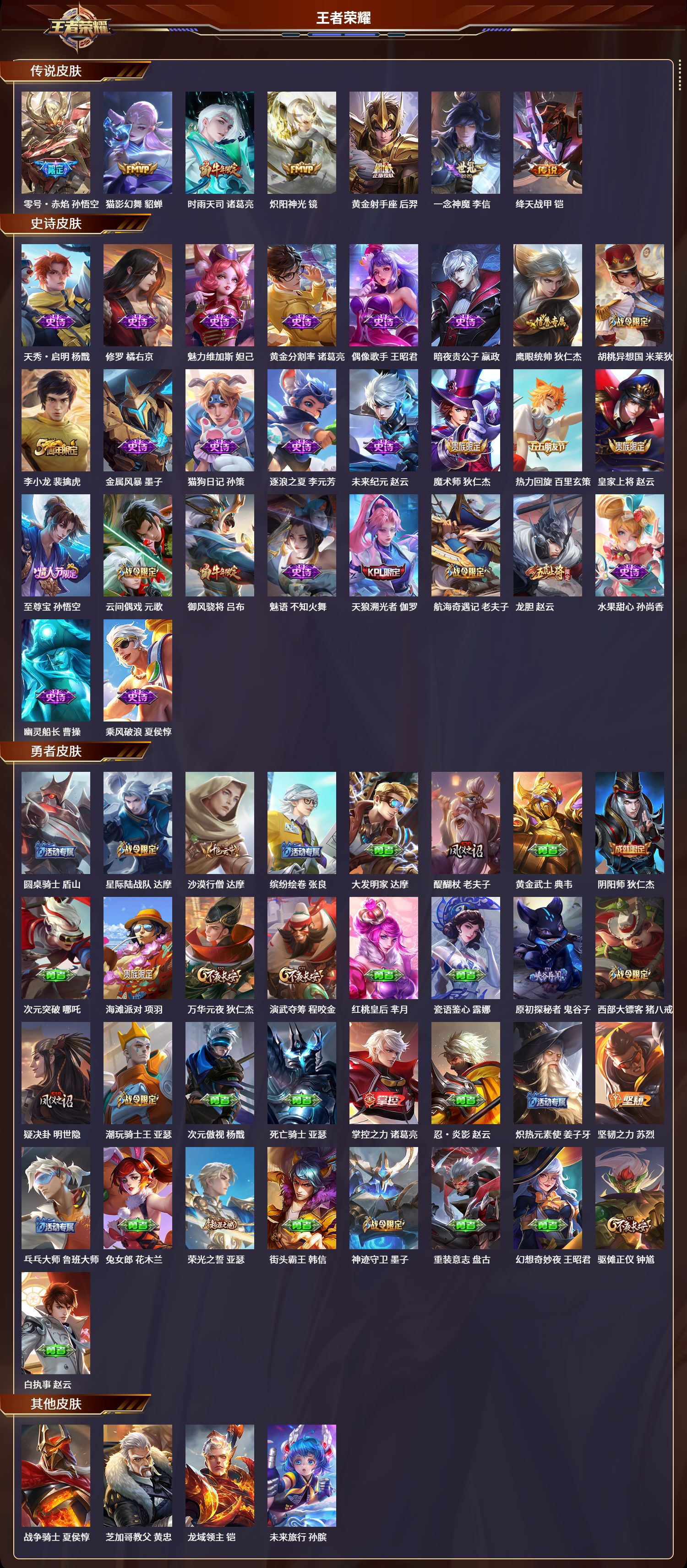 安卓qq/永恒钻石/94皮肤/91英雄/0典藏/0珍品无双/0无双/0珍品传说/7传说/26史诗/6稀有英雄【7 传说皮肤】零号·赤焰 孙悟空猫影幻舞 貂蝉时雨天司 诸葛亮炽阳神光 镜黄金射手座 后羿一念神魔 李信绛天战甲 铠【26 史诗皮肤】天秀·启明 杨戬修罗 橘右京魅力维加斯 妲己黄金分割率 诸葛亮偶像歌手 王昭君暗夜贵公子 嬴政鹰眼统帅 狄仁杰胡桃异想国 米莱狄