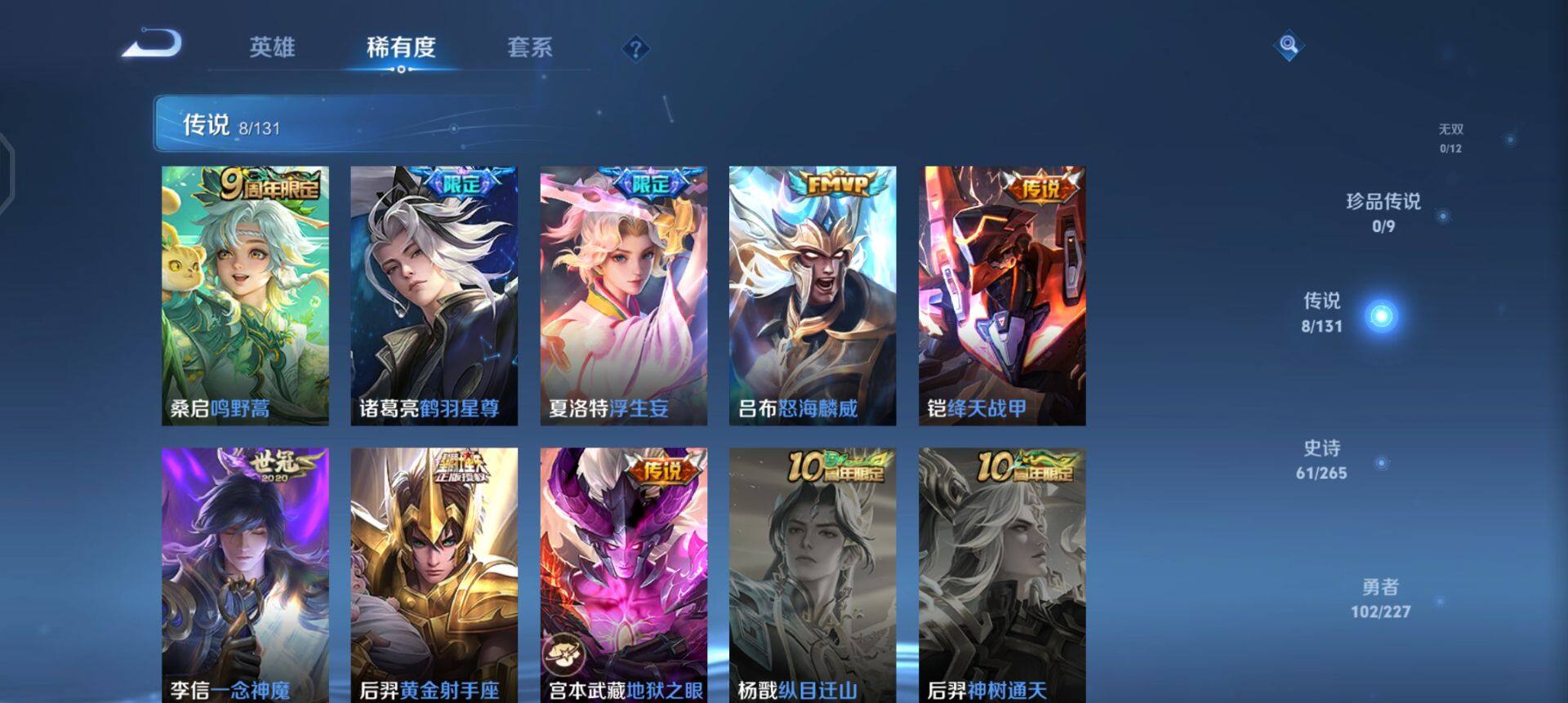 w11593,,可立即换绑无需挂单养号,,铭文满级,,典藏1,传说8,,,星传说2,,,按键5,,夺宝17,,安卓q-v7-最强王者段位-127英雄-205皮肤-1典藏皮肤-8传说-61史诗 【荣耀典藏】:韩信弑呛猎影 【传说皮肤】:桑启鸣野蒿,诸葛亮鹤羽星尊,夏洛特浮生妄,吕布怒海麟威,铠绛天战甲,李信一念神魔,后羿黄金射手座,宫本武藏地狱之眼 【限定皮肤】:虞姬夏日便利店,姜子牙天穹之誓,