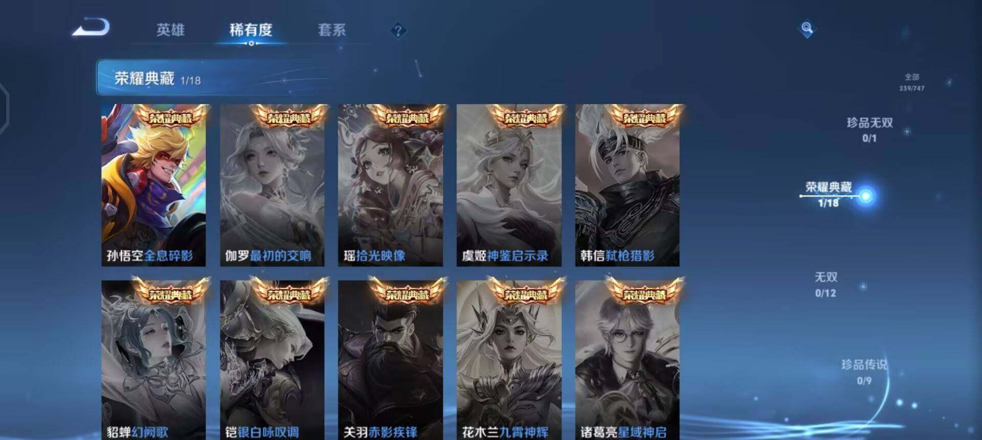 w11541,可立即换绑无需挂单养号,,铭文满级,,典藏1,,传说9,,,星传说2,,,按键6,,,夺宝70,,,安卓q-v7-最强王者段位-126英雄-239皮肤-1典藏-0珍品无双-0无双-0珍品传说-9传说-61史诗 【英雄全皮】:戈娅全皮,影全皮 【荣耀典藏】:孙悟空全息碎影 【传说皮肤】:后羿神树通天,桑启鸣野蒿,东皇太一灼幽烈阳,吕布怒海麟威,李信一念神魔,刘备时之恋人,干将莫邪久