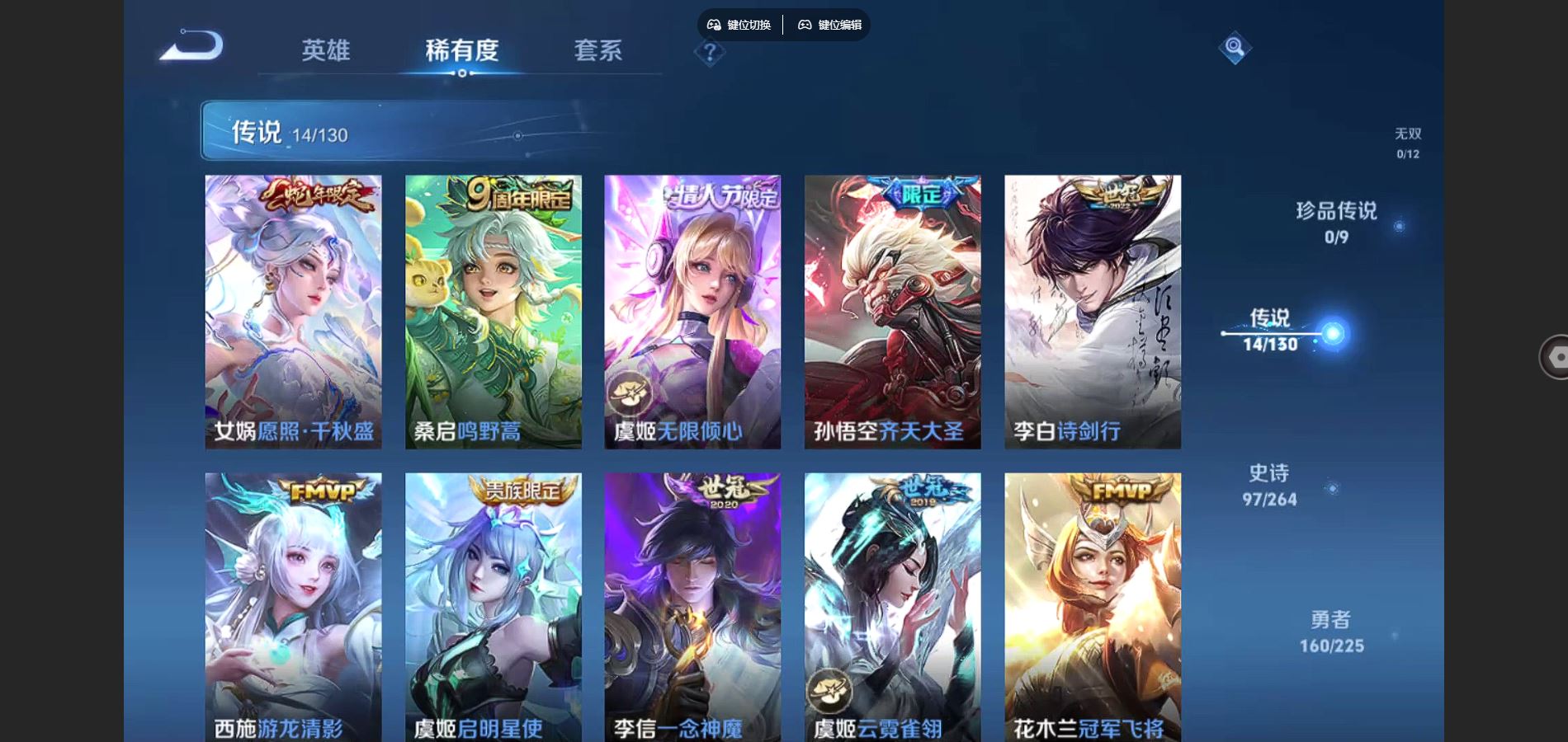 _2294869安卓q-v8-永恒钻石iii段位-125英雄-323皮肤-1典藏14传说-97史诗 【英雄全皮】:蒙恬全皮,戈娅全皮,影全皮 【荣耀典藏】:李白鸣剑曳影 【星元】幽冥之眼金色仲夏夜无限倾慕 【传说皮肤】:貂蝉仲夏夜之梦,宫本武藏地狱之眼,花木兰冠军飞将,后羿黄金射手座,李白诗剑行,李信一念神魔,梦奇胖达荣荣,孙悟空齐天大圣,西施游龙清影,虞姬无限倾心,虞姬启明星使,虞姬云霓雀翎,女娲愿照千秋盛,桑启鸣野蒿