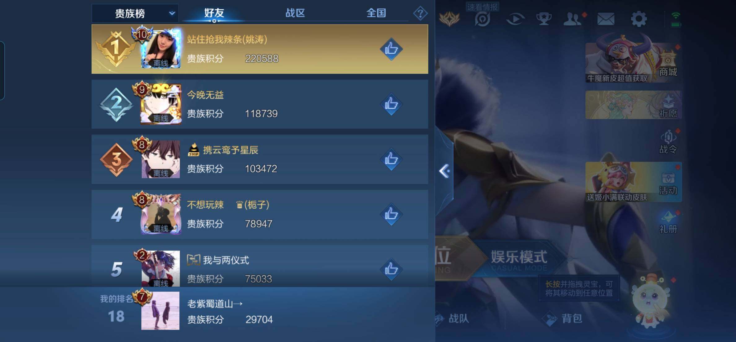 _2294870安卓q-v7-最强王者段位-123英雄-231皮肤-1典藏2传说-53史诗 【荣耀典藏】:夏侯惇无限飓风号 【传说皮肤】:桑启鸣野蒿,宫本武藏地狱之眼 【限定皮肤】:白起狰,姜子牙天穹之誓,狄仁杰阴阳师,虞姬凯尔特女王,赵云皇家上将,墨子神迹守卫,嬴政优雅恋人,孙尚香蔷薇恋人,鲁班七号狮舞东方,庄周高山流水,高渐离玩趣恶龙,钟无艳超时空战士,扁鹊奇幻香踪,白起夜都怪侠,芈月重明,芈月幻夜卜梦,夏侯惇朔风刀,甄姬游园惊梦,甄姬落雪兰心,典韦穷奇,典韦蓝屏警告,狄仁杰魔术师,狄仁杰万华元夜,达摩沙漠行僧,项羽海滩派对,老夫子醍醐杖,老夫子航海奇遇记,程咬金演武夺筹,兰陵王金庭之子,牛魔御旌,后羿圣弓游侠,李元芳云中旅人,钟馗神迹守卫,钟馗驱傩正仪,杨玉环遇见飞天,杨戬潮玩骑兵,女娲朔望之晖,干将莫邪真爱魔法,雅典娜单词大作战,蔡文姬繁星吟游,太乙真人饕餮,鬼谷子原初探秘者,鬼谷子五谷丰年,黄忠火炮绅士,苏烈千军破阵,弈星混沌棋,沈梦溪大漠名商,明世隐疑决卦,明世隐吟游魔法,裴擒虎李小龙,裴擒虎擒涛扼浪,狂铁御狮,米莱狄御霄,盾山御銮,上官婉儿梁祝,嫦娥拒霜思,嫦娥暖冬兔眠,蒙犽狂想玩偶喵,鲁班大师探海日志,桑启海盐诗旅,暃星界游侠,阿古朵江河有灵,张良古海寻踪,鬼谷子天穹祈灯,鲁班七号蔬乡物语,李元芳蔬乡物语,刘邦剑破天穹,程咬金群星魔术团,周瑜熔金海岸 【赛季限定】:白起狰,芈月重明,夏侯惇朔风刀,典韦穷奇,狄仁杰万华元夜,达摩沙漠行僧,老夫子醍醐杖,程咬金演武夺筹,兰陵王金庭之子,张良古海寻踪,牛魔御旌,李元芳云中旅人,虞姬凯尔特女王,钟馗驱傩正仪,太乙真人饕餮,鬼谷子原初探秘者,苏烈千军破阵,弈星混沌棋,沈梦溪大漠名商,明世隐疑决卦,裴擒虎擒涛扼浪,狂铁御狮,米莱狄御霄,盾山御銮,鲁班大师探海日志,桑启海盐诗旅,鬼谷子天穹祈灯,刘邦剑破天穹,姜子牙天穹之誓 【战令限定】:墨子神迹守卫,鲁班七号狮舞东方,钟无艳超时空战士,扁鹊奇幻香踪,白起夜都怪侠,芈月幻夜卜梦,甄姬落雪兰心,典韦蓝屏警告,老夫子航海奇遇记,后羿圣弓游侠,钟馗神迹守卫,杨戬潮玩骑兵,女娲朔望之晖,干将莫邪真爱魔法,雅典娜单词大作战,黄忠火炮绅士,明世隐吟游魔法,嫦娥暖冬兔眠,蒙犽狂想玩偶喵,暃星界游侠,鲁班七号蔬乡物语,李元芳蔬乡物语 【史诗皮肤】:鲁班七号电玩小子,项羽苍穹之光