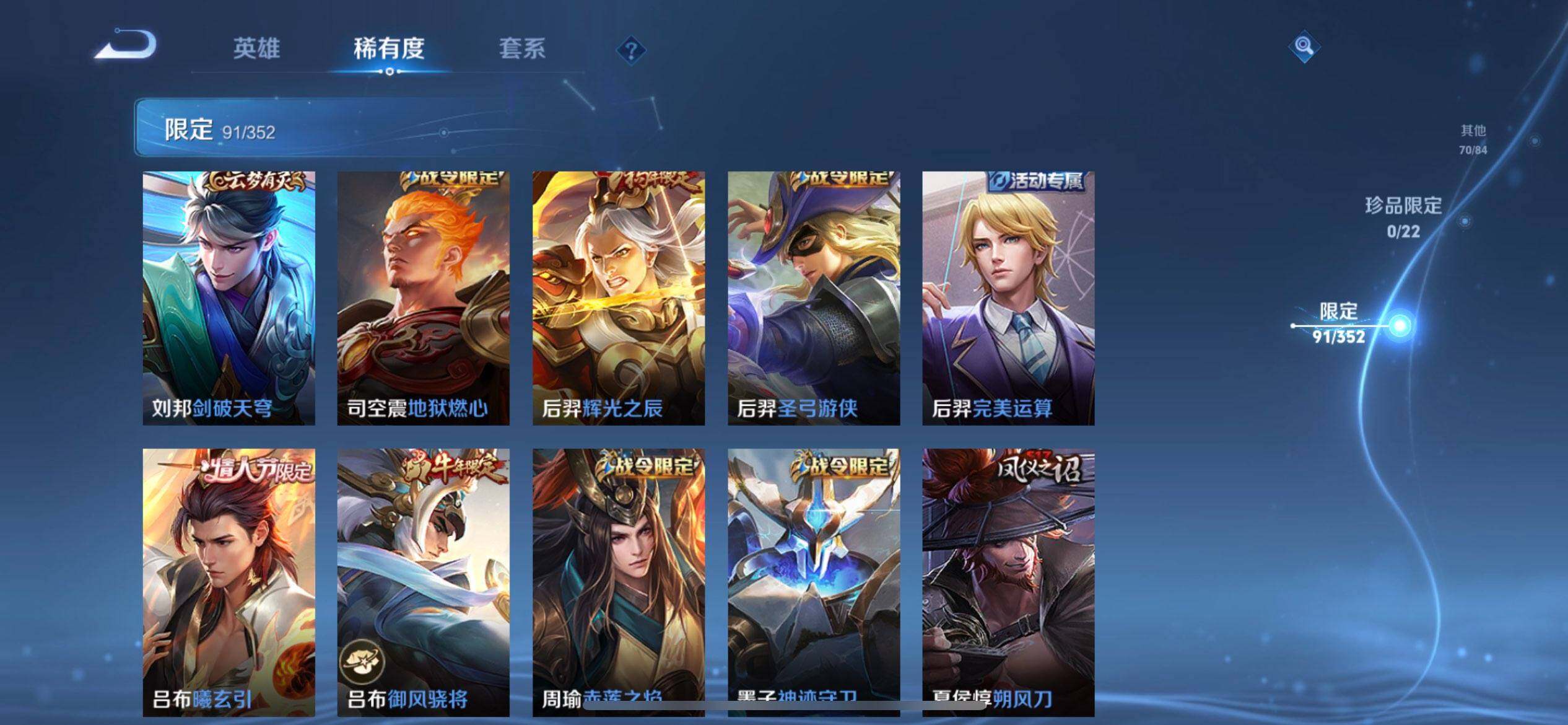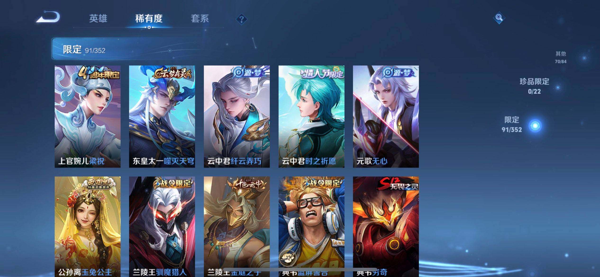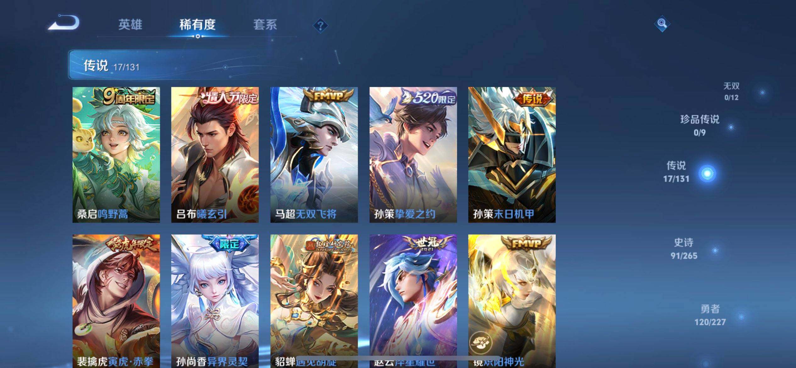 w11584,,可立即换绑无需挂单养号,,铭文满级,,典藏2,,传说17,,,星传说1,,,按键3,,天幕2,,,夺宝193,,苹果q-v8-尊贵铂金i段位-127英雄-300皮肤-2典藏-0珍品无双-0无双-0珍品传说-17传说-91史诗 【荣耀典藏】:夏侯惇无限飓风号,诸葛亮星域神启 【传说皮肤】:桑启鸣野蒿,吕布曦玄引,马超无双飞将,孙策挚爱之约,孙策末日机甲,裴擒虎寅虎赤拳,孙尚香异界