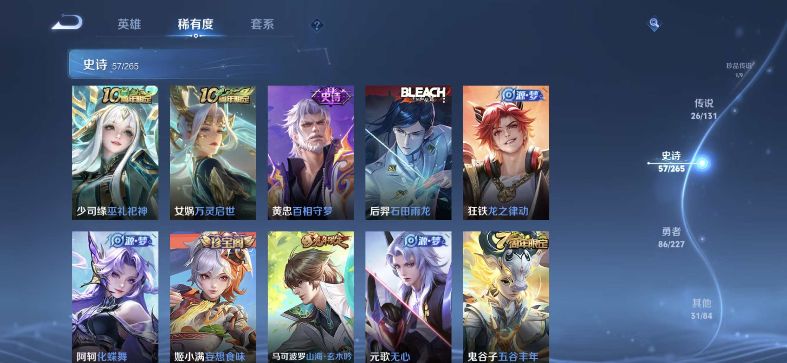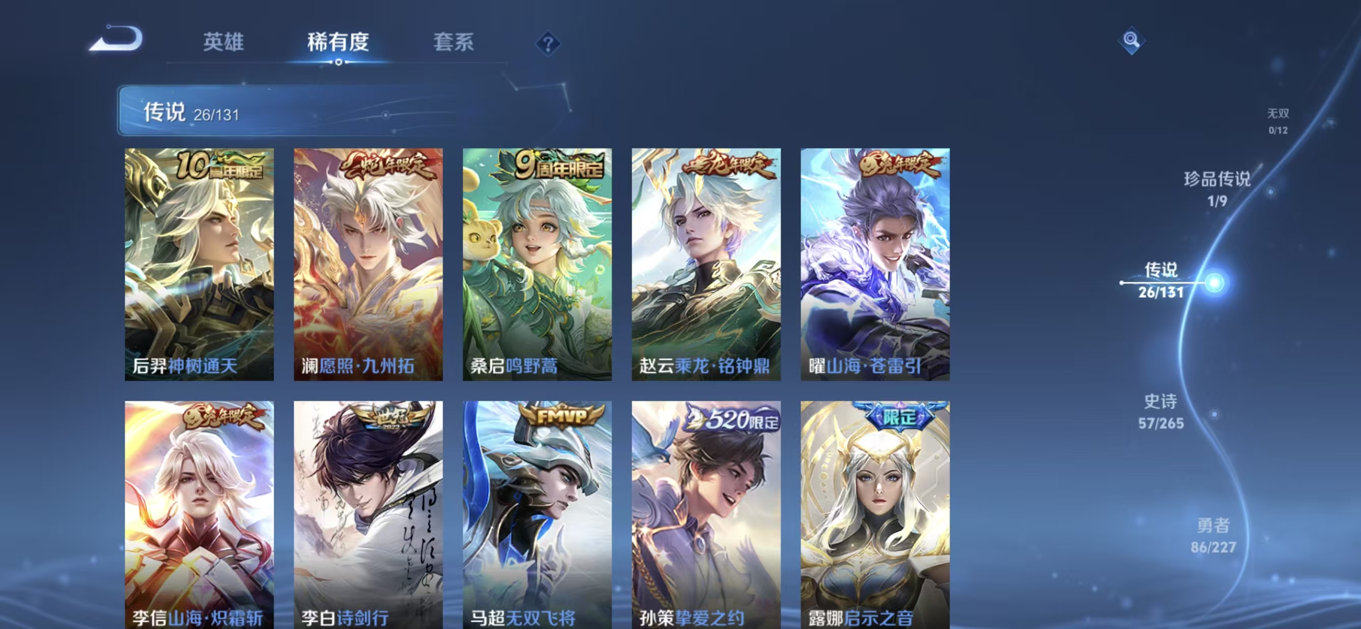v8【203皮肤2典藏1珍品26传说】神鉴启示录 星域神启 怪盗基德 山海·炽霜斩 无双飞将 启示之音 时雨天司 太华 鸣野蒿 飞鸢探春 山海·苍雷引 淬星耀世 挚爱之约 李 乘龙·铭钟鼎 寅虎·赤拳 猫影幻舞 神树通天 黄金射手座 异界灵契 启明星使 地狱之眼 默契交锋 武陵仙君 一念神魔 云鹰飞将 遇见胡旋 愿照·九州拓 诗剑行 心灵骇客 化蝶舞 逐浪之夏 水果甜心 永昼 百相守梦 特工魅影 缤纷独角兽 龙之律动 玩趣恶龙 紫霞仙子 星夜王子 妄想食味 魅力维加斯 石田雨龙 冰雪圆舞曲 巫礼祀神 末日机甲 赏金猎手 苍穹之光 白龙吟 幽灵船长 修罗 无心 晚萤 女仆咖啡 鬼剑武藏 万灵启世 热力回旋 金属风暴 德古拉伯爵 偶像歌手 圣诞恋歌 飞衡 吟游魔法 阴阳师 魔术师 蔚蓝守将 电玩高手 孙行者 匿光追影者 默契交锋 拒霜思 水晶猎龙者 夜都怪侠 逐梦之影 圣弓游侠 午后时光 乓乓大师 海滩派对 百木心呛 五谷丰年 李小龙 劲辣红锅 皇家上将 傲雪梅呛 真爱魔法 蜜橘之夏 神迹守卫 火炮绅士 时之祈愿 航海奇遇记 天狼溯光者 高山流水 山海·玄木吟 沉稳之力 幻夜卜梦 死亡骑士 白色死神 浪漫序章 爱心护理 布丁狗之约 忍·炎影 命运加冕 契约魔法 小满鸭 潮玩探月行 戏梦巡演 化身博士 死霸装 牛运亨通 守护之力 踏浪烽翎 天使之翼 鹤鸣心笺 女武神 零食大作战 西部游侠 鸿运当头 金色潮汐 阿尔法小队 漠中幻影 春野之旅 龙舞盛年 群星魔术团 教廷特使 特工战影 兔女郎 缤纷绘卷 纽约教父 熔金海岸 未来纪元 敬我三分 炽热元素使 万象初新 圆桌骑士 逐霄战戟 雪境奇遇 拳王 星梦巡礼 街头霸王 野性能量 苍林狼骑 龙腾万里 灵野札记 春野闲踪 虎啸剑宗 汉昭烈帝 玫蓝誓约 制霸全明星 唤灵魔甲 花好人间 五福同心 天穹祈灯 剑破天穹 沙漠行僧 古海寻踪 噬灭天穹 探海日志 万华元夜 原初追逐者 驱傩正仪 谧流熔炉 金庭之子 天穹之誓 云中旅人 千军破阵 海盐诗旅 擒涛扼浪 大漠名商 演武夺筹