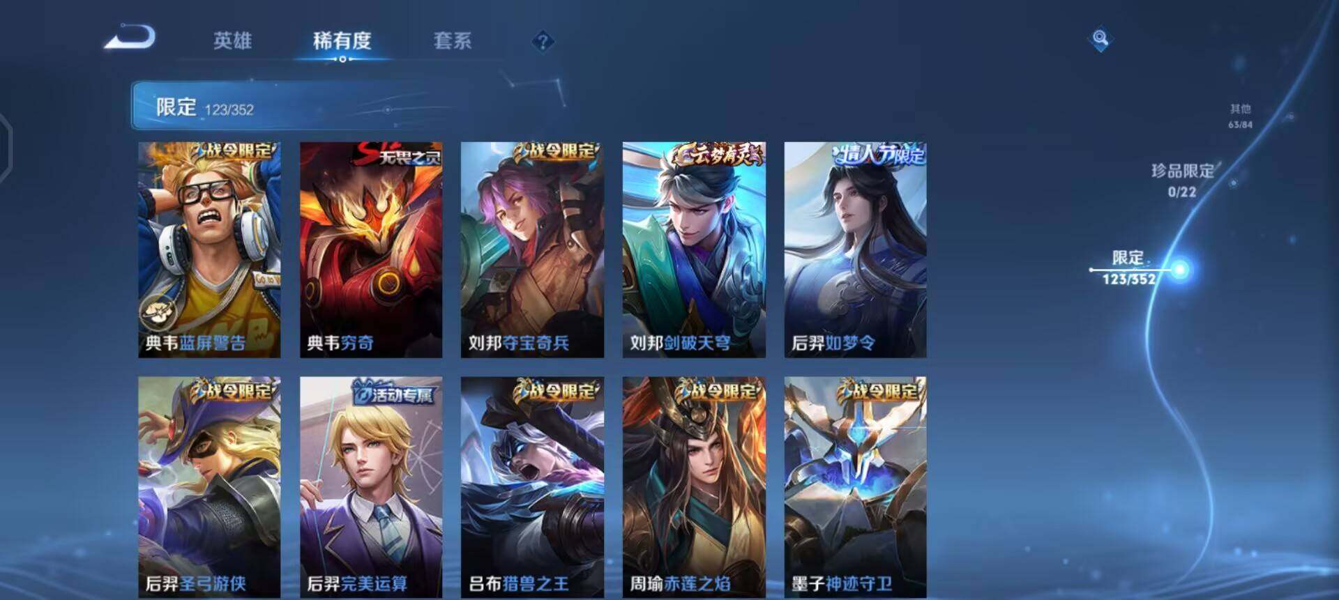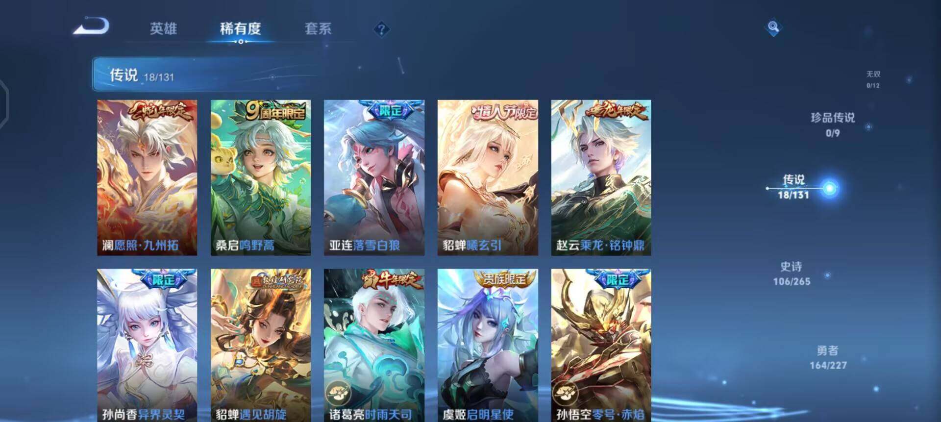 w11492,,,可立即换绑无需挂单养号,铭文满级,,典藏2,,传说18,,,星传说3,,,按键2,,,夺宝228,,安卓q-v8-尊贵铂金i段位-128英雄-353皮肤-2典藏-0珍品无双-0无双-0珍品传说-18传说-106史诗 【英雄全皮】:刘邦全皮,影全皮 【荣耀典藏】:武则天英雄,孙悟空全息碎影,关羽赤影疾锋 【传说皮肤】:澜愿照九州拓,桑启鸣野蒿,亚连落雪白狼,貂蝉曦玄引,赵云乘龙