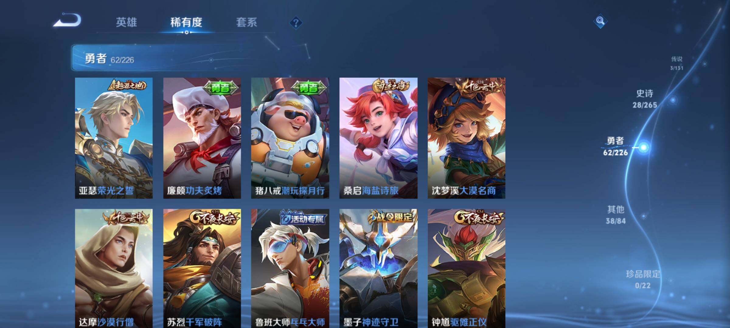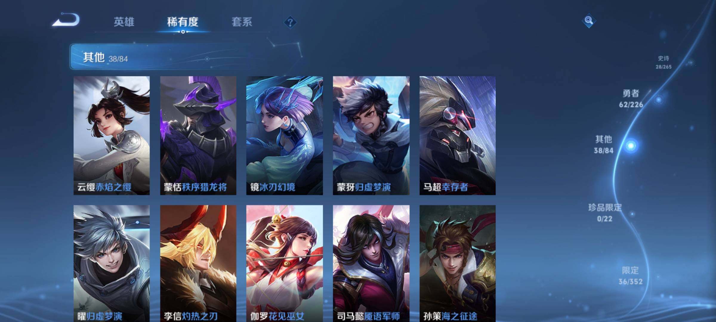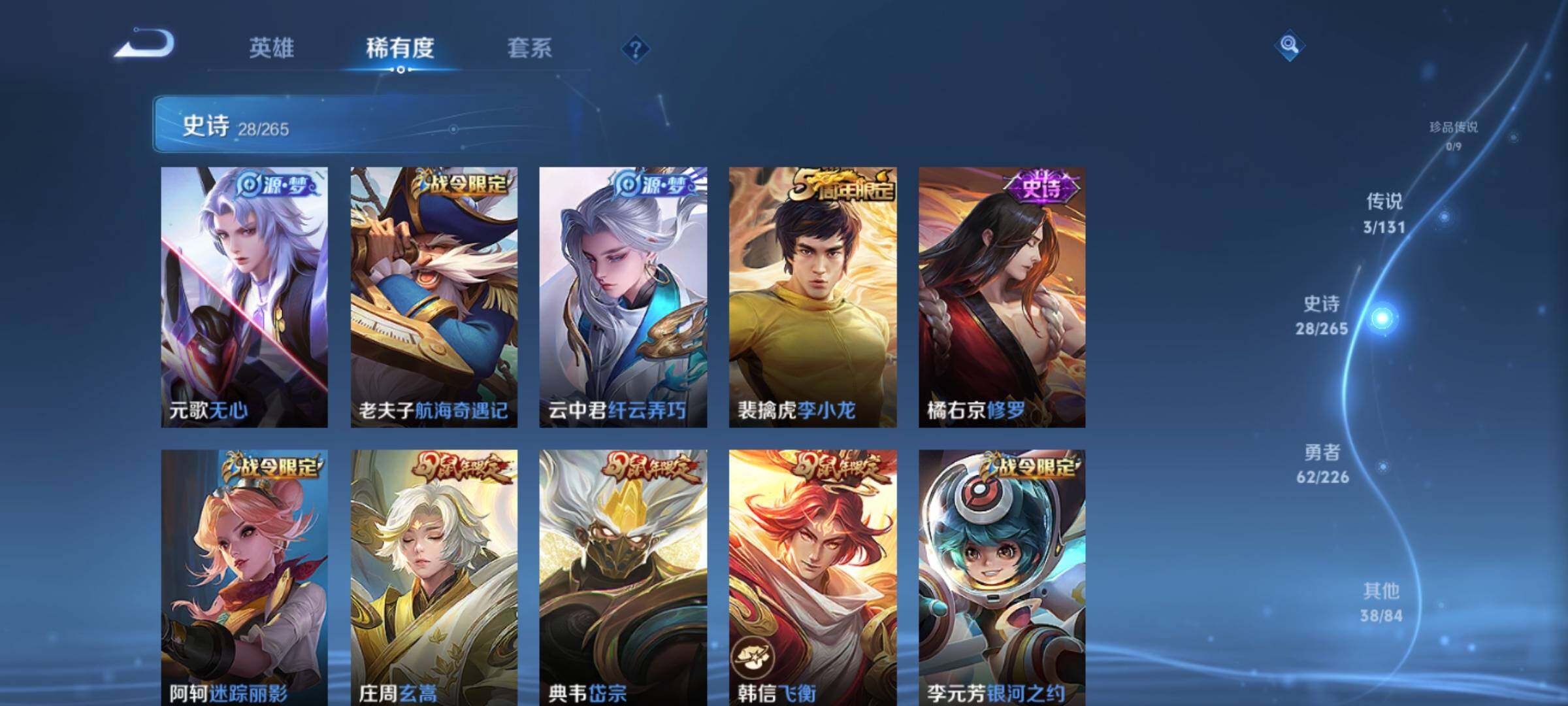 _2294964-q-v7-至尊星耀v段位-打野12段122英雄-131皮肤-1星元幽冥火-3传说-28史诗 【传说皮肤】:干将莫邪久胜战神,李白凤求凰,孙悟空地狱火 【限定皮肤】:狄仁杰阴阳师,赵云皇家上将,墨子神迹守卫,庄周玄嵩,高渐离玩趣恶龙,阿轲迷踪丽影,周瑜赤莲之焰,元歌无心,夏侯惇朔风刀,典韦岱宗,狄仁杰魔术师,狄仁杰万华元夜,达摩沙漠行僧,项羽海滩派对,老夫子醍醐杖,老夫子航海奇遇记,程咬金演武夺筹,刘邦夺宝奇兵,韩信飞衡,兰陵王驯魔猎人,孙悟空至尊宝,李元芳银河之约,钟馗驱傩正仪,鬼谷子原初探秘者,苏烈千军破阵,弈星混沌棋,沈梦溪星空之诺,沈梦溪大漠名商,明世隐疑决卦,裴擒虎李小龙,云中君纤云弄巧,盾山御銮,上官婉儿梁祝,桑启海盐诗旅 【年限皮肤】:李白凤求凰,韩信飞衡,典韦岱宗,庄周玄嵩 【赛季限定】:夏侯惇朔风刀,狄仁杰万华元夜,达摩沙漠行僧,老夫子醍醐杖,程咬金演武夺筹,钟馗驱傩正仪,鬼谷子原初探秘者,苏烈千军破阵,弈星混沌棋,沈梦溪大漠名商,明世隐疑决卦,盾山御銮,桑启海盐诗旅 【战令限定】:墨子神迹守卫,阿轲迷踪丽影,周瑜赤莲之焰,老夫子航海奇遇记,刘邦夺宝奇兵,兰陵王驯魔猎人,李元芳银河之约,沈梦溪星空之诺 【史诗皮肤】:赵云皇家上将,貂蝉圣诞恋歌,狄仁杰魔术师,孙尚香水果甜心,妲己魅力维加斯,墨子金属风暴,曹操幽灵船长,孙悟空至尊宝,花木兰水晶猎龙者,夏侯惇乘风破浪,诸葛亮黄金分割率,亚瑟心灵战警,蔡文姬舞动绿茵,刘禅天才门将,李元芳逐浪之夏,狄仁杰鹰眼统帅,兰陵王驯魔猎人,上官婉儿梁祝,李元芳银河之约,韩信飞衡,典韦岱宗,庄周玄嵩,阿轲迷踪丽影,橘右京修罗,裴擒虎李小龙,云中君纤云弄巧,老夫子航海奇遇记,元歌无心 【其他皮肤】:项羽海滩派对,韩信教廷特使,韩信街头霸王,露娜哥特玫瑰,达摩大发明家,芈月红桃皇后,程咬金星际陆战队,白起白色死神,扁鹊化身博士,扁鹊救世之瞳,安琪拉玩偶对对碰,姜子牙时尚教父,妲己少女阿狸,亚瑟死亡骑士,达摩拳王,张飞五福同心,甄姬花好人间,狄仁杰阴阳师,刘备汉昭烈帝,关羽龙腾万里,墨子进击墨子号,钟无艳海滩丽影,宫本武藏霸王丸,狂铁命运角斗场,老夫子功夫老勺,孙尚香沉稳之力,诸葛亮掌控之力,鬼谷子幻乐之宴,大乔守护之力,明世隐虹云星官,庄周奇妙博物学,小乔丁香结,盾山御銮,高渐离玩趣恶龙,沈梦溪鲨炮海盗猫,姜子牙炽热元
