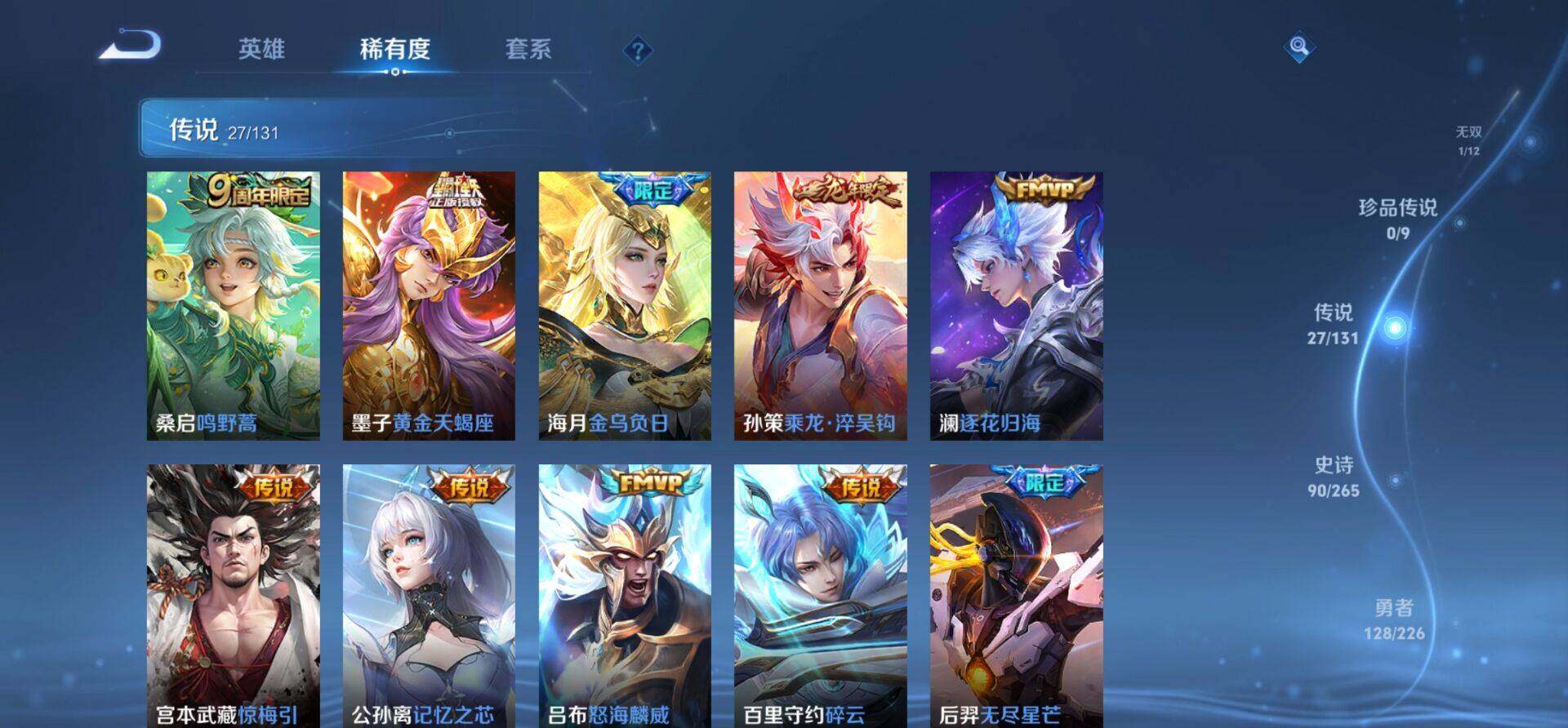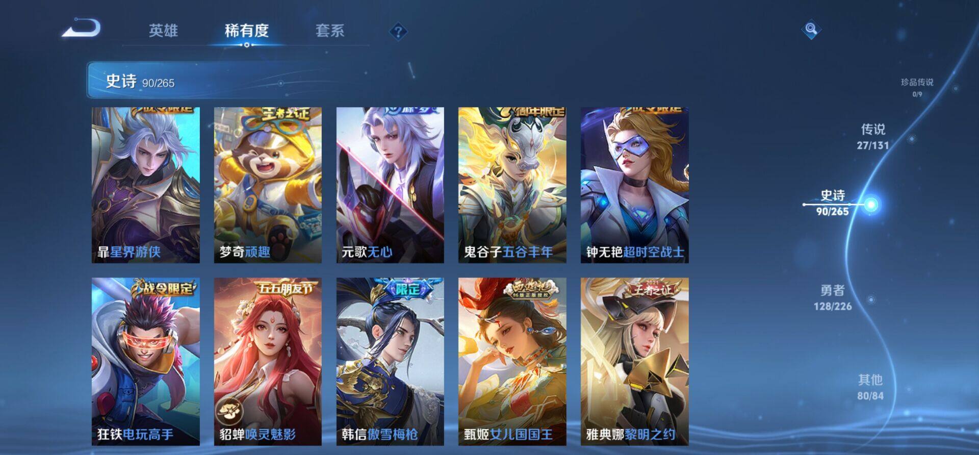 _2295043-wx-v9-社交限制-至尊星耀iv段位-123英雄-329皮肤-2典藏-0珍品无双-1无双-0珍品传说-27传说-91史诗 【英雄全皮】:刘邦全皮,蒙恬全皮 【荣耀典藏】:李白鸣剑曳影,花木兰九霄神辉 【无双皮肤】:李白碎月剑心 【传说皮肤】:桑启鸣野蒿,墨子黄金天蝎座,海月金乌负日,孙策乘龙淬吴钩,澜逐花归海,宫本武藏惊梅引,公孙离记忆之芯,吕布怒海麟威,百里守约碎云,后羿无尽星芒,孙尚香异界灵契,赵云淬星耀世,小乔音你心动,诸葛亮时雨天司,铠绛天战甲,镜炽阳神光,虞姬启明星使,孙悟空零号赤焰,关羽武圣,曜云鹰飞将,李信一念神魔,张良黄金白羊座,虞姬云霓雀翎,后羿黄金射手座,貂蝉仲夏夜之梦,孙尚香末日机甲,狄仁杰超时空战士 【限定皮肤】:白起狰,蒙犽顽岩魄,蔡文姬夏日便利店,大乔绒语心约,虞姬夏日便利店,姜子牙天穹之誓,杨戬破阵退雄兵,狄仁杰阴阳师,小乔纯白花嫁,赵云皇家上将,墨子神迹守卫,嬴政优雅恋人,孙尚香异界灵契,钟无艳超时空战士,扁鹊奇幻香踪,芈月幻夜卜梦,元歌无心,甄姬幽恒,甄姬女儿国国王,甄姬落雪兰心,典韦蓝屏警告,狄仁杰魔术师,狄仁杰万华元夜,达摩沙漠行僧,项羽海滩派对,老夫子醍醐杖,关羽武圣,程咬金演武夺筹,刘邦夺宝奇兵,韩信傲雪梅呛,王昭君午后时光,兰陵王金庭之子,花木兰青春决赛季,亚瑟潮玩骑士王,孙悟空大圣娶亲,孙悟空零号赤焰,孙悟空孙行者,后羿辉光之辰,后羿圣弓游侠,后羿无尽星芒,李元芳云中旅人,虞姬启明星使,杨戬潮玩骑兵,女娲朔望之晖,干将莫邪真爱魔法,雅典娜单词大作战,雅典娜黎明之约,鬼谷子原初探秘者,鬼谷子五谷丰年,诸葛亮时雨天司,黄忠火炮绅士,苏烈千军破阵,百里玄策原初追逐者,梦奇顽趣,沈梦溪大漠名商,裴擒虎李小龙,裴擒虎擒涛扼浪,狂铁电玩高手,云中君纤云弄巧,上官婉儿梁祝,嫦娥拒霜思,嫦娥暖冬兔眠,西施玲珑珍味,西施至美乘鲤谣,蒙犽狂想玩偶喵,鲁班大师探海日志,镜匿光追影者,桑启海盐诗旅,暃星界游侠,戈娅驭风魔法,艾琳流音漫舞,司空震地狱燃心,阿古朵江河有灵,张良古海寻踪,蒙犽百解令,蒙恬荣光圣徽,高渐离燃音魔法,妲己灵卜魔法,鬼谷子天穹祈灯,李白碎月剑心,伽罗琥珀纪元,姬小满妄想食味,安琪拉乘龙聚宝船,孙策乘龙淬吴钩,沈梦溪龙舞盛年,鲁班七号蔬乡物语,李元芳蔬乡物语,海月金乌负日,刘邦剑破天穹,程咬金群星魔术团,镜青焰无极,