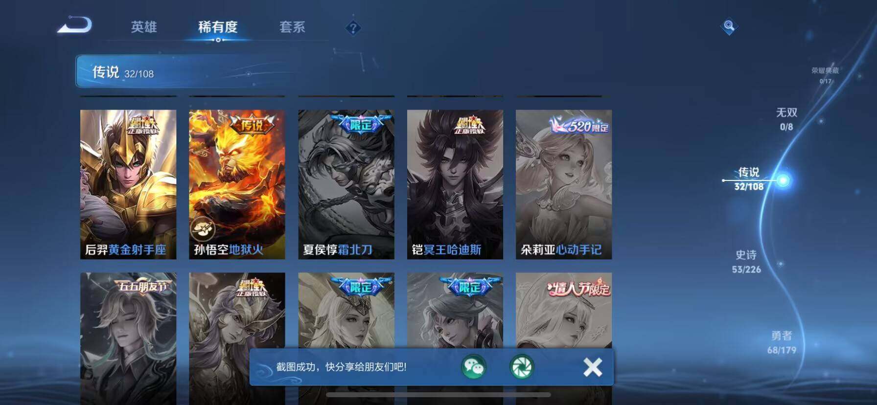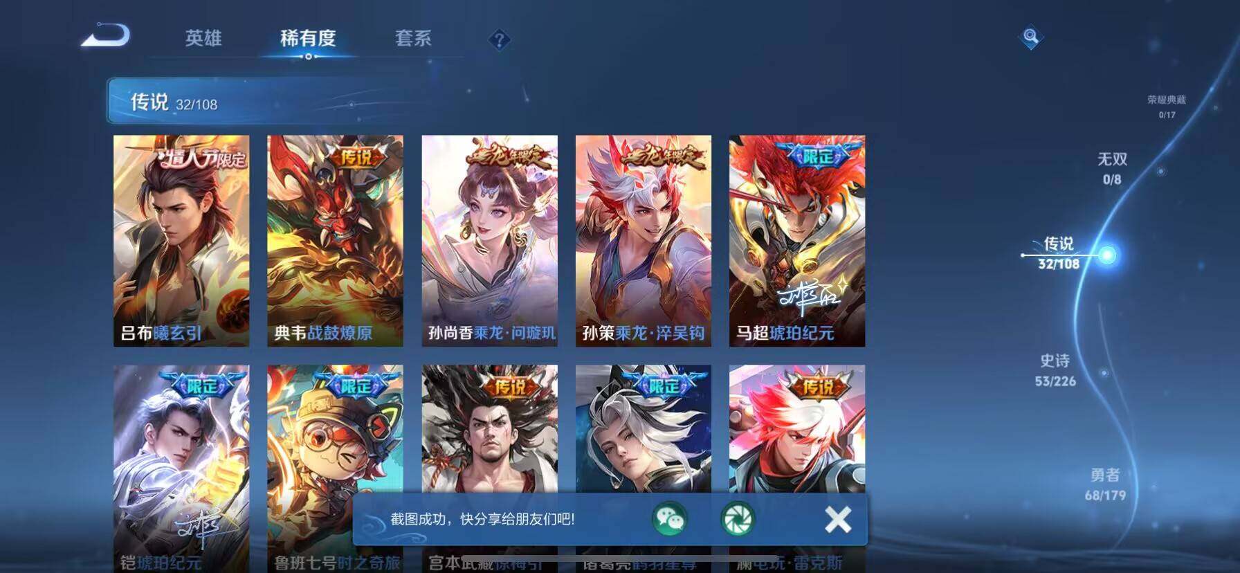 _2295056-wx-v0-永恒钻石i段位-121英雄-223皮肤-0典藏-0珍品无双-0无双-0珍品传说-32传说-57史诗 【英雄全皮】:李信全皮 【传说皮肤】:吕布曦玄引,典韦战鼓燎原,孙尚香乘龙问璇玑,孙策乘龙淬吴钩,马超琥珀纪元,铠琥珀纪元,鲁班七号时之奇旅,宫本武藏惊梅引,诸葛亮鹤羽星尊,澜电玩雷克斯,亚瑟追逃游戏,安琪拉追逃游戏,公孙离记忆之芯,孙悟空齐天大圣,曜山海苍雷引,李信山海炽霜斩,吕布怒海麟威,李白诗剑行,孙策末日机甲,裴擒虎寅虎赤拳,赵云淬星耀世,李元芳飞鸢探春,兰陵王默契交锋,铠绛天战甲,镜炽阳神光,虞姬启明星使,孙悟空零号赤焰,曜云鹰飞将,李信一念神魔,花木兰冠军飞将,后羿黄金射手座,孙悟空地狱火 【限定皮肤】:姜子牙天穹之誓,狄仁杰阴阳师,赵云皇家上将,赵云引擎之心,赵云龙胆,鲁班七号时之奇旅,高渐离死亡摇滚,扁鹊奇幻香踪,元歌无心,甄姬落雪兰心,典韦岱宗,马可波罗山海玄木吟,狄仁杰魔术师,项羽海滩派对,安琪拉追逃游戏,韩信飞衡,兰陵王默契交锋,花木兰默契交锋,亚瑟追逃游戏,孙悟空至尊宝,孙悟空零号赤焰,孙悟空齐天大圣,后羿如梦令,刘备百相守梦,李元芳云中旅人,虞姬启明星使,杨戬潮玩骑兵,女娲朔望之晖,诸葛亮鹤羽星尊,黄忠烈魂,沈梦溪匿光破解者,裴擒虎寅虎赤拳,裴擒虎擒涛扼浪,云中君纤云弄巧,李信山海炽霜斩,上官婉儿梁祝,嫦娥拒霜思,嫦娥暖冬兔眠,曜山海苍雷引,西施玲珑珍味,鲁班大师探海日志,桑启海盐诗旅,金蝉唐三藏,暃星界游侠,戈娅驭风魔法,艾琳流音漫舞,司空震地狱燃心,阿古朵江河有灵,张良古海寻踪,蒙犽百解令,高渐离燃音魔法,妲己灵卜魔法,鬼谷子天穹祈灯,伽罗琥珀纪元,铠琥珀纪元,马超琥珀纪元,孙尚香乘龙问璇玑,孙策乘龙淬吴钩,吕布曦玄引,沈梦溪龙舞盛年,鲁班七号蔬乡物语,李元芳蔬乡物语,刘邦剑破天穹 【年限皮肤】:裴擒虎寅虎赤拳,韩信飞衡,典韦岱宗,黄忠烈魂,赵云龙胆,马可波罗山海玄木吟,李信山海炽霜斩,曜山海苍雷引,孙尚香乘龙问璇玑,孙策乘龙淬吴钩 【赛季限定】:张良古海寻踪,李元芳云中旅人,裴擒虎擒涛扼浪,鲁班大师探海日志,桑启海盐诗旅,鬼谷子天穹祈灯,刘邦剑破天穹,姜子牙天穹之誓 【战令限定】:扁鹊奇幻香踪,甄姬落雪兰心,艾琳流音漫舞,杨戬潮玩骑兵,女娲朔望之晖,嫦娥暖冬兔眠,西施玲珑珍味,司空震地狱燃心,暃星界游侠,戈娅驭风魔法,