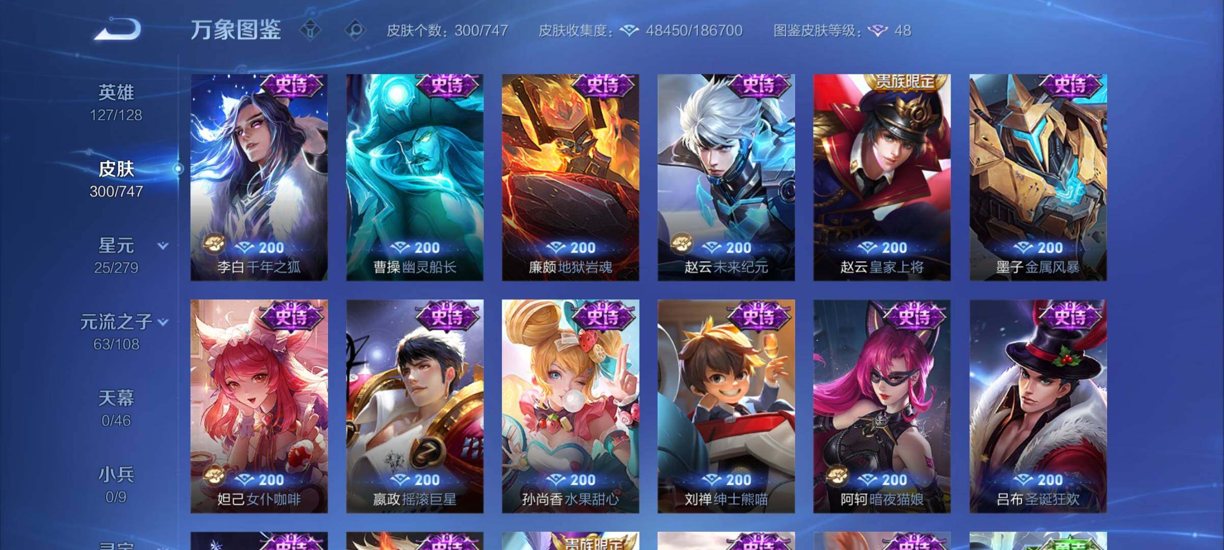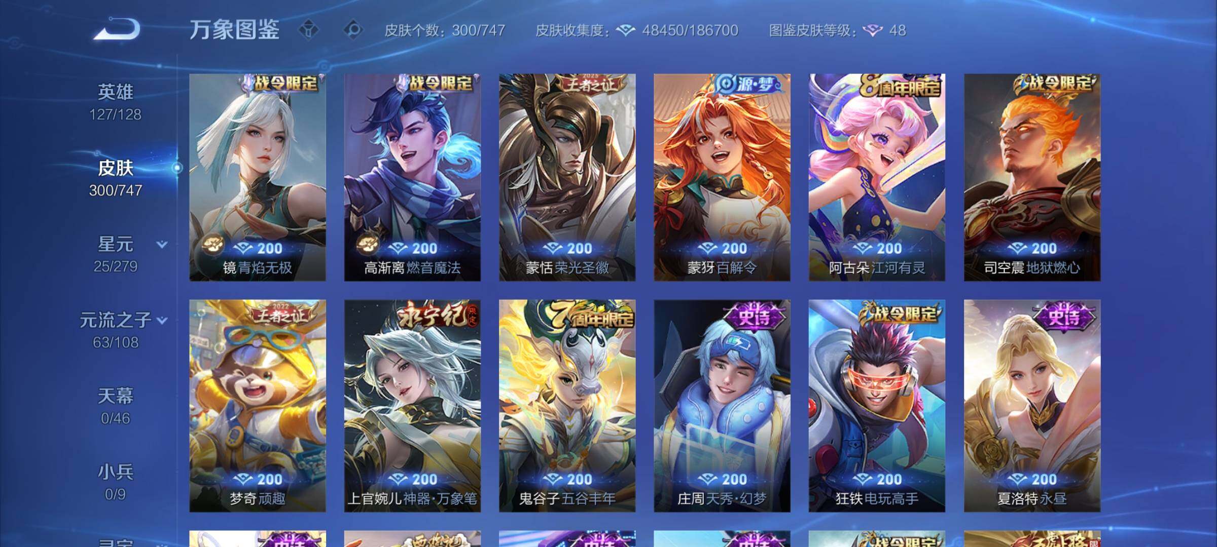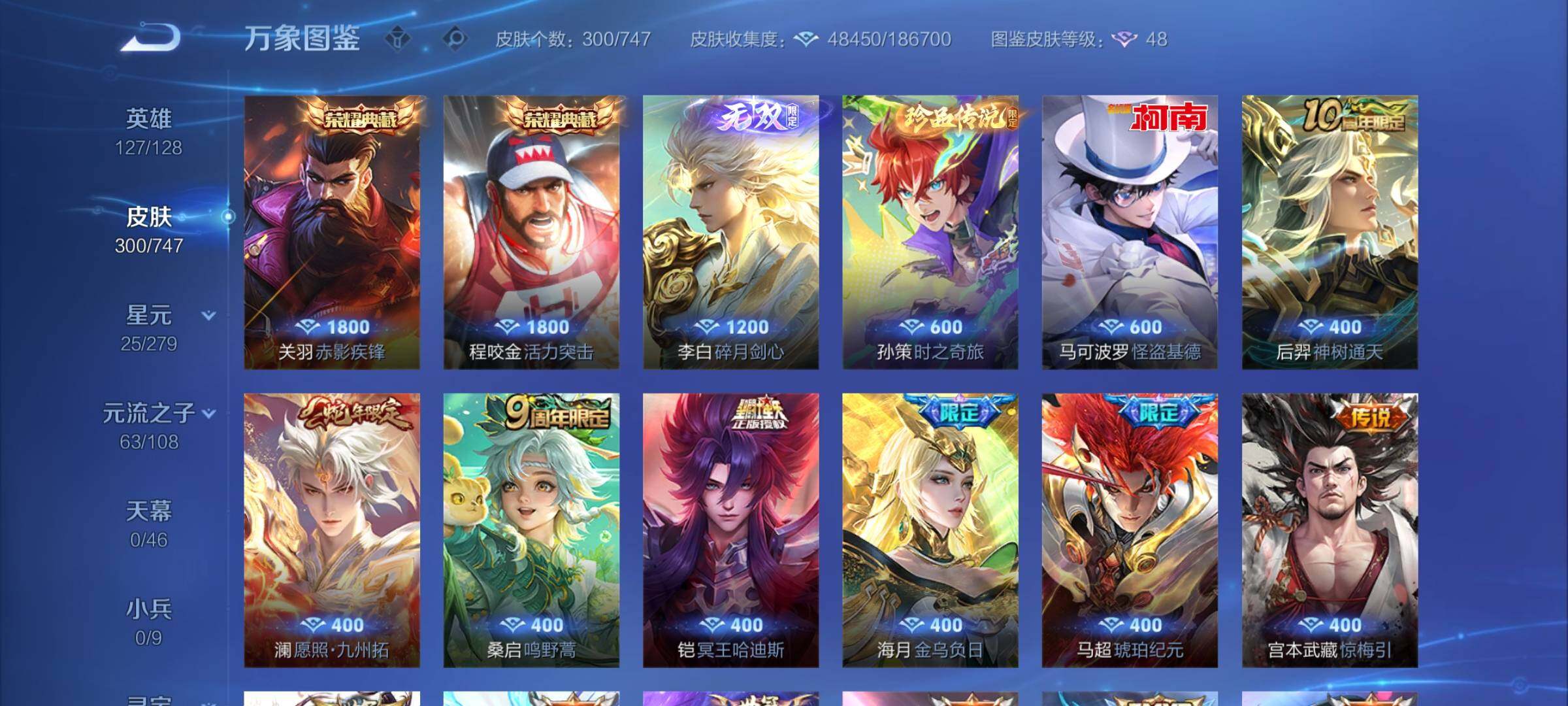 【店长推荐·碎月剑心·活力突击·赤影疾锋·怪盗基德·孙策时之奇旅·冥王哈迪斯·马超琥珀纪元·愿照九州拓·惊梅引·武圣·云鹰飞将·炽阳神光·一念神魔·诗剑行·神威·至尊宝·可二次】w7439-安卓q-127英雄-300皮肤-9王者印记-210铭文-贵族积分8w【贵族8】【2典藏·1无双·2珍品·2星传说·27传说·7天幕】【因赛季更新游戏段付以上号为准!】 【英雄全皮】:影全皮 【荣耀典藏】