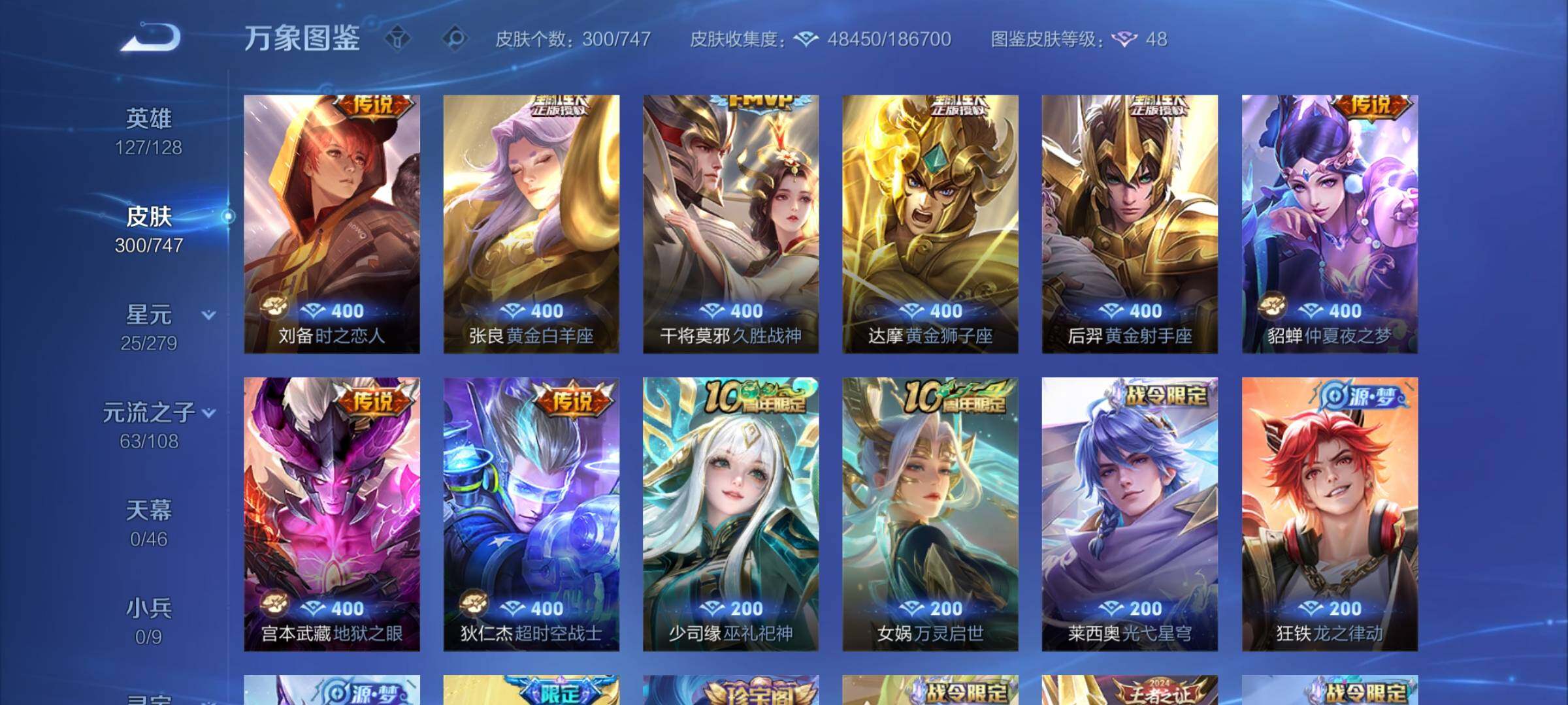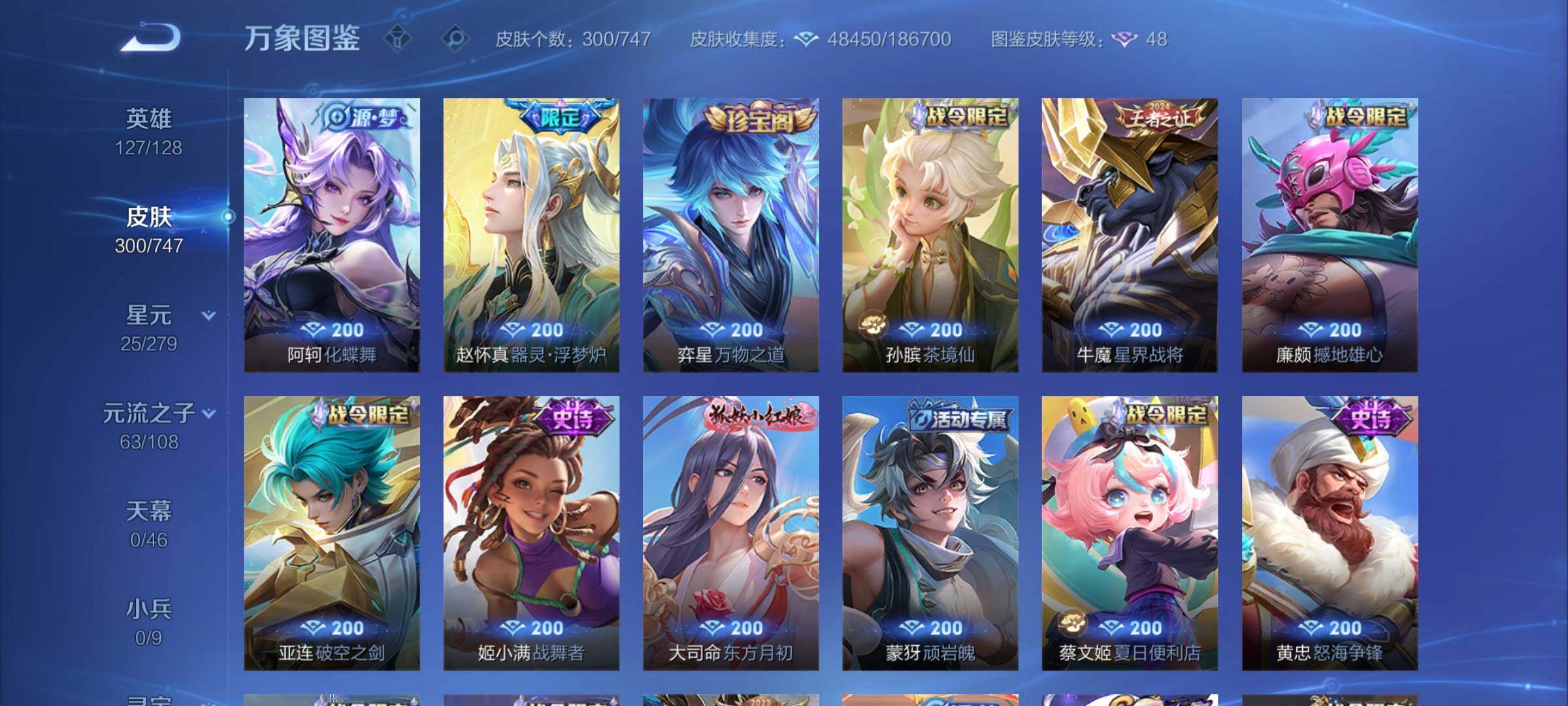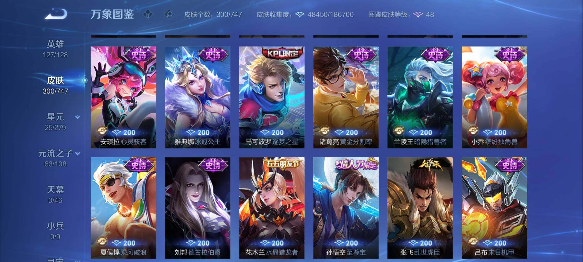 【店长推荐·碎月剑心·活力突击·赤影疾锋·怪盗基德·孙策时之奇旅·冥王哈迪斯·马超琥珀纪元·愿照九州拓·惊梅引·武圣·云鹰飞将·炽阳神光·一念神魔·诗剑行·神威·至尊宝·可二次】w7439-安卓q-127英雄-300皮肤-9王者印记-210铭文-贵族积分8w【贵族8】【2典藏·1无双·2珍品·2星传说·27传说·7天幕】【因赛季更新游戏段付以上号为准!】 【英雄全皮】:影全皮 【荣耀典藏】