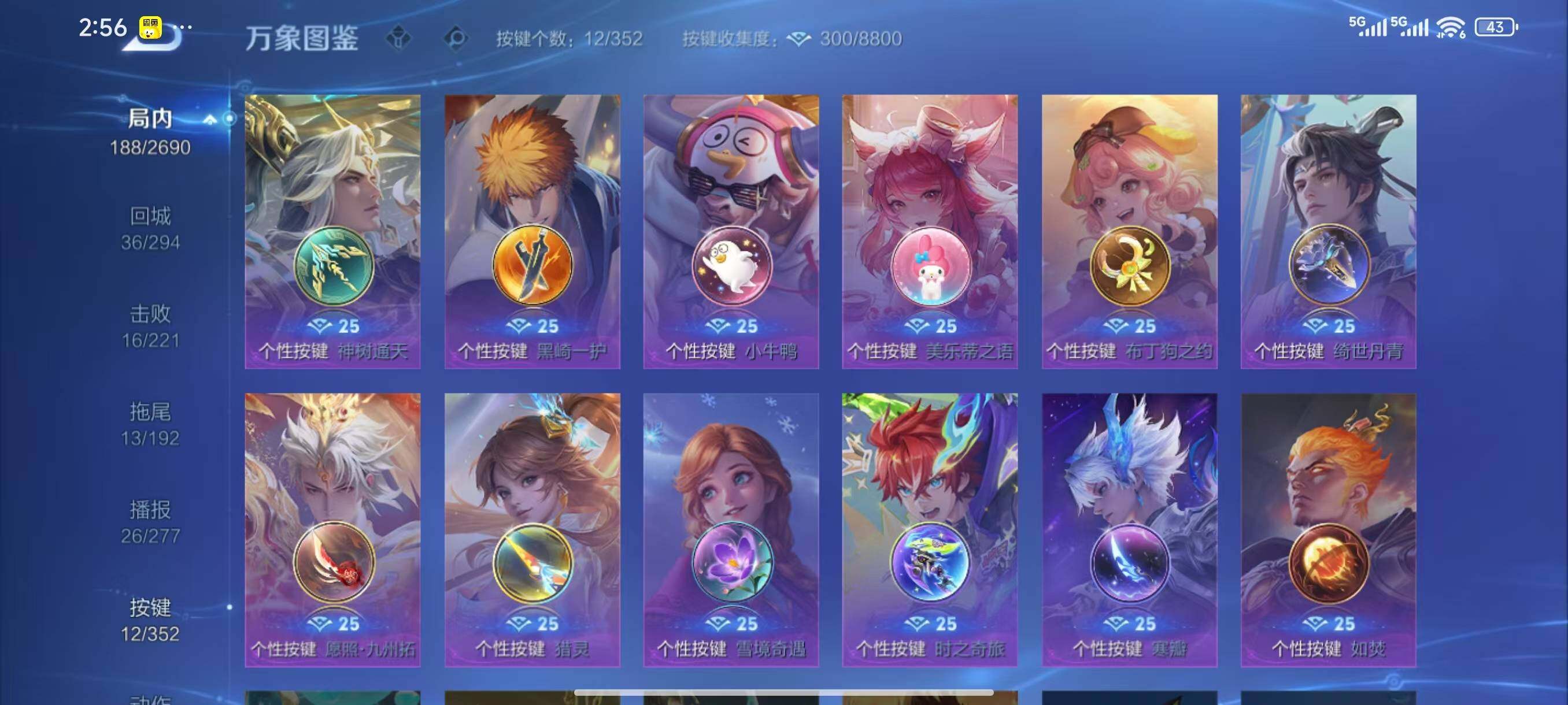 [14389449]按键12 安卓q-v7-159皮肤-1典藏皮肤-2珍品传说-9传说-52史诗 【英雄全皮】:空空儿全皮 【荣耀典藏】:韩信弑呛猎影 【珍品传说】:孙策时之奇旅,宫本武藏黑崎一护 【传说皮肤】:后羿神树通天,澜愿照九州拓,云缨幻光神呛,澜逐花归海,马可波罗深海之息,马超无双飞将,周瑜音你心动,达摩黄金狮子座,貂蝉仲夏夜之梦 【限定皮肤】:虞姬夏日便利店,狄仁杰阴阳师,赵云皇家上将,孙尚香蔷薇恋人,芈月白晶晶,元歌云间偶戏,马可波罗深海之息,狄仁杰魔术师,项羽海滩派对,孙悟空至尊宝,干将莫邪冰霜恋舞曲,裴擒虎李小龙,裴擒虎擒涛扼浪,西施玲珑珍味,鲁班大师探海日志,艾琳流音漫舞,司空震地狱燃心,阿古朵江河有灵,张良古海寻踪,蒙犽百解令,鬼谷子天穹祈灯,沈梦溪龙舞盛年,鲁班七号蔬乡物语,李元芳蔬乡物语,项羽苍威无极 【赛季限定】:张良古海寻踪,裴擒虎擒涛扼浪,鲁班大师探海日志,鬼谷子天穹祈灯 【战令限定】:虞姬夏日便利店,元歌云间偶戏,艾琳流音漫舞,西施玲珑珍味,司空震地狱燃心,鲁班七号蔬乡物语,李元芳蔬乡物语,项羽苍威无极 【史诗皮肤】:鲁班七号电玩小子,露娜紫霞仙子,赵云皇家上将,赵云未来纪元,甄姬冰雪圆舞曲,狄仁杰魔术师,宫本武藏鬼剑武藏,孙尚香蔷薇恋人,嬴政摇滚巨星,妲己魅力维加斯,妲己女仆咖啡,墨子金属风暴,曹操幽灵船长,吕布末日机甲,孙悟空至尊宝,夏侯惇乘风破浪,小乔缤纷独角兽,兰陵王暗隐猎兽者,雅典娜冰冠公主,安琪拉心灵骇客,铠曙光守护者,白起星夜王子,孙策猫狗日记,干将莫邪冰霜恋舞曲,伽罗箭羽风息,狄仁杰鹰眼统帅,公孙离无限星赏官,娜可露露晚萤,小乔青蛇,瑶遇见神鹿,孙尚香时之恋人,裴擒虎李小龙,元歌云间偶戏,芈月白晶晶,杨戬天秀启明,司空震地狱燃心,阿古朵江河有灵,蒙犽百解令,鲁班七号蔬乡物语,孙膑茶境仙,狄仁杰绮世丹青,阿轲化蝶舞,刘禅鸭鸭历险记,狂铁龙之律动,牛魔小牛鸭,后羿石田雨龙,周瑜百相守梦,黄忠百相守梦,公孙离涂山容容,莱西奥光弋星穹,女娲万灵启世,少司缘巫礼祀神 【其他皮肤】:项羽海滩派对,韩信教廷特使,露娜哥特玫瑰,芈月红桃皇后,白起白色死神,扁鹊救世之瞳,宫本武藏未来纪元,孙膑天使之翼,妲己少女阿狸,典韦黄金武士,亚瑟死亡骑士,达摩拳王,宫本武藏万象初新,狄仁杰阴阳师,刘备纽约教父,关羽龙腾万里,狂铁命运角斗场,诸葛亮掌控之力,小乔丁香
