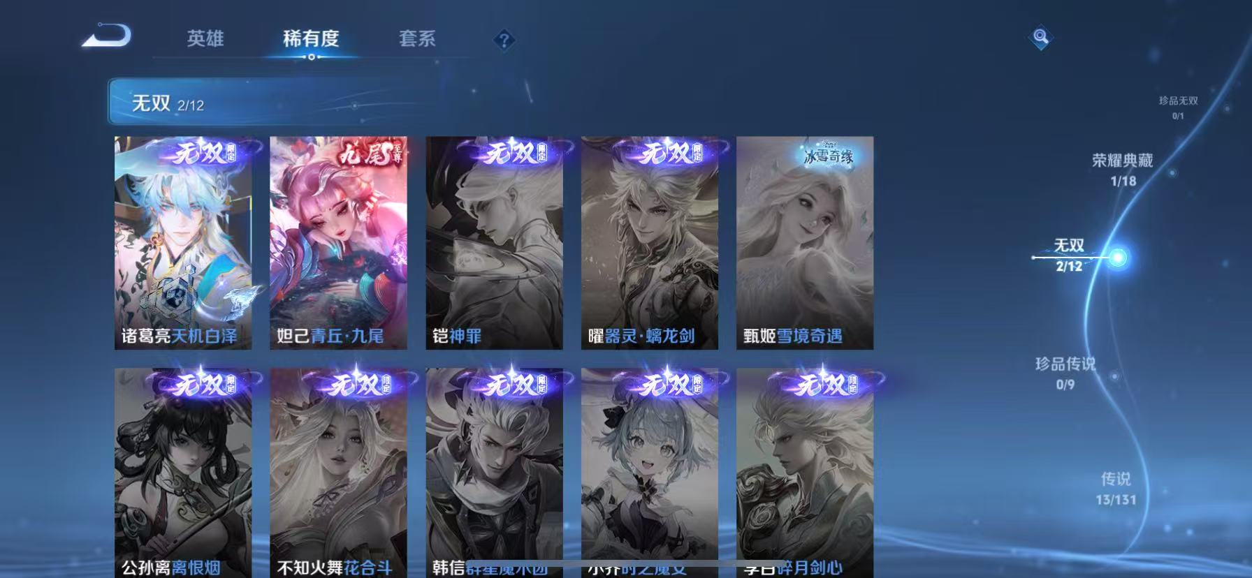 【王者荣耀】【lywz22645】珍品无双0 典藏1 无双2 珍品传说0 传说13 史诗70 英雄127 皮肤275 贵族7级 荣耀典藏:幻阙歌__无双皮肤:青丘·九尾|天机白泽__传说皮肤:鸣野蒿|启明星使|胖达荣荣|地狱之眼|云霓雀翎|刘备-时之恋人|一念神魔|云鹰飞将|冠军飞将|逐花归海|幻光神呛|祥瑞亨通|愿照·山河定__稀有限定:至尊宝|引擎之心|蔷薇恋人|梁祝|拒霜思|百解令|大漠名商|高山流水|古海寻踪|海滩派对|海盐诗旅|华丽摇滚|皇家上将|金庭之子|美猴王|魔术师|千军破阵|擒涛扼浪|驱傩正仪|燃音魔法|荣光圣徽|沙漠行僧|探海日志|醍醐杖|天穹祈灯|玩趣恶龙|万华元夜|无心|五谷丰年|纤云弄巧|星界游侠|演武夺筹|疑决卦|阴阳师|驭风魔法|原初追逐者|云间偶戏|暗夜贵公子|暗隐猎兽者|暗渊魔法|缤纷独角兽|冰冠公主|冰雪圆舞曲|苍穹之光|乘风破浪|乘龙·聚宝船|德古拉伯爵|电玩小子|伽罗-琥珀纪元|功夫厨神|鬼剑武藏|节奏热浪|金属风暴|魅力维加斯|女仆咖啡|偶像歌手|热力回旋|圣诞狂欢|圣诞恋歌|水果甜心|水晶猎龙者|孙策-猫狗日记|天才门将|天秀·启明|赵云-未来纪元|星夜王子|摇滚巨星|鹰眼统帅|幽灵船长|遇见神鹿|月团寄思|逐浪之夏|紫霞仙子|百里守约-百相守梦|老夫子-百相守梦|噬灭天穹|涂山红红|天穹之誓|修罗|曙光守护者|心灵战警|孙尚香-时之恋人|舞动绿茵|特工魅影|茶境仙|谧流熔炉|狼魂孤将|原初探秘者|云中旅人|玲珑珍味|访茗客|暖冬·兔眠|灵卜魔法|墨子-神迹守卫|刘禅-鸭鸭历险记|沈梦溪-鸭鸭历险记|龙之律动|布丁狗之约|逆浪荇歌|幻珠鲛人|黄忠-百相守梦|涂山容容|荣光之誓__优质皮肤:尼罗河女神|一千零一夜|创世神祝|埃及法老|孤猎|木偶奇遇记|熊喵少女|午夜歌剧院|露花倒影|未来旅行|激情绿茵|海之征途|天启骑士|碧珀绯影|秩序猎龙将|冰刃幻境|森|超能战警|英喵野望|维京掠夺者|绯红之刃|踏雪寻梅|启蛰|战争骑士|伊势巫女|画中游|生化警戒|威尼斯狂欢|芝加哥教父|街头旋风|绝影神呛|荷鲁斯之眼|幸存者|赤焰之缨|福禄兄弟|隐刃|前尘|特种部队|三太子|剑舞者|龙域领主|花间舞|魇语军师|花见巫女|棒球奇才|东海龙王|灼热之刃|精准探案法|战争女神|霓裳曲|加勒比小姐|阿摩司公爵|异域舞娘|精灵公主|修竹墨客|万圣前夜|异域游侠|暗都幽影|功夫炙烤|暖冬絮语|潮玩探月行|虎啸剑宗|瓷语鉴心|秘密基地|次元突破|鲨炮海盗猫|野性能量|奇妙博物学|虹云星官|守护之力|坚韧之力|幻乐之宴|功夫老勺|命运角斗场|幻想奇妙夜|海滩丽影|阿尔法小队|兔女郎|黄金武士|天使之翼|玩偶对对碰|宫本武藏-未来纪元|红桃皇后|忍·炎影|爱心护理|街头霸王|教廷特使|鸿运当头|金色潮汐|漠中幻影|时空谍影|决胜大满贯|西部游侠|太极少年|乐园追猎者|牛运亨通|幻泉雾影|危途狂花|胡桃狂想曲|潮玩牛仔|紫罗兰之誓|铁甲之心|重装意志|次元傲视|拳王|救世之瞳|白色死神|大发明家|哥特玫瑰|魅影绮裳|西施-雪境奇遇|金福满堂|星梦巡礼|灵卦秘语|爆裂喵拳|景韶洛都|缤纷绘卷|掌控之力|铁骨偃魂|龙腾万里|乱世虎臣|敏锐之力|西施-归虚梦演|孙悟空-西部大镖客|牛魔-西部大镖客|鲁班大师-归虚梦演|汉昭烈帝|乓乓大师|五福同心|盾山-圆桌骑士|蒙犽-归虚梦演|万事如意|曜-归虚梦演|唤灵魔甲|太乙真人-圆桌骑士|沉稳之力|完美运算|化身博士|花好人间|熔金海岸|潮玩骑士王|万象初新|苍林狼骑|蔚蓝守将|劲辣红锅|特工战影|炽热元素使|妄想特派|秘证寻踪|玫蓝誓约|无双福将|踏浪烽翎|云械蓝图__贵族等级:贵族7级__王者段位:至尊星耀【法师皮肤号】典藏貂蝉 妲己诸葛亮无双 狸尾天幕