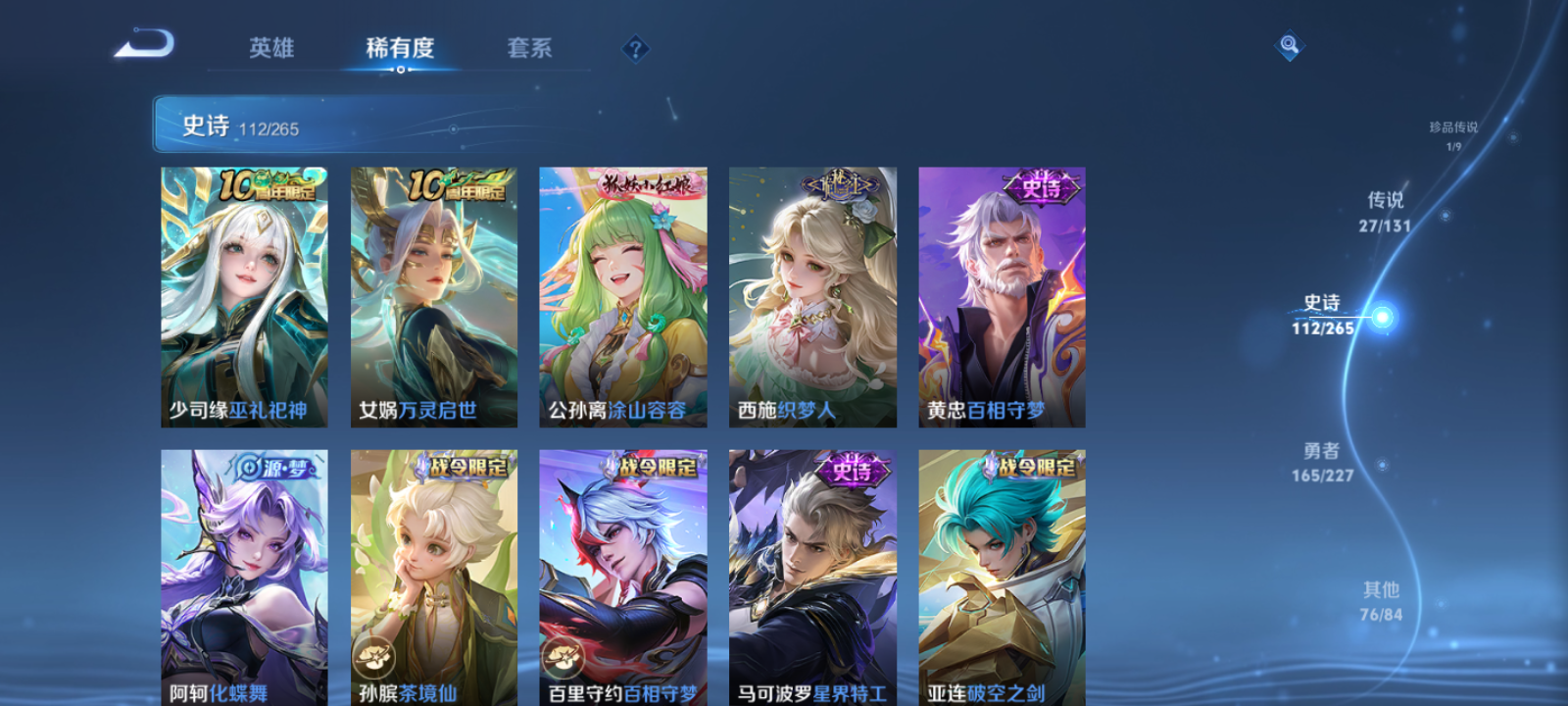 【王者荣耀】【lywz22627】珍品无双0 典藏2 无双0 珍品传说1 传说27 史诗112 英雄126 皮肤383 贵族8级 荣耀典藏:全息碎影|最初的交响__珍品传说:器灵·落星盏__传说皮肤:鸣野蒿|绛天战甲|炽阳神光|启明星使|胖达荣荣|地狱之眼|黄金狮子座|黄金白羊座|猫影幻舞|刘备-时之恋人|孙尚香-末日机甲|凤求凰|零号·赤焰|祈雪灵祝|太华|天魔缭乱|逐花归海|山海·炽霜斩|幻光神呛|愿照·岁时盈|愿照·山河定|愿照·九州拓|愿照·众生和|愿照·福禄聚|愿照·千秋盛|云诺千山|神树通天__稀有限定:至尊宝|朱雀志|大圣娶亲|岱宗|玄嵩|幽恒|飞衡|烈魂|李小龙|梁祝|时之彼端|狮舞东方|拒霜思|暗影游猎|白昼王子|百解令|冰霜恋舞曲|嫦娥-如梦令|大漠名商|地狱燃心|繁星吟游|高山流水|古海寻踪|海滩派对|海盐诗旅|后羿-如梦令|皇家上将|辉光之辰|混沌棋|剑破天穹|江河有灵|金庭之子|狂想玩偶喵|蓝屏警告|黎明之约|迷踪丽影|魔术师|花木兰-默契交锋|女武神|奇幻香踪|千军破阵|擒涛扼浪|穷奇|驱傩正仪|燃音魔法|荣光圣徽|沙漠行僧|朔风刀|死亡摇滚|探海日志|饕餮|醍醐杖|天狼绘梦者|天狼运算者|天狼征服者|天穹祈灯|万华元夜|妄想食味|无心|五谷丰年|纤云弄巧|项羽-霸王别姬|星界游侠|星空之诺|驯魔猎人|演武夺筹|夜都怪侠|疑决卦|阴阳师|吟游魔法|银河之约|优雅恋人|游园惊梦|御旌|御銮|御狮|原初追逐者|云间偶戏|暗夜贵公子|白龙吟|白蛇|缤纷独角兽|冰冠公主|冰雪圆舞曲|乘风破浪|大乔-猫狗日记|德古拉伯爵|地狱岩魂|电玩小子|功夫厨神|鬼剑武藏|黄金分割率|箭羽风息|节奏热浪|金属风暴|魅力维加斯|魅语|梦奇-顽趣|女仆咖啡|偶像歌手|青蛇|热力回旋|绅士熊喵|圣诞狂欢|圣诞恋歌|诗语江南|水果甜心|水晶猎龙者|孙策-猫狗日记|天才门将|天秀·启明|晚萤|赵云-未来纪元|星夜王子|摇滚巨星|鹰眼统帅|幽灵船长|遇见神鹿|钟无艳-超时空战士|逐浪之夏|紫霞仙子|百里守约-百相守梦|老夫子-百相守梦|星界特工|噬灭天穹|敬我三分|破空之剑|天穹之誓|修罗|曙光守护者|心灵战警|千年之狐|孙尚香-时之恋人|舞动绿茵|特工魅影|心灵骇客|茶境仙|谧流熔炉|化蝶舞|御霄|狰|烛龙|原初探秘者|重明|云中旅人|单词大作战|朔望之晖|钟馗-神迹守卫|孙悟空-神迹守卫|流音漫舞|访茗客|暖冬·兔眠|灵卜魔法|夺宝奇兵|落雪兰心|死神来了|仙境爱丽丝|华尔街大亨|布丁狗之约|虚灵犬护|逆浪荇歌|黄忠-百相守梦|织梦人|涂山容容|荣光之誓|万灵启世|巫礼祀神|鹤鸣心笺__优质皮肤:尼罗河女神|创世神祝|年年有余|埃及法老|孤猎|木偶奇遇记|熊喵少女|午夜歌剧院|露花倒影|未来旅行|激情绿茵|海之征途|天启骑士|秩序猎龙将|锦衣卫|冰刃幻境|森|超能战警|英喵野望|维京掠夺者|海军大将|绯红之刃|踏雪寻梅|启蛰|战争骑士|伊势巫女|画中游|生化警戒|威尼斯狂欢|第七人偶|潮流仙人|芝加哥教父|街头旋风|绝影神呛|地府判官|幸存者|赤焰之缨|福禄兄弟|隐刃|前尘|特种部队|三太子|精灵王|剑舞者|范海辛|星航指挥官|龙域领主|爱与和平|占星师|花间舞|魇语军师|极冰防御线|花见巫女|东海龙王|蔷薇王座|灼热之刃|圣殿之光|帝国元帅|战争女神|霓裳曲|加勒比小姐|阿摩司公爵|异域舞娘|精灵公主|修竹墨客|万圣前夜|异域游侠|功夫炙烤|暖冬絮语|聚星闪耀|潮玩探月行|瓷语鉴心|秘密基地|次元突破|鲨炮海盗猫|野性能量|丁香结|奇妙博物学|虹云星官|科学大爆炸|守护之力|坚韧之力|幻乐之宴|功夫老勺|命运角斗场|幻想奇妙夜|海滩丽影|阿尔法小队|兔女郎|死亡骑士|黄金武士|少女阿狸|天使之翼|玩偶对对碰|宫本武藏-未来纪元|红桃皇后|忍·炎影|爱心护理|街头霸王|教廷特使|鸿运当头|金色潮汐|时空谍影|决胜大满贯|破局者|零食大作战|西部游侠|乐园追猎者|牛运亨通|幻泉雾影|危途狂花|次元傲视|无尽征程|黑桃队长|幽兰居士|如懿|进击墨子号|拳王|时尚教父|救世之瞳|白色死神|程咬金-星际陆战队|白执事|大发明家|哥特玫瑰|西施-雪境奇遇|星梦巡礼|灵卦秘语|景韶洛都|浪漫序章|猪八戒-西部大镖客|缤纷绘卷|掌控之力|雾都夜雨|逐霄战戟|铁骨偃魂|纽约教父|龙腾万里|霸王丸|乱世虎臣|经纬探寻者|敏锐之力|西施-归虚梦演|孙悟空-西部大镖客|牛魔-西部大镖客|鲁班大师-归虚梦演|龙舞盛年|汉昭烈帝|乓乓大师|五福同心|盾山-圆桌骑士|猎兽之王|万事如意|曜-归虚梦演|唤灵魔甲|太乙真人-圆桌骑士|沉稳之力|赤莲之焰|程咬金-群星魔术团|完美运算|化身博士|花好人间|熔金海岸|潮玩骑士王|无尽旅途|万象初新|潮玩骑兵|苍林狼骑|劲辣红锅|特工战影|炽热元素使|妄想特派|秘证寻踪|春野闲踪|灵野札记|玫蓝誓约|无双福将|踏浪烽翎|云械蓝图|克喵|哪吒-罗小黑战记|张良-罗小黑战记__贵族等级:贵族8级__王者段位:无双王者打野发育路路号 伽罗猴子典藏 嫦娥珍品 蛇年限定套 逐花归海,黄金狮子座,炽阳神光,山海·炽霜斩,祈雪灵祝,零号·赤焰,时之恋人,天魔缭乱,太华,凤求凰等等皮肤
