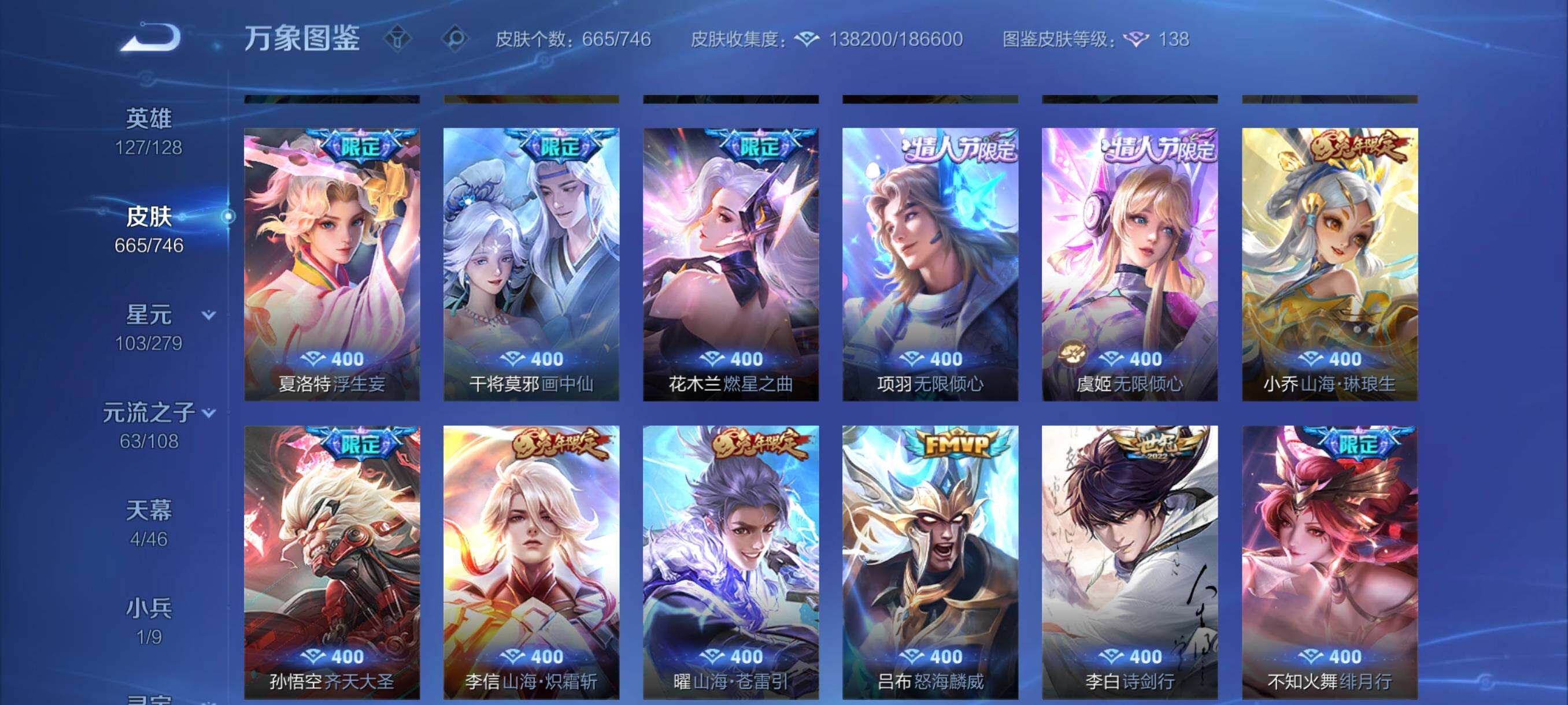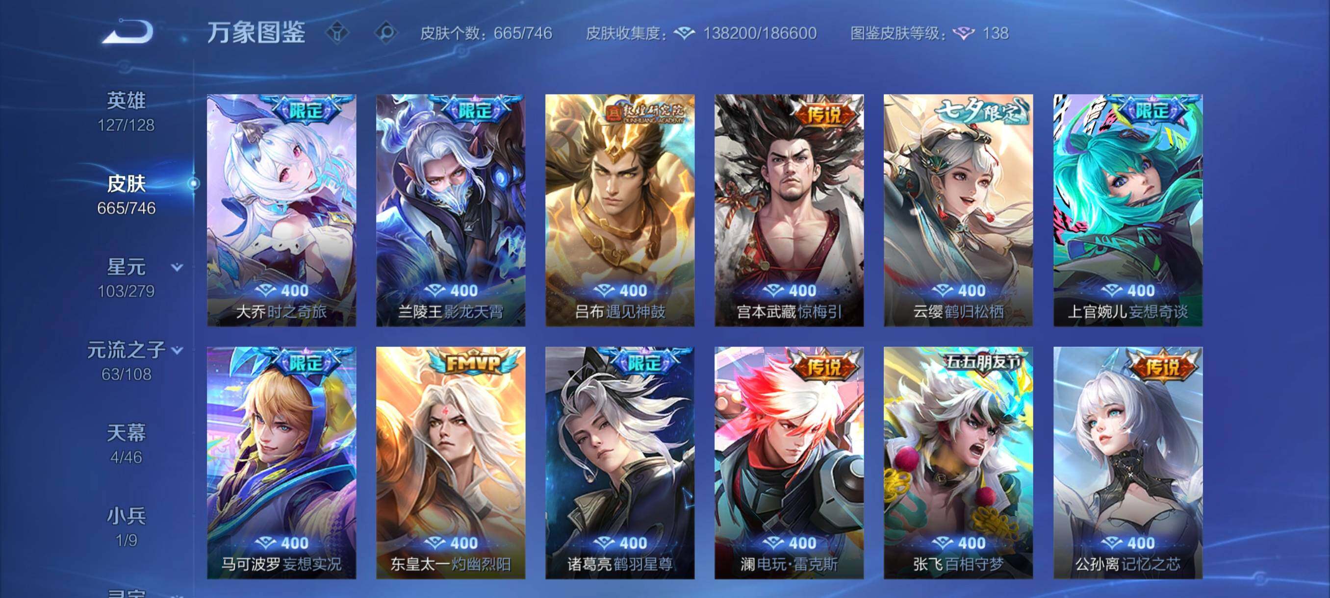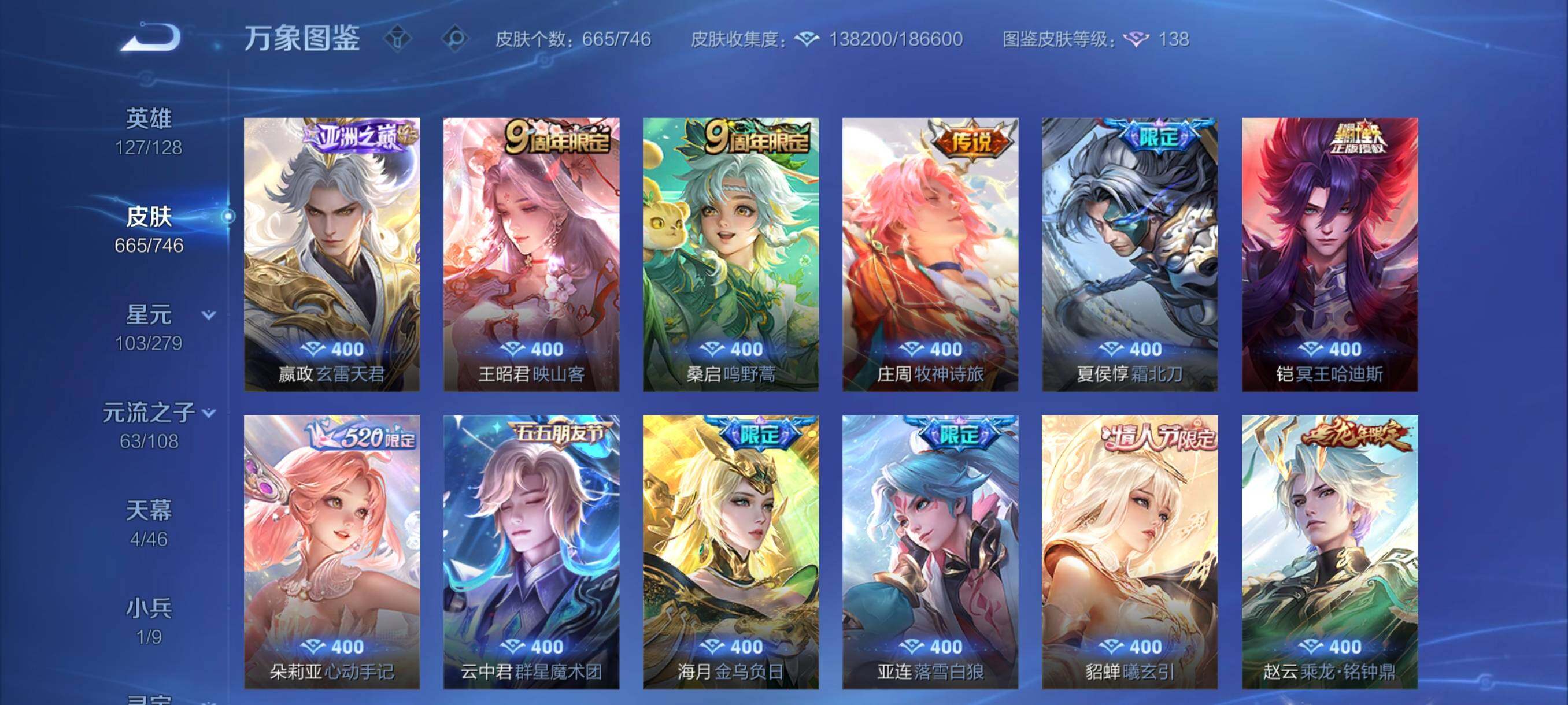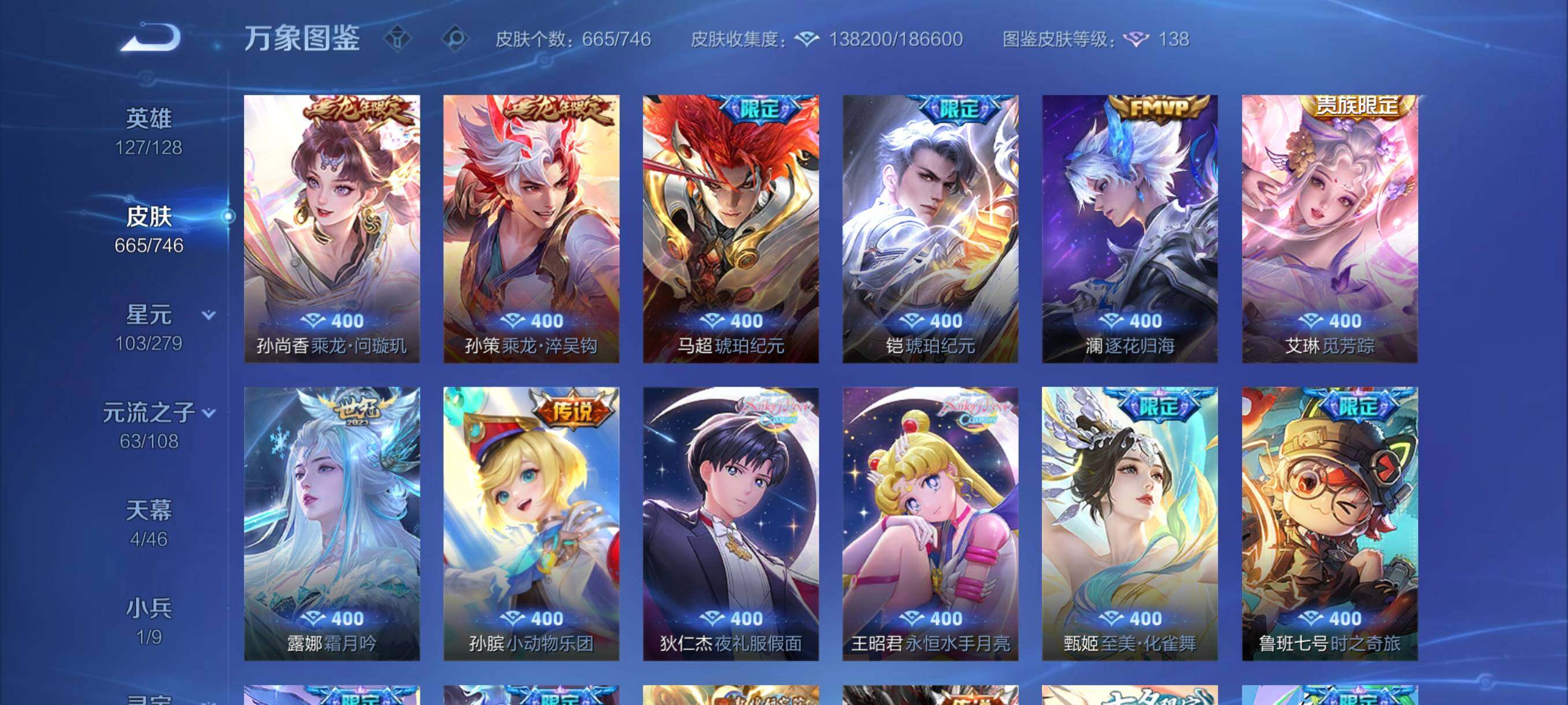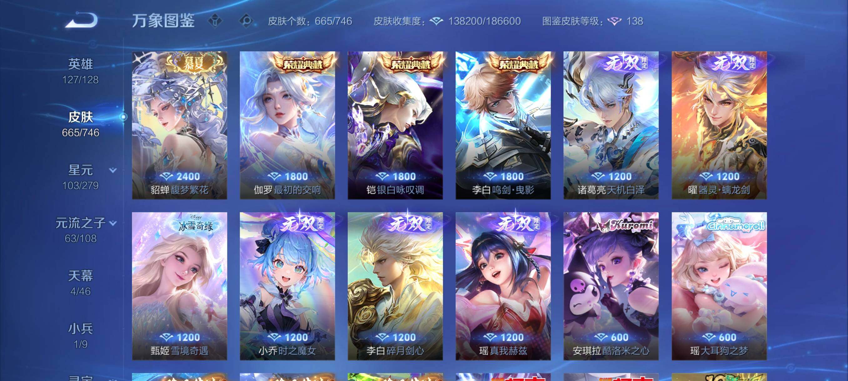 营地封禁【店铺主推·无双v10·12w流光积分有传承位·4典藏·6无双·7珍品·珍品无双馥梦繁花·150个按键·小兵狐妖小红娘·4天幕·雪境奇遇天幕·紫瑶·全皮李白·全皮甄姬·全皮王昭君·全皮大乔·全皮瑶妹 紫瑶·全皮杨玉环·全皮西施·全皮嫦娥·精品大妹号·可二次】w6696-安卓q-127英雄-665皮肤-24王者印记-300铭文-贵族积分38w【无双贵族10】【3典藏·1珍品无双·6无