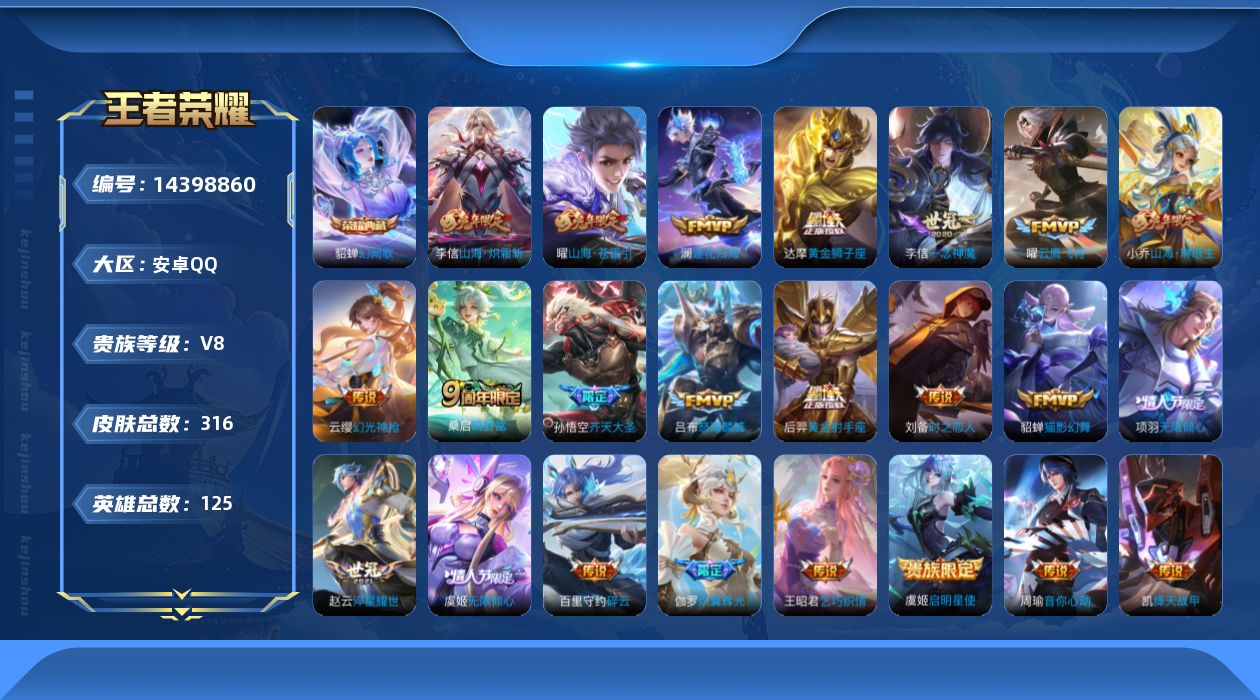 [14398860]v8 1典藏 23传说 125英雄 316皮肤 可修改实名 连体和平 【英雄全皮】:李信全皮 【稀有英雄】:大司命韩信韩跳跳夏洛特夏师傅艾琳橘右京橘子娜可露露鸟人不知火舞赵云金蝉唐僧戈娅 【荣耀水晶】:幻阙歌貂蝉典藏 【传说皮】:幻光神呛山海·炽霜斩李信年限山海·琳琅生小乔年限黄金狮子座黄金射手座一念神魔淬星耀世猫影幻舞云鹰飞将小将军音你心动-周瑜乞巧织情时之恋人-刘备电焊工绛天战甲鸡嘴战神碎云山海·苍雷引电光曜子炽翼辉光娃娃菜牛角包澜逐花归海 【珍宝阁皮】:万物之道玩趣恶龙 【赛季/战令皮】:噬灭天穹s37古海寻踪s33星界游侠海盐诗旅s30擒涛扼浪s31潮玩骑兵奇幻香踪探海日志s32流音漫舞地狱燃心剑破天穹s35天穹祈灯s34天穹之誓s36暖冬·兔眠星际陆战队-达摩沙漠行僧s26金庭之子s27大漠名商s28云中旅人s29超时空战士-钟无艳落雪兰心 【史诗皮】:化蝶舞龙之律动乘龙·聚宝船安琪拉年限百相守梦-黄忠乘龙·忆丹青大乔年限茶境仙百相守梦-百里守约蒙犽顽岩魄万灵启世紫霞仙子苍穹之光电玩小子小书包特工魅影千年之狐江河有灵高渐离燃音魔法百解令蒙犽青蛇偶像歌手魅语匿光破解者暗夜猫娘末日机甲-吕布猫狗日记-孙策猫狗日记-大乔时之恋人-孙尚香节奏热浪修罗女仆咖啡摇滚巨星水果甜心天才门将星夜王子心灵骇客时之奇旅-安琪拉功夫厨神德古拉伯爵幽灵船长鬼剑武藏舞动绿茵诗语江南纤云弄巧乘风破浪水晶猎龙者曙光守护者箭羽风息金属风暴圣诞狂欢圣诞恋歌鹰眼统帅暗夜贵公子魅力维加斯无心未来纪元-赵云 【限定皮】:逐霄战戟鸣野蒿神威电光马子玄嵩庄周年限山海·碧波行瑶年限无限倾心-项羽高山流水无限倾心-虞姬齐天大圣怒海麟威五谷丰年幽恒沐浴露朱雀志守约年限辉光之辰真爱至上纯白花嫁神器·万象笔梦圆繁星山海·玄木吟马可年限冰霜神祇 【普通皮】:鹤鸣心笺访茗客铁骨偃魂谧流熔炉雾都夜雨百相守梦-老夫子敬我三分劲辣红锅