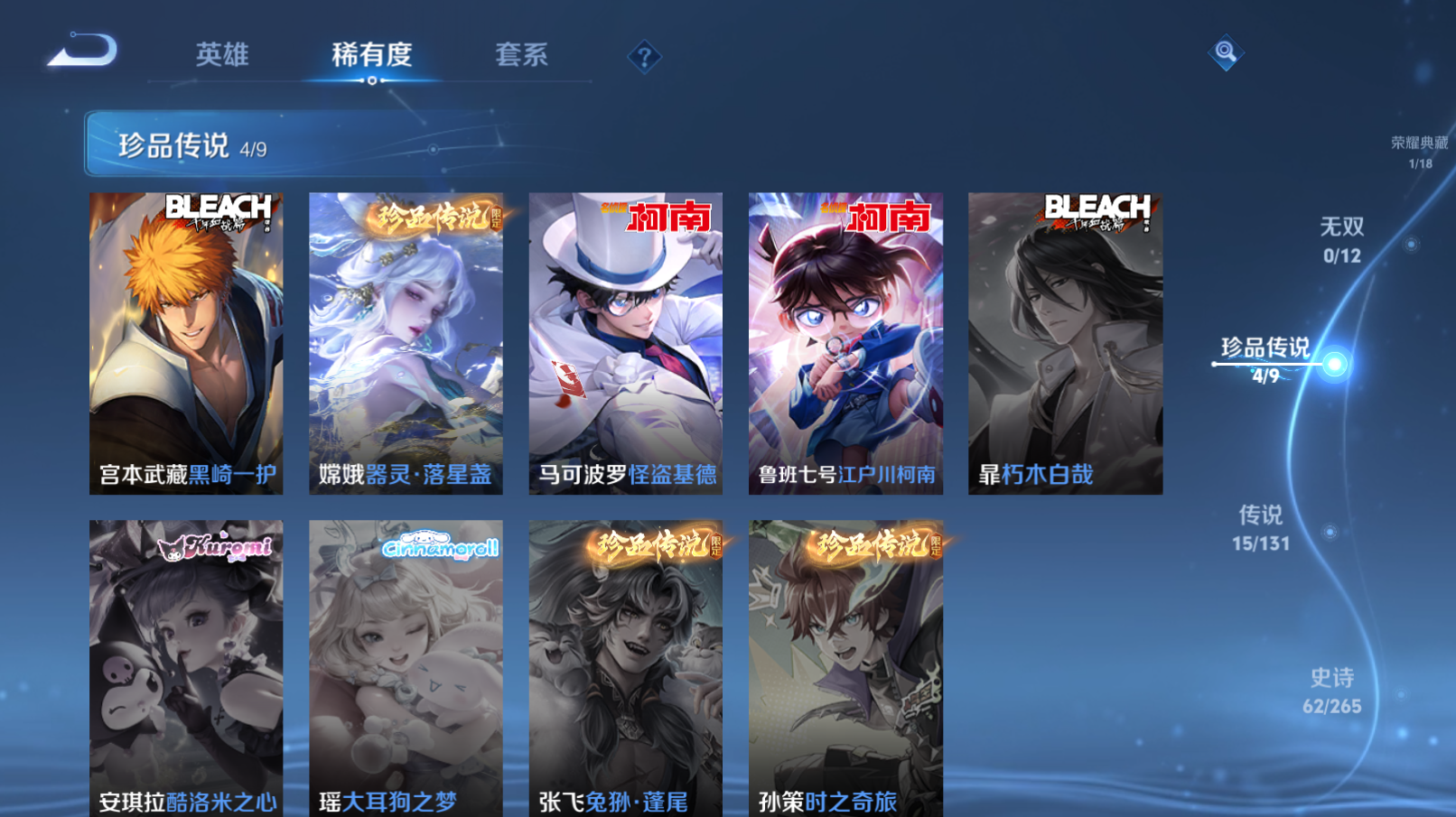 【金牌上官婉儿 15传说 怪盗基德 江户川柯南 九霄神辉 4珍品传说 13皮肤按键】安卓qq/v7/最强王者/237皮肤/123英雄/1典藏/4珍品传说/15传说/62史诗/7稀有英雄【3 星传说皮肤】未来机甲 孙尚香幻海之心 武则天幽冥之眼 宫本武藏【4 珍品传说】黑崎一护 宫本武藏怪盗基德 马可波罗器灵·落星盏 嫦娥江户川柯南 鲁班七号【1 典藏皮肤】