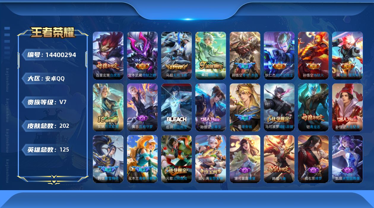 [14400294]v7 8传说 125英雄 202皮肤 可修改实名 连体和平 【英雄全皮】:蒙恬全皮 【稀有英雄】:大司命韩信韩跳跳夏洛特夏师傅艾琳橘右京橘子娜可露露鸟人不知火舞赵云金蝉唐僧戈娅 【传说皮】:零号·赤焰地狱火地狱之眼无双飞将超时空战士-狄仁杰电玩·雷克斯 【珍宝阁皮】:妄想食味蔷薇恋人 【赛季/战令皮】:噬灭天穹s37古海寻踪s33海盐诗旅s30擒涛扼浪s31探海日志s32剑破天穹s35天穹祈灯s34混沌棋s18疑决卦s19醍醐杖s20原初探秘者s21万华元夜s22演武夺筹s23驱傩正仪s24千军破阵s25夺宝奇兵迷踪丽影西部大镖客-猪八戒暗影游猎游乐娃子单词大作战狂想玩偶喵潮玩骑士王云间偶戏圣弓游侠真爱魔法火炮绅士沙漠行僧s26幻夜卜梦金庭之子s27大漠名商s28云中旅人s29 【史诗皮】:石田雨龙百相守梦-黄忠破空之剑埋骨钱万灵启世黄金分割率特工魅影千年之狐江河有灵高渐离燃音魔法蒙恬荣光圣徽龙骑士小龙虾青蛇偶像歌手晚萤电玩·爆裂旋风猫狗日记-孙策修罗女仆咖啡摇滚巨星水果甜心天才门将德古拉伯爵暗隐猎兽者幽灵船长鬼剑武藏纤云弄巧拒霜思缤纷独角兽乘风破浪逐浪之夏水晶猎龙者曙光守护者箭羽风息金属风暴圣诞狂欢鹰眼统帅黎明之约无心未来纪元-赵云 【限定皮】:鸣野蒿至尊宝白虎志电光耗子傲雪梅呛飞衡韩信年限高山流水青龙志铠年限梁祝龙胆李小龙大圣娶亲青春决赛季匿光追影者 【普通皮】:逐霄之志苍林狼骑雾都夜雨敬我三分刘邦虎啸剑宗程咬金群星魔术团春野之旅龙舞盛年功夫炙烤街头霸王星梦巡礼鹤鸣心笺命运加冕妄想特派威尼斯狂欢完美运算妲己灵卜魔法鬼谷子天穹祈灯s34蔚蓝守将龙腾万里花好人间归虚梦演-蒙犽归虚梦演-孙膑归虚梦演-西施海滩丽影海滩派对皇家上将魔术师沉稳之力掌控之力守护之力坚韧之力霸王丸化身博士炽热元素使缤纷绘卷纽约教父特工战影圆桌骑士(盾山)乓乓大师黄金武士次元突破天使之翼哥特