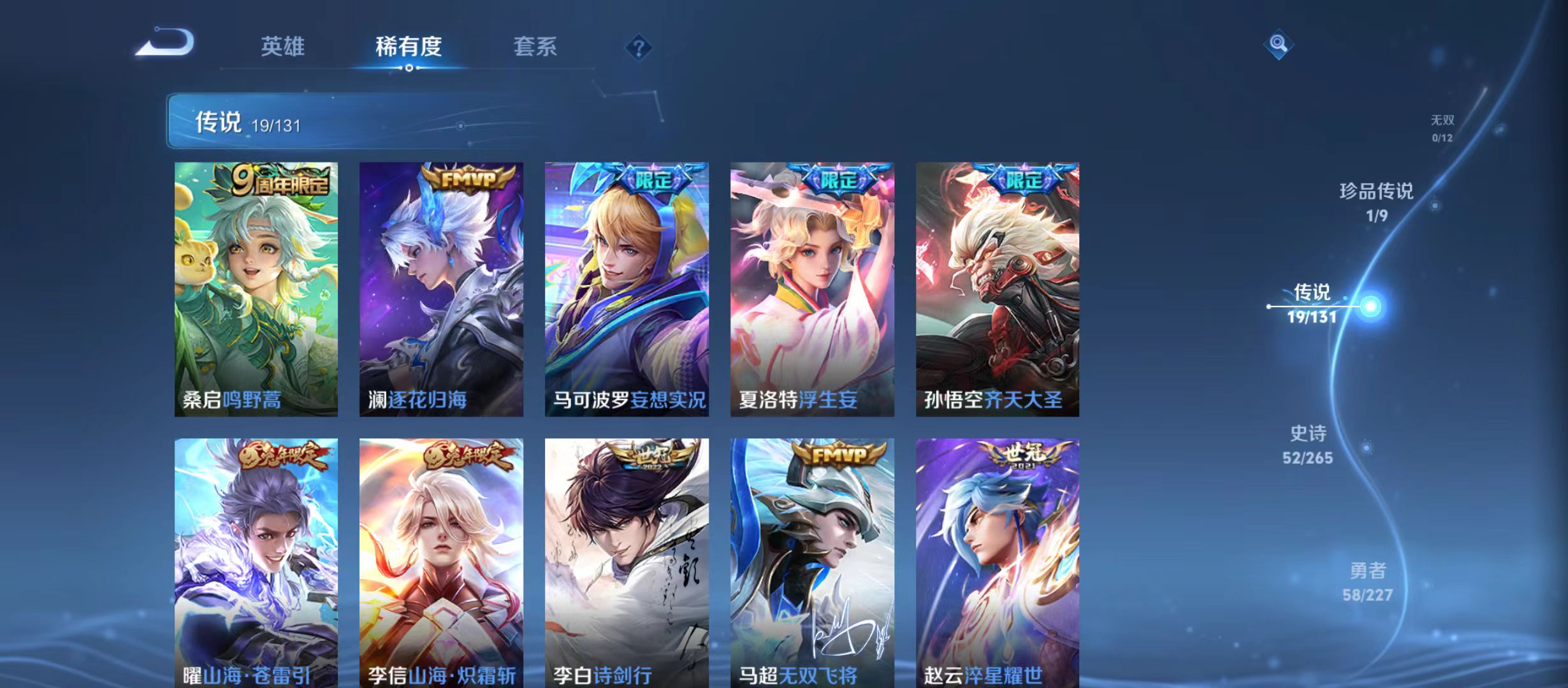 txwz23335v7 177皮 1珍品 怪盗基德 19传说 鸣野蒿,武圣,逐花归海,妄想实况,地狱之眼,胖达荣荣,超时空战士,浮生妄,时之恋人,山海·苍雷引,炽阳神光,山海·炽霜斩,齐天大圣,云鹰飞将,诗剑行,淬星耀世,冠军飞将,无双飞将,一念神魔