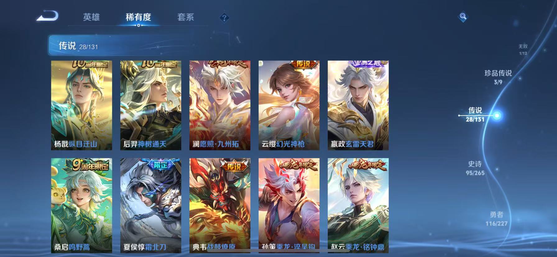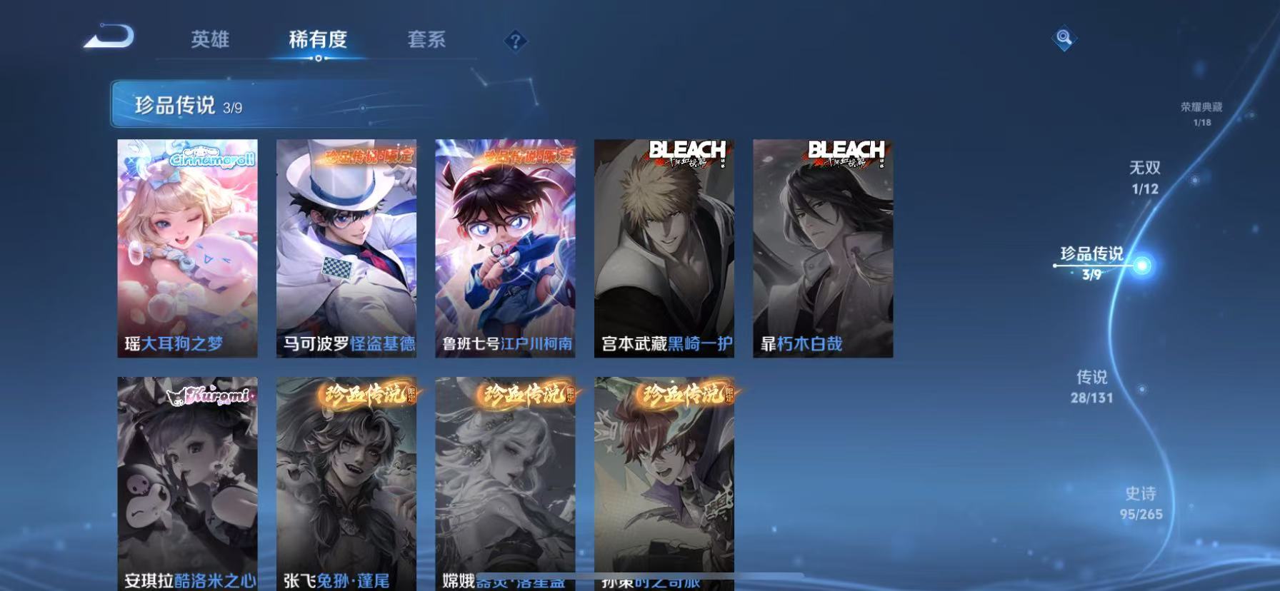 【王者荣耀】【lywz22765】珍品无双0 典藏1 无双1 珍品传说3 传说28 史诗95 英雄127 皮肤269 贵族8级 荣耀典藏:弑呛猎影__无双皮肤:器灵·螭龙剑__珍品传说:江户川柯南|怪盗基德|大耳狗之梦__传说皮肤:鸣野蒿|无双飞将|炽阳神光|启明星使|地狱之眼|仲夏夜之梦|黄金狮子座|黄金白羊座|刘备-时之恋人|一念神魔|云鹰飞将|乞巧织情|浮生妄|齐天大圣|零号·赤焰|马超-琥珀纪元|妄想实况|永曜之星|战鼓燎原|乘龙·淬吴钩|乘龙·铭钟鼎|山海·炽霜斩|玄雷天君|幻光神呛|愿照·九州拓|神树通天|纵目迁山__稀有限定:至尊宝|蔷薇恋人|神威|烈魂|孙行者|李小龙|拒霜思|暗影游猎|百解令|百木心呛|地狱燃心|电玩高手|古海寻踪|海滩派对|海盐诗旅|胡桃异想国|皇家上将|剑破天穹|江河有灵|狂想玩偶喵|魔术师|擒涛扼浪|青焰无极|燃音魔法|沙漠行僧|死亡摇滚|探海日志|天穹祈灯|妄想食味|无心|纤云弄巧|阴阳师|银河之约|原初追逐者|云间偶戏|逐梦之音|暗夜贵公子|暗夜猫娘|暗隐猎兽者|暗渊魔法|缤纷独角兽|冰冠公主|冰雪圆舞曲|乘风破浪|德古拉伯爵|地狱岩魂|电玩·爆裂旋风|电玩小子|伽罗-琥珀纪元|功夫厨神|鬼剑武藏|唤灵魅影|黄金分割率|箭羽风息|节奏热浪|金属风暴|李元芳-蔬乡物语|龙骑士|吕布-末日机甲|魅力维加斯|女仆咖啡|偶像歌手|赏金猎手|绅士熊喵|圣诞狂欢|圣诞恋歌|鲁班七号-蔬乡物语|水果甜心|水晶猎龙者|天才门将|天秀·启明|晚萤|赵云-未来纪元|星夜王子|雪夜绮愿|摇滚巨星|鹰眼统帅|幽灵船长|月团寄思|逐浪之夏|紫霞仙子|百里守约-百相守梦|老夫子-百相守梦|陌上桑|噬灭天穹|敬我三分|破空之剑|战舞者|霜北刀|顽岩魄|蔡文姬-夏日便利店|虞姬-夏日便利店|天穹之誓|怒海争锋|曙光守护者|心灵战警|千年之狐|特工魅影|心灵骇客|茶境仙|星界战将|谧流熔炉|瑰影绮梦|化蝶舞|云中旅人|孙悟空-神迹守卫|访茗客|灵卜魔法|苍威无极|刘禅-鸭鸭历险记|沈梦溪-鸭鸭历险记|藏狐·褐绒|龙之律动|布丁狗之约|虚灵犬护|逆浪荇歌|孙策-百相守梦|周瑜-百相守梦|黄忠-百相守梦|涂山容容|光弋星穹|往忆晖光|荣光之誓|万灵启世|巫礼祀神|鹤鸣心笺__优质皮肤:尼罗河女神|创世神祝|埃及法老|孤猎|午夜歌剧院|激情绿茵|秩序猎龙将|超能战警|维京掠夺者|启蛰|战争骑士|画中游|威尼斯狂欢|街头旋风|幸存者|隐刃|龙域领主|花间舞|魇语军师|东海龙王|灼热之刃|万圣前夜|破阵·退雄兵|功夫炙烤|暖冬絮语|幻夜行动|聚星闪耀|潮玩探月行|瓷语鉴心|秘密基地|次元突破|野性能量|虹云星官|守护之力|幻乐之宴|功夫老勺|命运角斗场|幻想奇妙夜|海滩丽影|阿尔法小队|兔女郎|死亡骑士|黄金武士|少女阿狸|天使之翼|玩偶对对碰|宫本武藏-未来纪元|红桃皇后|忍·炎影|爱心护理|街头霸王|教廷特使|鸿运当头|漠中幻影|时空谍影|决胜大满贯|破局者|零食大作战|西部游侠|太极少年|乐园追猎者|潮玩造梦师|潮玩牛仔|重装意志|时尚教父|鲤鱼之梦|白执事|西施-雪境奇遇|星梦巡礼|景韶洛都|浪漫序章|缤纷绘卷|掌控之力|雾都夜雨|铁骨偃魂|纽约教父|龙腾万里|孙悟空-西部大镖客|牛魔-西部大镖客|热血海滩|龙舞盛年|汉昭烈帝|乓乓大师|五福同心|盾山-圆桌骑士|曜-归虚梦演|唤灵魔甲|太乙真人-圆桌骑士|程咬金-群星魔术团|完美运算|化身博士|花好人间|熔金海岸|春野之旅|万象初新|苍林狼骑|蔚蓝守将|劲辣红锅|特工战影|妄想特派|春野闲踪|灵野札记|玫蓝誓约|命运加冕|小满鸭|死霸装|无双福将|踏浪烽翎|克喵|哪吒-罗小黑战记|径山谋武__贵族等级:贵族8级__王者段位:荣耀王者【精美皮肤号】典藏韩信 无双曜 大耳狗 鲁班马可怪盗 多热门传说皮
