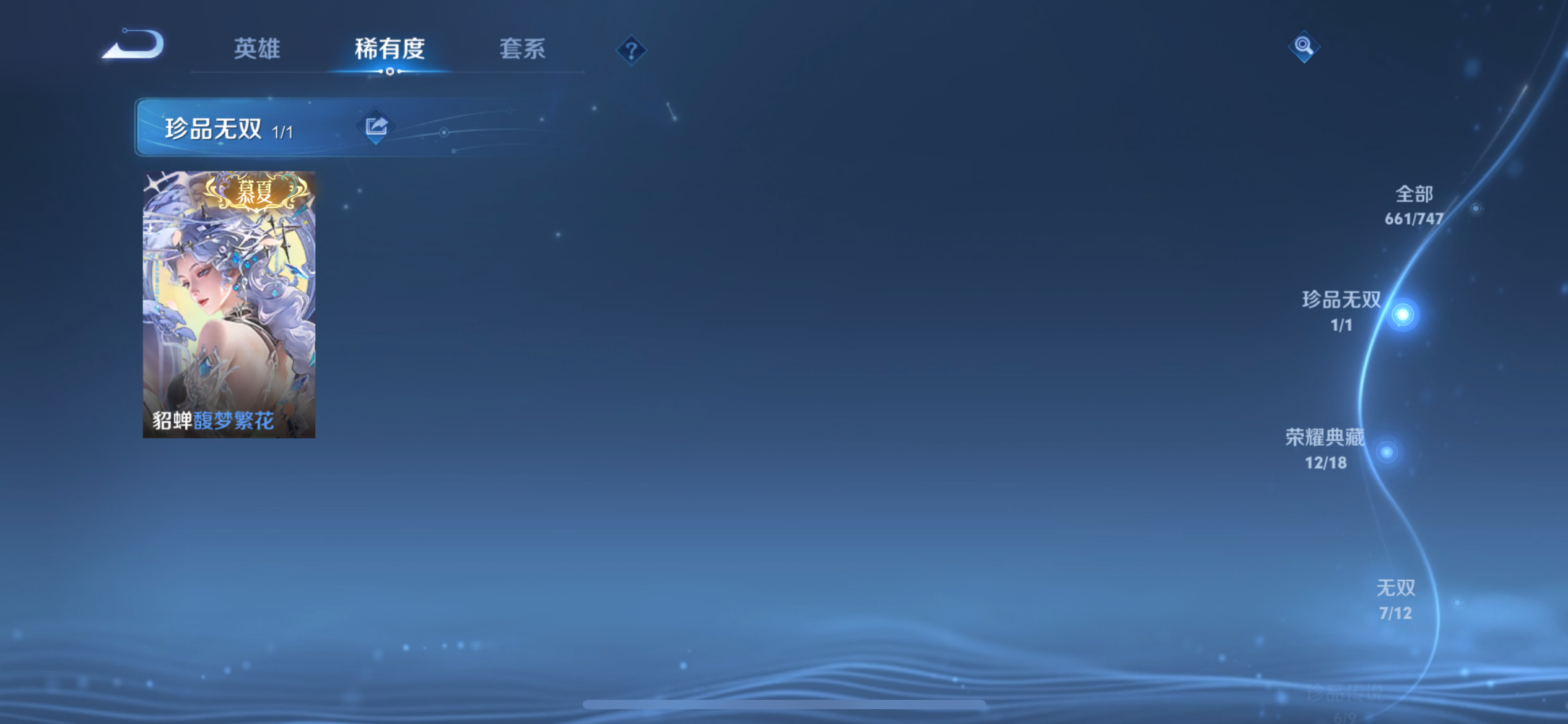 【王者荣耀】【lywz22739】珍品无双1 典藏12 无双7 珍品传说6 传说100 史诗237 英雄128 皮肤663 贵族无双级 珍品无双:馥梦繁花__荣耀典藏:无限飓风号|大秦宣太后|杀手不太冷|武则天|银白咏叹调|赤影疾锋|幻阙歌|九霄神辉|鸣剑·曳影|倪克斯神谕|弑呛猎影|星域神启|拾光映像__无双皮肤:群星魔术团|碎月剑心|真我赫兹|青丘·九尾|神器·明辉仪|天机白泽|神罪__珍品传说:怪盗基德|兔狲·蓬尾|大耳狗之梦|酷洛米之心|朽木白哉|黑崎一护__传说皮肤:鸣野蒿|枫霜尽|前尘镜|音你闪耀|深海之息|无双飞将|启示之音|花朝如约|补天|异界灵契|绛天战甲|炽阳神光|启明星使|胖达荣荣|地狱之眼|地狱火|海洋之心|孙策-末日机甲|仲夏夜之梦|云霓雀翎|久胜战神|黄金狮子座|狄仁杰-超时空战士|黄金射手座|黄金白羊座|猫影幻舞|刘备-时之恋人|一念神魔|云鹰飞将|冠军飞将|飞鸢探春|李|游龙清影|乞巧织情|淬星耀世|瑶-时之祈愿|炽翼辉光|电玩·雷克斯|绯月行|浮生妄|鹤羽星尊|画中仙|记忆之芯|孙尚香-末日机甲|齐天大圣|白虎志|安琪拉-追逃游戏|大乔-时之奇旅|凤求凰|惊梅引|兰陵王-默契交锋|零号·赤焰|落雪白狼|怒海麟威|祈雪灵祝|燃星之曲|诗剑行|时雨天司|霜月吟|碎云|太华|天魔缭乱|妄想奇谈|妄想实况|武陵仙君|武圣|项羽-无限倾心|小乔-音你心动|星穹之声|亚瑟-追逃游戏|寅虎·瑞焰|永曜之星|虞姬-无限倾心|遇见胡旋|遇见神鼓|周瑜-音你心动|逐花归海|乘龙·问璇玑|云缨-鹤归松栖|觅芳踪|山海·苍雷引|山海·炽霜斩|山海·琳琅生|神器·狴犴令|朵莉亚-心动手记|寅虎·赤拳|云中君-群星魔术团|至美·化雀舞|灼幽烈阳|张飞-百相守梦|祥瑞亨通|云诺千山|九山相柳|死亡执政官|诡秘之主|千山共赴|万灵伏威|神树通天|纵目迁山__稀有限定:寅虎·御盾|寅虎·展翼|寅虎·心曲|奔雷神使|御风骁将|白晶晶|至尊宝|梅西|瑞麟志|青龙志|玄武志|朱雀志|虞姬-霸王别姬|大圣娶亲|一生所爱|引擎之心|纯白花嫁|岱宗|玄嵩|幽恒|飞衡|蔷薇恋人|奇迹圣诞|蜜橘之夏|虎魄|神威|烈魂|龙胆|青春决赛季|白鹤梁神女|乒乒小将|孙行者|猪悟能|女儿国国王|傲雪梅呛|玉兔公主|李小龙|梁祝|山海·碧波行|山海·玄木吟|神器·万象笔|时之彼端|狮舞东方|唐三藏|拒霜思|暗影游猎|白昼王子|百解令|百里守约-真我赫兹|百木心呛|冰锋战神|冰霜恋舞曲|嫦娥-如梦令|妲己-时之奇旅|大漠名商|地狱燃心|电玩高手|繁星吟游|凤凰于飞|高山流水|古海寻踪|海滩派对|海盐诗旅|航海奇遇记|后羿-如梦令|胡桃异想国|华丽摇滚|幻夜卜梦|皇家上将|辉光之辰|混沌棋|火炮绅士|剑破天穹|江河有灵|降魔|金庭之子|镜-真我赫兹|决胜骁骑|凯尔特女王|狂想玩偶喵|蓝屏警告|黎明之约|炼金王|美猴王|梦圆繁星|迷踪丽影|魔术师|花木兰-默契交锋|匿光决锋者|匿光破解者|匿光启智者|匿光侦查者|匿光追影者|女武神|奇幻香踪|千军破阵|擒涛扼浪|青焰无极|穷奇|驱傩正仪|燃音魔法|热情桑巴|荣光圣徽|沙漠行僧|圣诞老人|朔风刀|死亡摇滚|探海日志|饕餮|醍醐杖|天降福星|天狼绘梦者|天狼狩猎者|天狼溯光者|天狼运算者|天狼征服者|天穹祈灯|玩趣恶龙|阿古朵-顽趣|万华元夜|王者之锤|妄想食味|无心|五谷丰年|午后时光|纤云弄巧|项羽-霸王别姬|星界游侠|星空之诺|驯魔猎人|演武夺筹|夜都怪侠|疑决卦|阴阳师|吟游魔法|银河之约|优雅恋人|游园惊梦|驭风魔法|遇见飞天|御旌|御銮|御狮|原初追逐者|云端筑梦师|云间偶戏|真爱魔法|逐梦之星|逐梦之翼|逐梦之音|逐梦之影|暗夜贵公子|暗夜猫娘|暗隐猎兽者|暗渊魔法|白龙吟|白蛇|缤纷独角兽|冰冠公主|冰雪圆舞曲|苍穹之光|乘风破浪|乘龙·聚宝船|大乔-猫狗日记|德古拉伯爵|地狱岩魂|电玩·爆裂旋风|电玩·兔顽号|电玩小子|浮梦罗烟|伽罗-琥珀纪元|功夫厨神|鬼剑武藏|唤灵魅影|黄金分割率|箭羽风息|节奏热浪|金属风暴|莱西奥-末日机甲|乐园奇幻夜|李元芳-蔬乡物语|龙鼓争鸣|龙骑士|吕布-末日机甲|玫瑰异探|魅力维加斯|魅语|梦奇-顽趣|女仆咖啡|偶像歌手|奇遇舞章|千筹问战|青蛇|热力回旋|赏金猎手|上官婉儿-群星魔术团|绅士熊喵|圣诞狂欢|圣诞恋歌|诗语江南|鲁班七号-蔬乡物语|水果甜心|水晶猎龙者|孙策-猫狗日记|滕王阁序|天才门将|天秀·幻梦|天秀·启明|天秀·音浪|完美假期|晚萤|赵云-未来纪元|嘻哈天王|闲日渔趣|星夜王子|雪上飞焰|雪夜绮愿|摇滚巨星|银翎春语|鹰眼统帅|永昼|幽灵船长|遇见神鹿|月团寄思|云中君-时之祈愿|职棒王牌|至美·乘鲤谣|钟无艳-超时空战士|周瑜-真爱至上|逐浪之夏|紫霞仙子|赵怀真-鹤归松栖|百里守约-百相守梦|老夫子-百相守梦|噬灭天穹|敬我三分|破空之剑|东方月初|涂山红红|霜北刀|蔡文姬-夏日便利店|虞姬-夏日便利店|天穹之誓|安琪拉-时之奇旅|修罗|曙光守护者|心灵战警|千年之狐|关羽-百相守梦|刘备-百相守梦|孙尚香-时之恋人|无限星赏官|舞动绿茵|特工魅影|心灵骇客|茶境仙|星界战将|谧流熔炉|御霄|狰|烛龙|原初探秘者|重明|云中旅人|玲珑珍味|单词大作战|朔望之晖|钟馗-神迹守卫|孙悟空-神迹守卫|达摩-星际陆战队|流音漫舞|访茗客|暖冬·兔眠|灵卜魔法|夺宝奇兵|苍威无极|圣弓游侠|墨子-神迹守卫|落雪兰心|死神来了|仙境爱丽丝|华尔街大亨|刘禅-鸭鸭历险记|沈梦溪-鸭鸭历险记|灵蛊蚀心|藏狐·褐绒|雪豹·霜爪|龙之律动|布丁狗之