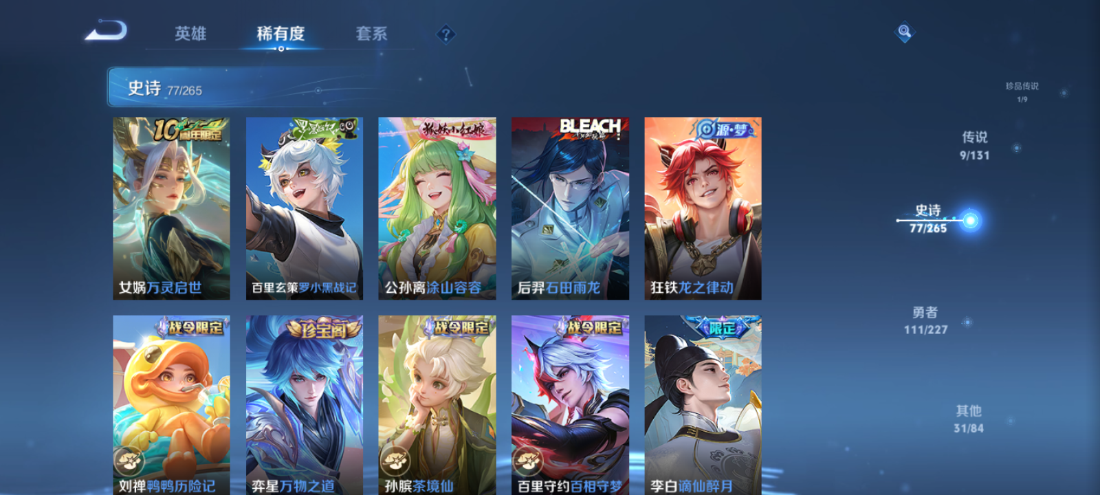 【王者荣耀】【lywz22735】珍品无双0 典藏1 无双0 珍品传说1 传说9 史诗77 英雄126 皮肤230 贵族3级 荣耀典藏:鸣剑·曳影__珍品传说:器灵·落星盏__传说皮肤:鸣野蒿|炽阳神光|胖达荣荣|地狱之眼|黄金狮子座|云鹰飞将|逐花归海|愿照·山河定|神树通天__稀有限定:青龙志|蔷薇恋人|蜜橘之夏|神威|孙行者|李小龙|山海·玄木吟|暗影游猎|百解令|大漠名商|地狱燃心|电玩高手|高山流水|古海寻踪|海滩派对|海盐诗旅|幻夜卜梦|皇家上将|火炮绅士|剑破天穹|江河有灵|金庭之子|黎明之约|魔术师|女武神|奇幻香踪|千军破阵|擒涛扼浪|驱傩正仪|荣光圣徽|沙漠行僧|死亡摇滚|探海日志|天穹祈灯|万华元夜|无心|五谷丰年|午后时光|纤云弄巧|星界游侠|演武夺筹|阴阳师|驭风魔法|遇见飞天|原初追逐者|真爱魔法|逐梦之影|暗夜贵公子|暗隐猎兽者|白蛇|缤纷独角兽|冰冠公主|冰雪圆舞曲|乘风破浪|地狱岩魂|电玩·爆裂旋风|电玩小子|鬼剑武藏|黄金分割率|节奏热浪|金属风暴|吕布-末日机甲|魅力维加斯|梦奇-顽趣|偶像歌手|绅士熊喵|圣诞恋歌|水果甜心|水晶猎龙者|孙策-猫狗日记|天才门将|天秀·启明|晚萤|赵云-未来纪元|星夜王子|摇滚巨星|鹰眼统帅|幽灵船长|逐浪之夏|紫霞仙子|百里守约-百相守梦|老夫子-百相守梦|谪仙醉月|噬灭天穹|敬我三分|破空之剑|天穹之誓|安琪拉-时之奇旅|心灵战警|刘备-百相守梦|特工魅影|茶境仙|谧流熔炉|万物之道|云中旅人|玲珑珍味|孙悟空-神迹守卫|流音漫舞|访茗客|暖冬·兔眠|圣弓游侠|刘禅-鸭鸭历险记|沈梦溪-鸭鸭历险记|龙之律动|布丁狗之约|虚灵犬护|石田雨龙|涂山容容|百里玄策-罗小黑战记|荣光之誓|万灵启世|鹤鸣心笺__优质皮肤:埃及法老|孤猎|木偶奇遇记|午夜歌剧院|激情绿茵|海之征途|秩序猎龙将|冰刃幻境|英喵野望|维京掠夺者|海军大将|踏雪寻梅|启蛰|战争骑士|伊势巫女|生化警戒|威尼斯狂欢|芝加哥教父|绝影神呛|幸存者|赤焰之缨|前尘|特种部队|占星师|花间舞|棒球奇才|圣殿之光|异域舞娘|破阵·退雄兵|暗都幽影|功夫炙烤|聚星闪耀|潮玩探月行|秘密基地|次元突破|鲨炮海盗猫|虹云星官|坚韧之力|幻乐之宴|功夫老勺|幻想奇妙夜|海滩丽影|阿尔法小队|兔女郎|死亡骑士|黄金武士|天使之翼|忍·炎影|街头霸王|教廷特使|决胜大满贯|破局者|王牌新星|零食大作战|太极少年|乐园追猎者|牛运亨通|幻泉雾影|契约魔法|潮玩牛仔|制霸全明星|进击墨子号|拳王|时尚教父|白色死神|白执事|哥特玫瑰|西施-雪境奇遇|星梦巡礼|景韶洛都|浪漫序章|缤纷绘卷|雾都夜雨|铁骨偃魂|纽约教父|龙腾万里|乱世虎臣|牛魔-西部大镖客|热血海滩|龙舞盛年|乓乓大师|五福同心|盾山-圆桌骑士|万事如意|曜-归虚梦演|唤灵魔甲|太乙真人-圆桌骑士|沉稳之力|程咬金-群星魔术团|完美运算|化身博士|熔金海岸|潮玩骑兵|苍林狼骑|蔚蓝守将|劲辣红锅|特工战影|炽热元素使|妄想特派|春野闲踪|灵野札记|玫蓝誓约|命运加冕|无双福将|落日弦歌__贵族等级:贵族3级__王者段位:永恒钻石背包4000紫星币 高质量捡漏皮肤号多限定