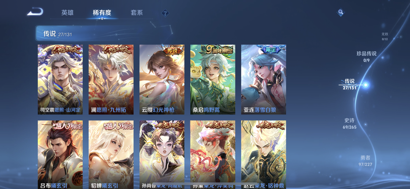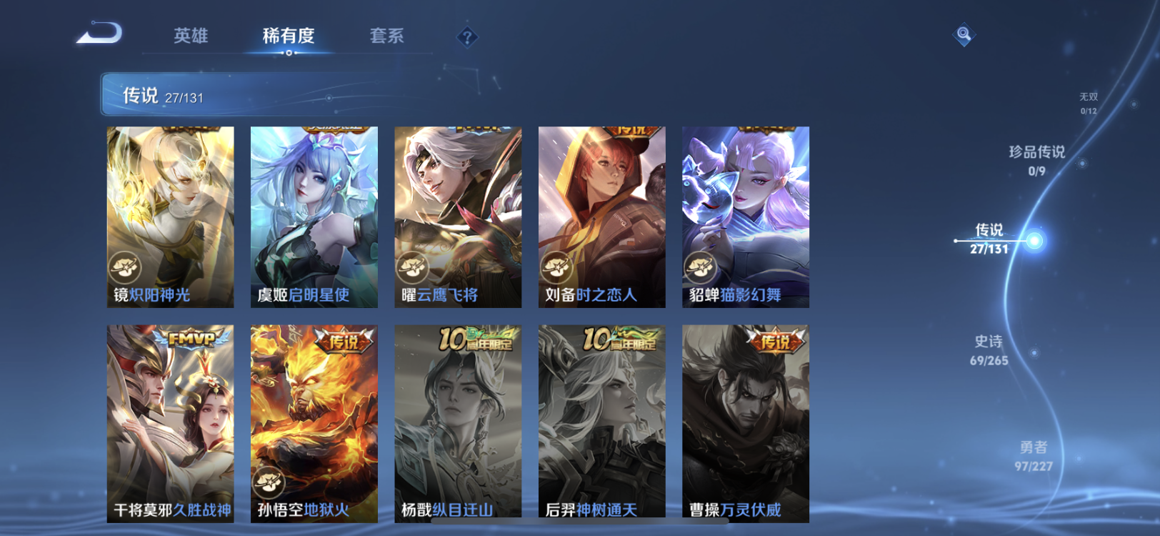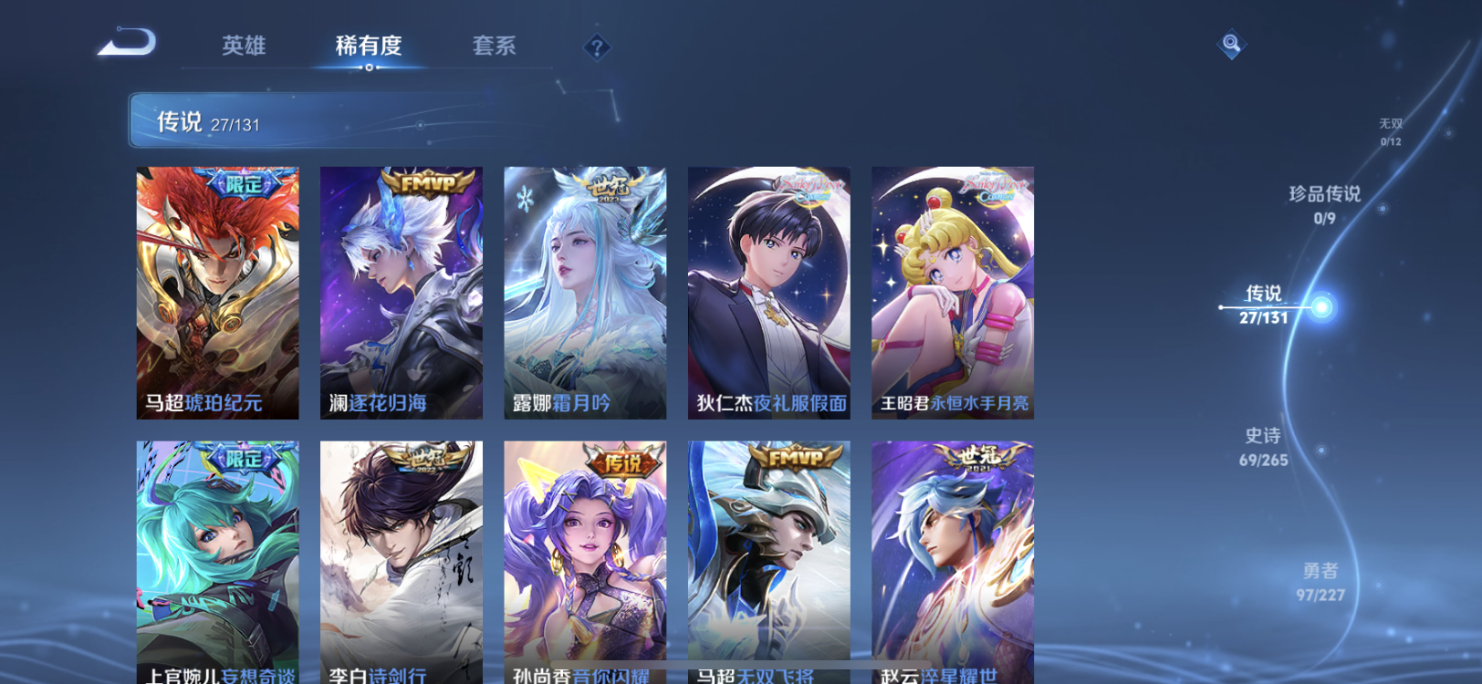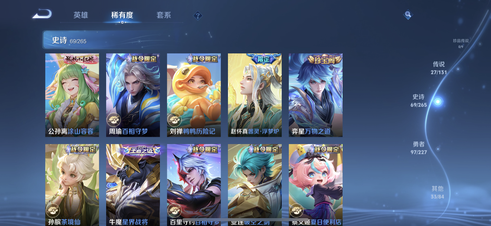 【王者荣耀】【lywz22756】珍品无双0 典藏1 无双0 珍品传说0 传说27 史诗69 英雄127 皮肤227 贵族8级 荣耀典藏:弑呛猎影__传说皮肤:鸣野蒿|音你闪耀|无双飞将|炽阳神光|启明星使|地狱火|久胜战神|猫影幻舞|刘备-时之恋人|云鹰飞将|淬星耀世|落雪白狼|吕布-曦玄引|马超-琥珀纪元|诗剑行|霜月吟|妄想奇谈|貂蝉-曦玄引|夜礼服假面|永恒水手月亮|逐花归海|乘龙·淬吴钩|乘龙·铭钟鼎|乘龙·问璇玑|幻光神呛|愿照·山河定|愿照·九州拓__稀有限定:神器·万象笔|拒霜思|百解令|百里守约-真我赫兹|超元猎域|地狱燃心|古海寻踪|海滩派对|皇家上将|剑破天穹|江河有灵|决胜骁骑|黎明之约|魔术师|青焰无极|燃音魔法|荣光圣徽|死亡摇滚|探海日志|天穹祈灯|纤云弄巧|阴阳师|驭风魔法|云间偶戏|逐梦之星|逐梦之音|暗夜贵公子|暗隐猎兽者|缤纷独角兽|冰冠公主|冰雪圆舞曲|乘龙·聚宝船|乘龙·忆丹青|德古拉伯爵|伽罗-琥珀纪元|鬼剑武藏|黄金分割率|节奏热浪|金属风暴|李元芳-蔬乡物语|吕布-末日机甲|魅力维加斯|魅语|女仆咖啡|偶像歌手|上官婉儿-群星魔术团|绅士熊喵|鲁班七号-蔬乡物语|水果甜心|水晶猎龙者|孙策-猫狗日记|天才门将|天秀·启明|天秀·音浪|晚萤|雪夜绮愿|鹰眼统帅|幽灵船长|月团寄思|逐浪之夏|紫霞仙子|百里守约-百相守梦|老夫子-百相守梦|噬灭天穹|敬我三分|破空之剑|蔡文姬-夏日便利店|虞姬-夏日便利店|天穹之誓|怒海争锋|曙光守护者|心灵战警|千年之狐|无限星赏官|特工魅影|茶境仙|星界战将|谧流熔炉|万物之道|器灵·浮梦炉|玲珑珍味|孙悟空-神迹守卫|流音漫舞|访茗客|灵卜魔法|苍威无极|刘禅-鸭鸭历险记|沈梦溪-鸭鸭历险记|虚灵犬护|逆浪荇歌|孙策-百相守梦|周瑜-百相守梦|涂山容容|荣光之誓|鹤鸣心笺__优质皮肤:尼罗河女神|创世神祝|年年有余|孤猎|午夜歌剧院|未来旅行|激情绿茵|碧珀绯影|秩序猎龙将|锦衣卫|冰刃幻境|英喵野望|维京掠夺者|海军大将|启蛰|第七人偶|潮流仙人|街头旋风|绝影神呛|地府判官|幸存者|特种部队|精灵王|剑舞者|龙域领主|极冰防御线|灼热之刃|阿摩司公爵|精灵公主|修竹墨客|动物派对|长夏之忆|异域游侠|暗都幽影|暖冬絮语|幻夜行动|聚星闪耀|潮玩探月行|虎啸剑宗|瓷语鉴心|秘密基地|次元突破|鲨炮海盗猫|虹云星官|幻乐之宴|功夫老勺|幻想奇妙夜|兔女郎|死亡骑士|黄金武士|天使之翼|宫本武藏-未来纪元|红桃皇后|忍·炎影|爱心护理|街头霸王|教廷特使|鸿运当头|金色潮汐|时空谍影|决胜大满贯|破局者|王牌新星|西部游侠|潮玩造梦师|契约魔法|次元傲视|幽兰居士|拳王|鲤鱼之梦|白色死神|白执事|魅影绮裳|西施-雪境奇遇|浪漫序章|铁骨偃魂|纽约教父|龙腾万里|经纬探寻者|敏锐之力|孙悟空-西部大镖客|牛魔-西部大镖客|龙舞盛年|汉昭烈帝|乓乓大师|五福同心|曜-归虚梦演|唤灵魔甲|程咬金-群星魔术团|完美运算|化身博士|花好人间|熔金海岸|春野之旅|无尽旅途|万象初新|苍林狼骑|特工战影|妄想特派|命运加冕|小满鸭|死霸装|踏浪烽翎__贵族等级:贵族8级__王者段位:至尊星耀打野对坑皮肤号 韩信典藏 龙年限定套 愿照·九州拓,愿照·山河定,落雪白狼,貂蝉 吕布 曦玄引,琥珀纪元,诗剑行,逐花归海,霜月吟,永恒水手月亮,夜礼服假面,炽阳神光,妄想奇谈等等限定皮肤