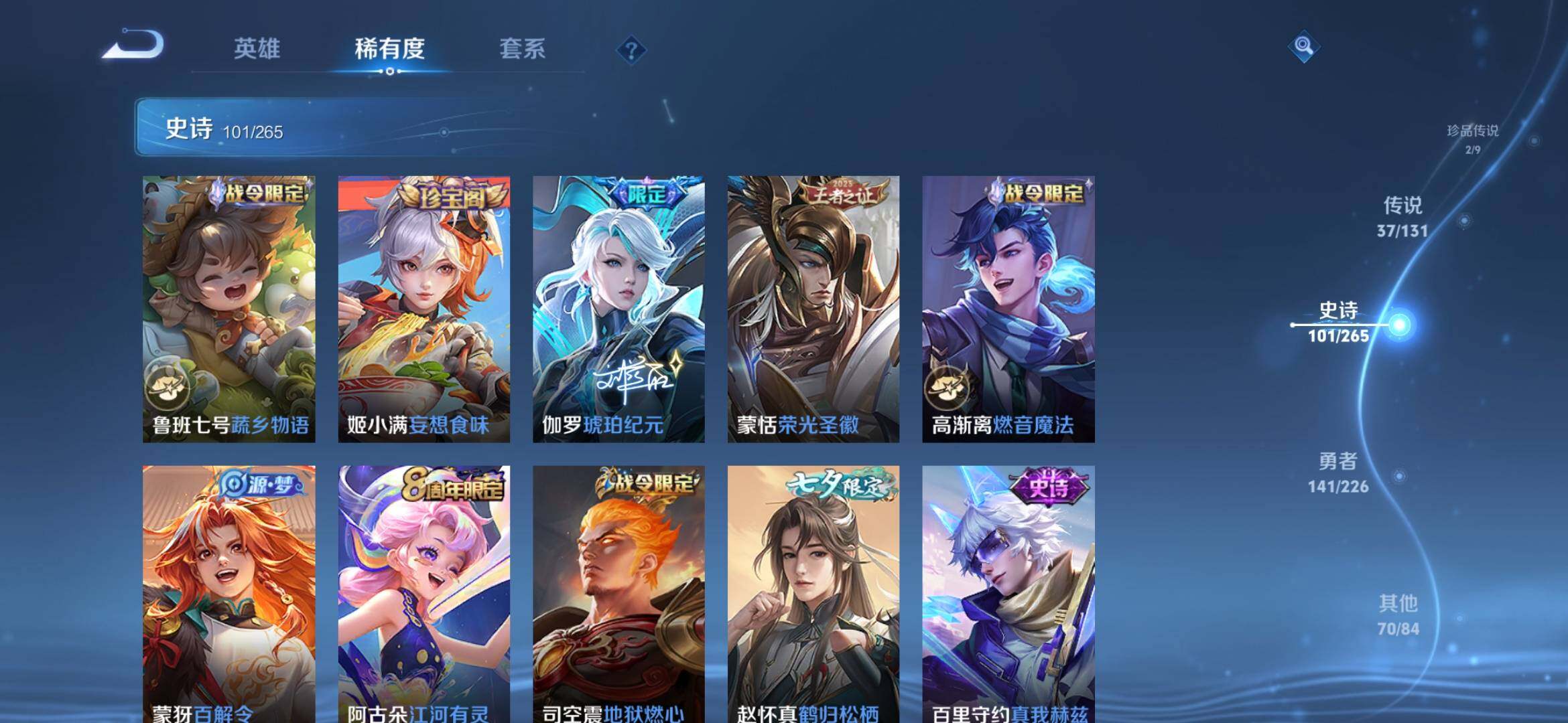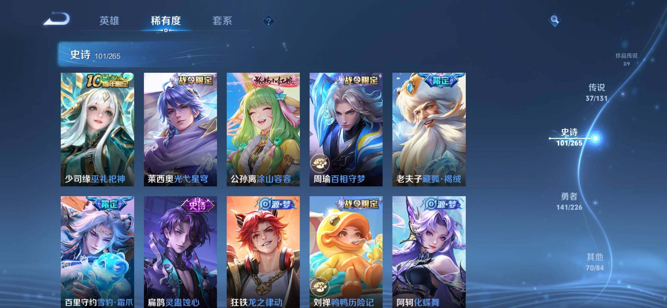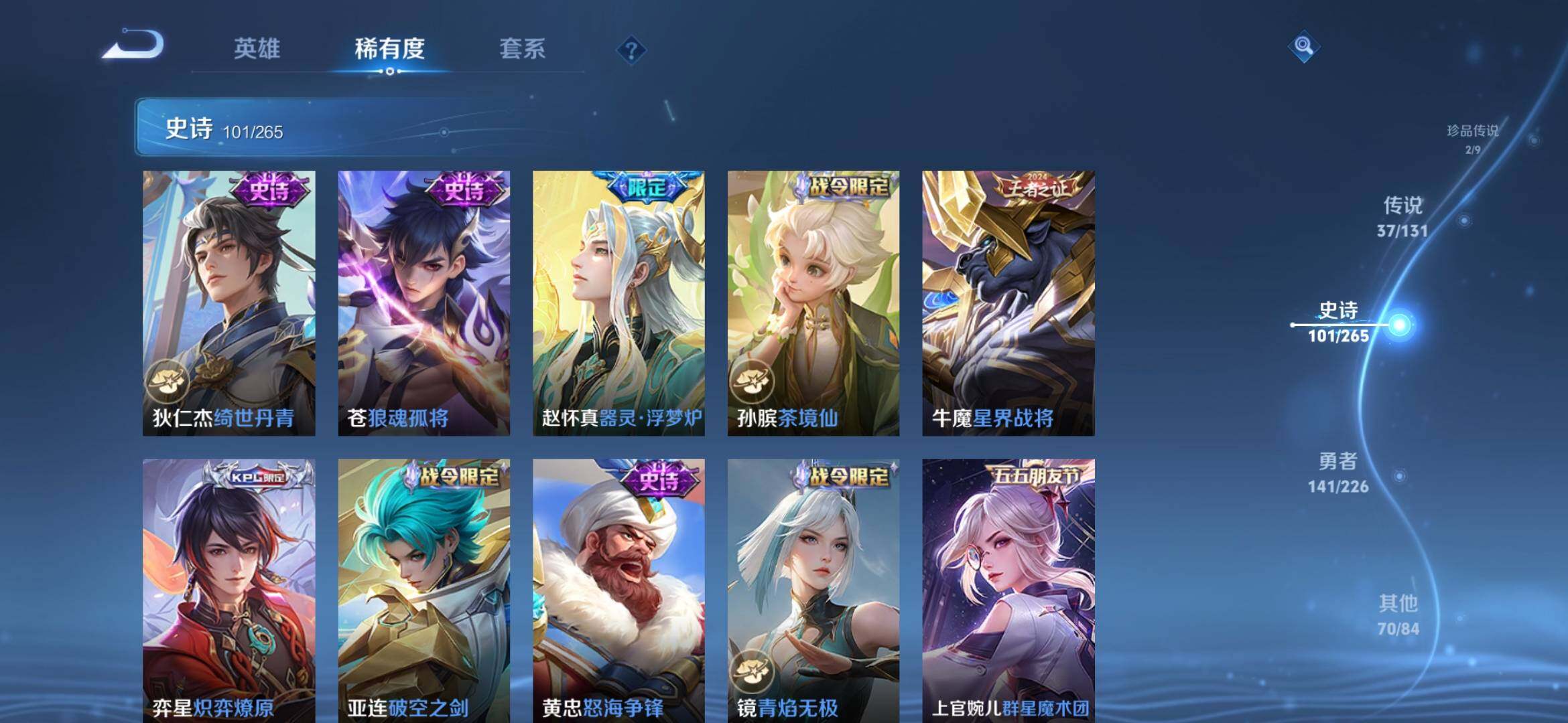 [14409817]安卓q-v9-最强王者段位-127英雄-353皮肤-1典藏皮肤-1无双-2珍品传说-37传说-101史诗 【英雄全皮】:司马懿全皮,孙权全皮,李信全皮,蒙恬全皮,司空震全皮,赵怀真全皮,戈娅全皮 【荣耀典藏】:韩信弑呛猎影 【无双皮肤】:曜器灵螭龙剑 【珍品传说】:嫦娥器灵落星盏,张飞兔狲蓬尾 【传说皮肤】:司马懿九山相柳,公孙离云诺千山,西施续相思,杨玉环星之鸣奏,司空震愿照山河定,女娲愿照千秋盛,妲己愿照众生和,云缨幻光神呛,桑启鸣野蒿,马超琥珀纪元,澜逐花归海,马可波罗妄想实况,诸葛亮鹤羽星尊,夏洛特浮生妄,干将莫邪画中仙,伽罗炽翼辉光,曜山海苍雷引,李信山海炽霜斩,吕布怒海麟威,不知火舞绯月行,百里守约碎云,马超无双飞将,孙策末日机甲,诸葛亮时雨天司,镜炽阳神光,虞姬启明星使,李信一念神魔,刘备时之恋人,干将莫邪久胜战神,达摩黄金狮子座,花木兰冠军飞将,梦奇胖达荣荣,后羿黄金射手座,貂蝉仲夏夜之梦,孙尚香末日机甲,宫本武藏地狱之眼,孙悟空地狱火 【限定皮肤】:大乔绒语心约,虞姬夏日便利店,姜子牙天穹之誓,狄仁杰阴阳师,赵云皇家上将,墨子降魔,嬴政白昼王子,高渐离玩趣恶龙,钟无艳超时空战士,扁鹊奇幻香踪,吕布猎兽之王,元歌无心,夏侯惇朔风刀,甄姬落雪兰心,典韦蓝屏警告,马可波罗山海玄木吟,马可波罗妄想实况,狄仁杰魔术师,狄仁杰万华元夜,项羽海滩派对,老夫子醍醐杖,关羽冰锋战神,程咬金演武夺筹,王昭君午后时光,不知火舞绯月行,孙悟空美猴王,牛魔御旌,李元芳云中旅人,虞姬启明星使,钟馗驱傩正仪,杨戬潮玩骑兵,女娲朔望之晖,干将莫邪冰霜恋舞曲,干将莫邪画中仙,雅典娜黎明之约,鬼谷子原初探秘者,鬼谷子五谷丰年,诸葛亮时雨天司,诸葛亮鹤羽星尊,黄忠火炮绅士,百里玄策原初追逐者,百里守约朱雀志,弈星混沌棋,梦奇顽趣,沈梦溪大漠名商,明世隐疑决卦,裴擒虎李小龙,裴擒虎擒涛扼浪,狂铁御狮,米莱狄御霄,米莱狄胡桃异想国,云中君纤云弄巧,李信山海炽霜斩,伽罗炽翼辉光,盾山御銮,上官婉儿梁祝,上官婉儿神器万象笔,嫦娥拒霜思,嫦娥暖冬兔眠,曜山海苍雷引,西施玲珑珍味,鲁班大师探海日志,桑启海盐诗旅,夏洛特浮生妄,暃星界游侠,戈娅驭风魔法,艾琳流音漫舞,赵怀真鹤归松栖,司空震地狱燃心,阿古朵江河有灵,张良古海寻踪,蒙犽百解令,蒙恬荣光圣徽,高渐离燃音魔法,妲己灵卜魔法,鬼谷子天穹祈灯