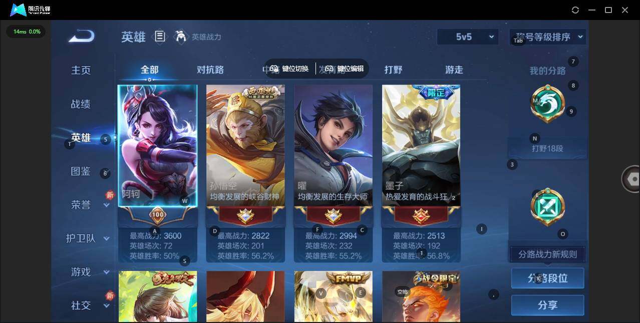 [14417514]贵族等级: v6 英雄数: 125 皮肤数: 165 传说皮: 炽阳神光胖达荣荣山海·苍雷引浮生妄鹤羽星尊 限定皮: 遇见飞天御风骁将孙行者五谷丰年降魔山海·玄木吟