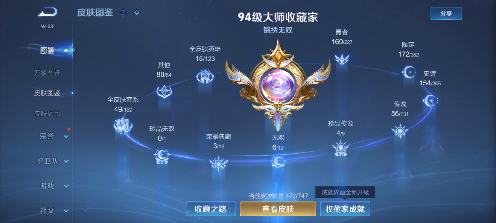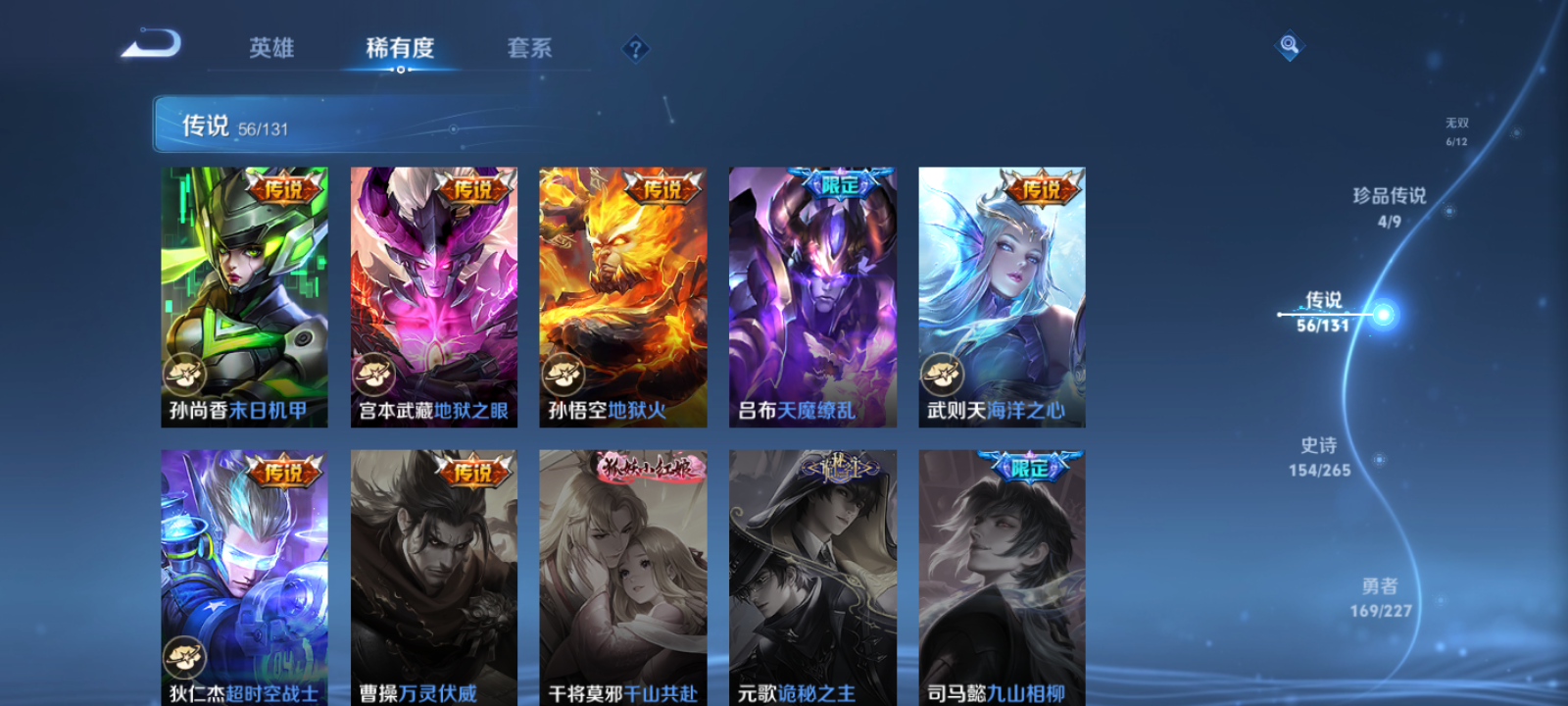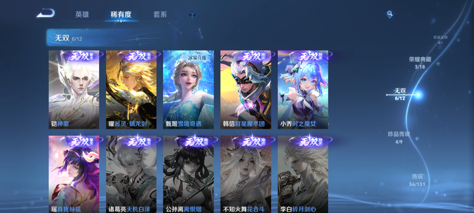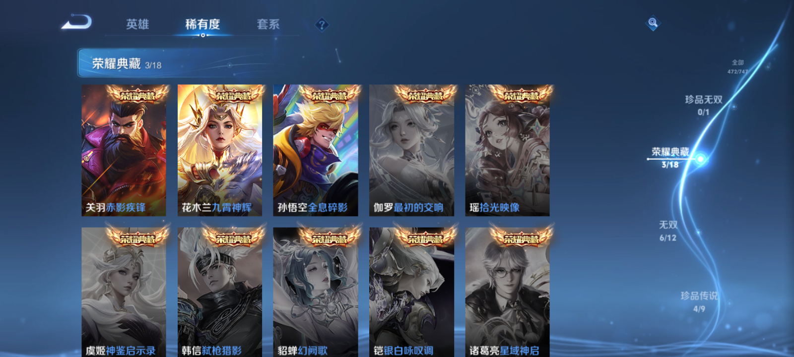 【王者荣耀】【lywz22794】珍品无双0 典藏3 无双6 珍品传说4 传说56 史诗154 英雄128 皮肤472 贵族无双级 荣耀典藏:全息碎影|武则天|赤影疾锋|九霄神辉__无双皮肤:群星魔术团|时之魔女|真我赫兹|雪境奇遇|器灵·螭龙剑|神罪__珍品传说:江户川柯南|怪盗基德|孙策-时之奇旅|器灵·落星盏__传说皮肤:鸣野蒿|音你闪耀|无双飞将|启示之音|异界灵契|绛天战甲|炽阳神光|启明星使|胖达荣荣|地狱之眼|地狱火|海洋之心|仲夏夜之梦|云霓雀翎|久胜战神|黄金狮子座|狄仁杰-超时空战士|黄金射手座|黄金白羊座|猫影幻舞|一念神魔|云鹰飞将|乞巧织情|淬星耀世|绯月行|浮生妄|画中仙|孙尚香-末日机甲|凤求凰|鲁班七号-时之奇旅|祈雪灵祝|时雨天司|霜月吟|天魔缭乱|妄想奇谈|妄想实况|武圣|周瑜-音你心动|逐花归海|觅芳踪|玄雷天君|幻光神呛|祥瑞亨通|愿照·岁时盈|愿照·山河定|愿照·九州拓|愿照·众生和|愿照·福禄聚|星之鸣奏|愿照·千秋盛|千劫归真|续相思|云诺千山|死亡执政官|神树通天|纵目迁山__稀有限定:至尊宝|朱雀志|虞姬-霸王别姬|大圣娶亲|一生所爱|引擎之心|纯白花嫁|岱宗|神威|烈魂|龙胆|青春决赛季|孙行者|猪悟能|傲雪梅呛|李小龙|梁祝|山海·碧波行|山海·玄木吟|神器·万象笔|拒霜思|暗影游猎|百解令|百木心呛|冰锋战神|冰霜恋舞曲|大漠名商|地狱燃心|电玩高手|繁星吟游|高山流水|古海寻踪|海滩派对|海盐诗旅|航海奇遇记|胡桃异想国|幻夜卜梦|皇家上将|混沌棋|火炮绅士|剑破天穹|江河有灵|金庭之子|决胜骁骑|黎明之约|魔法小厨娘|魔术师|女武神|奇幻香踪|千军破阵|擒涛扼浪|青焰无极|驱傩正仪|燃音魔法|荣光圣徽|沙漠行僧|朔风刀|死亡摇滚|醍醐杖|天狼溯光者|天穹祈灯|万华元夜|无心|五谷丰年|午后时光|纤云弄巧|星界游侠|演武夺筹|夜都怪侠|夜都魔契|疑决卦|阴阳师|吟游魔法|银河之约|优雅恋人|御狮|原初追逐者|云间偶戏|真爱魔法|暗夜贵公子|暗夜猫娘|暗隐猎兽者|暗渊魔法|白龙吟|白蛇|缤纷独角兽|冰冠公主|冰雪圆舞曲|苍穹之光|乘风破浪|大乔-猫狗日记|德古拉伯爵|地狱岩魂|电玩小子|功夫厨神|鬼剑武藏|黄金分割率|箭羽风息|节奏热浪|金属风暴|莱西奥-末日机甲|乐园奇幻夜|龙鼓争鸣|龙骑士|吕布-末日机甲|魅力维加斯|魅语|梦奇-顽趣|女仆咖啡|偶像歌手|奇遇舞章|赏金猎手|绅士熊喵|圣诞狂欢|圣诞恋歌|诗语江南|水果甜心|水晶猎龙者|孙策-猫狗日记|天才门将|天秀·启明|晚萤|赵云-未来纪元|星夜王子|雪上飞焰|摇滚巨星|鹰眼统帅|永昼|幽灵船长|遇见神鹿|月团寄思|钟无艳-超时空战士|周瑜-真爱至上|逐浪之夏|紫霞仙子|百里守约-百相守梦|老夫子-百相守梦|陌上桑|谪仙醉月|星界特工|噬灭天穹|敬我三分|撼地雄心|破空之剑|蔡文姬-夏日便利店|虞姬-夏日便利店|天穹之誓|怒海争锋|修罗|曙光守护者|心灵战警|千年之狐|关羽-百相守梦|孙尚香-时之恋人|无限星赏官|舞动绿茵|特工魅影|心灵骇客|飞车小橘子|茶境仙|星界战将|谧流熔炉|苍鳞隐世|万物之道|器灵·浮梦炉|糖绘人间|狼魂孤将|绮世丹青|瑰影绮梦|化蝶舞|御霄|原初探秘者|云中旅人|玲珑珍味|孙悟空-神迹守卫|达摩-星际陆战队|流音漫舞|访茗客|暖冬·兔眠|苍威无极|圣弓游侠|墨子-神迹守卫|落雪兰心|仙境爱丽丝|刘禅-鸭鸭历险记|沈梦溪-鸭鸭历险记|灵蛊蚀心|藏狐·褐绒|雪豹·霜爪|龙之律动|布丁狗之约|虚灵犬护|逆浪荇歌|孙策-百相守梦|周瑜-百相守梦|黄忠-百相守梦|织梦人|涂山容容|光弋星穹|往忆晖光|百里玄策-罗小黑战记|荣光之誓|万灵启世|巫礼祀神|鹤鸣心笺__优质皮肤:尼罗河女神|一千零一夜|创世神祝|年年有余|埃及法老|孤猎|木偶奇遇记|熊喵少女|午夜歌剧院|露花倒影|未来旅行|激情绿茵|海之征途|天启骑士|碧珀绯影|秩序猎龙将|锦衣卫|冰刃幻境|森|超能战警|英喵野望|维京掠夺者|海军大将|绯红之刃|踏雪寻梅|启蛰|战争骑士|伊势巫女|画中游|生化警戒|威尼斯狂欢|第七人偶|潮流仙人|芝加哥教父|街头旋风|绝影神呛|地府判官|荷鲁斯之眼|幸存者|赤焰之缨|福禄兄弟|隐刃|前尘|特种部队|三太子|精灵王|剑舞者|范海辛|星航指挥官|龙域领主|爱与和平|占星师|花间舞|魇语军师|极冰防御线|花见巫女|棒球奇才|东海龙王|蔷薇王座|灼热之刃|精准探案法|圣殿之光|帝国元帅|战争女神|霓裳曲|加勒比小姐|阿摩司公爵|异域舞娘|精灵公主|修竹墨客|万圣前夜|怪诞之夜|动物派对|绒语心约|长夏之忆|异域游侠|暗都幽影|功夫炙烤|幻夜行动|聚星闪耀|潮玩探月行|虎啸剑宗|瓷语鉴心|秘密基地|次元突破|鲨炮海盗猫|野性能量|丁香结|奇妙博物学|虹云星官|守护之力|坚韧之力|幻乐之宴|功夫老勺|命运角斗场|幻想奇妙夜|海滩丽影|阿尔法小队|兔女郎|死亡骑士|黄金武士|少女阿狸|天使之翼|玩偶对对碰|宫本武藏-未来纪元|红桃皇后|忍·炎影|爱心护理|街头霸王|教廷特使|金色潮汐|时空谍影|破局者|零食大作战|西部游侠|太极少年|牛运亨通|幻泉雾影|危途狂花|胡桃狂想曲|潮玩牛仔|紫罗兰之誓|铁甲之心|重装意志|次元傲视|黑桃队长|拳王|时尚教父|救世之瞳|白色死神|程咬金-星际陆战队|白执事|大发明家|哥特玫瑰|魅影绮裳|西施-雪境奇遇|金福满堂|星梦巡礼|灵卦秘语|爆裂喵拳|景韶洛都|浪漫序章|缤纷绘卷|掌控之力|雾都夜雨|逐霄战戟|铁骨偃魂|纽约教父|龙腾万里|乱世虎臣