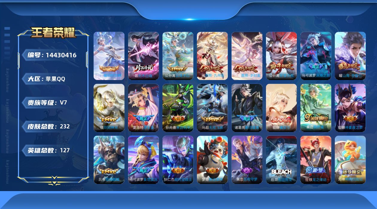 [14430416]v7 1典藏 1珍品传说 19传说 127英雄 232皮肤 可修改实名 【英雄全皮】:蒙恬全皮敖隐全皮影全皮 【稀有英雄】:敖隐小龙人大司命嬴政始皇帝韩信韩跳跳夏洛特夏师傅艾琳橘右京橘子娜可露露鸟人不知火舞赵云金蝉唐僧戈娅 【荣耀水晶】:最初的交响伽罗典藏 【珍品传说】:朽木白哉 【传说皮】:貂蝉曦玄引云诺千山神树通天仲夏夜之梦大飞蛾末日机甲-孙尚香绿蚂蚱炽阳神光无双飞将胖达荣荣超时空战士-狄仁杰山海·苍雷引电光曜子浮生妄鹤羽星尊妄想实况 【珍宝阁皮】:优雅恋人蔷薇恋人玩趣恶龙 【赛季/战令皮】:噬灭天穹s37古海寻踪s33星界游侠海盐诗旅s30擒涛扼浪s31探海日志s32驭风魔法玲珑珍味顽趣-梦奇剑破天穹s35天穹祈灯s34天穹之誓s36蔡文姬夏日便利店虞姬夏日便利店暖冬·兔眠疑决卦s19醍醐杖s20原初探秘者s21万华元夜s22驱傩正仪s24金庭之子s27大漠名商s28云中旅人s29 【史诗皮】:绮世丹青化蝶舞鸭鸭历险记-刘禅龙之律动石田雨龙百相守梦-黄忠星界战将谪仙醉月蒙犽顽岩魄苍穹之光黄金分割率特工魅影千年之狐江河有灵蒙恬荣光圣徽晚萤无限星赏官魅语末日机甲-吕布猫狗日记-孙策猫狗日记-大乔节奏热浪修罗女仆咖啡水果甜心星夜王子德古拉伯爵暗隐猎兽者鬼剑武藏心灵战警地狱岩魂纤云弄巧繁星吟游呼啦呼啦缤纷独角兽逐浪之夏水晶猎龙者曙光守护者唤灵魅影金属风暴原初追逐者圣诞恋歌鹰眼统帅暗夜贵公子黎明之约奇遇舞章无心 【限定皮】:愿照·九州拓澜年限愿照·岁时盈虞姬年限鸣野蒿至尊宝白晶晶怒海麟威五谷丰年梁祝逐梦之音祈雪灵祝雪兔子李小龙深海之息深海大菠萝 【普通皮】:熔金海岸苍林狼骑魅影绮裳铁骨偃魂谧流熔炉雾都夜雨敬我三分劲辣红锅破阵·退雄兵长夏之忆暗都幽影程咬金群星魔术团龙舞盛年功夫炙烤漠中幻影街头霸王星梦巡礼逆浪荇歌鹤鸣心笺荣光之誓灵卦秘语落日弦歌踏浪烽翎死霸装春野闲踪小满鸭景韶洛都玫蓝誓