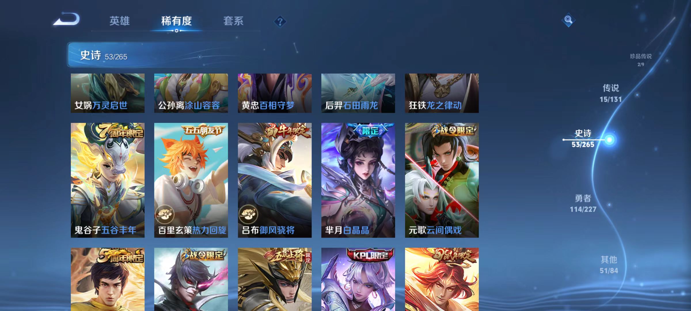 txwz23472 全皮曜 v7-237皮 1无双 器灵·螭龙剑 2珍品 黑崎一护,朽木白哉 15传说 久胜战神,寅虎·瑞焰,淬星耀世,李 ,时雨天司,绛天战甲,云鹰飞将,末日机甲,地狱火,诗剑行,胖达荣荣,山海·苍雷引,记忆之芯,逐花归海,鸣野蒿 54史诗 热力回旋,万灵启世,节奏热浪,涂山容容,百相守梦,龙之律动,无限星赏官,石田雨龙,地狱岩魂,蔷薇恋人,云间偶戏,御风骁将,金属风暴,白晶晶,李小龙,繁星吟游,暗影游猎,天狼绘梦者,神威,鹰眼统帅,银河之约,魔术师,飞衡,驯魔猎人,缤纷独角兽,梁祝,狮舞东方,水果甜心,白昼王子,遇见飞天,游园惊梦,逐梦之影,德古拉伯爵,水晶猎龙者,圣诞恋歌,皇家上将,圣诞狂欢,白龙吟,逐梦之音,紫霞仙子,千年之狐,逐浪之夏,特工魅影,末日机甲,五谷丰年,功夫厨神,晚萤,幽灵船长,鬼剑武藏,猫狗日记,天才门将,绅士熊喵,冰雪圆舞曲,魅力维加斯