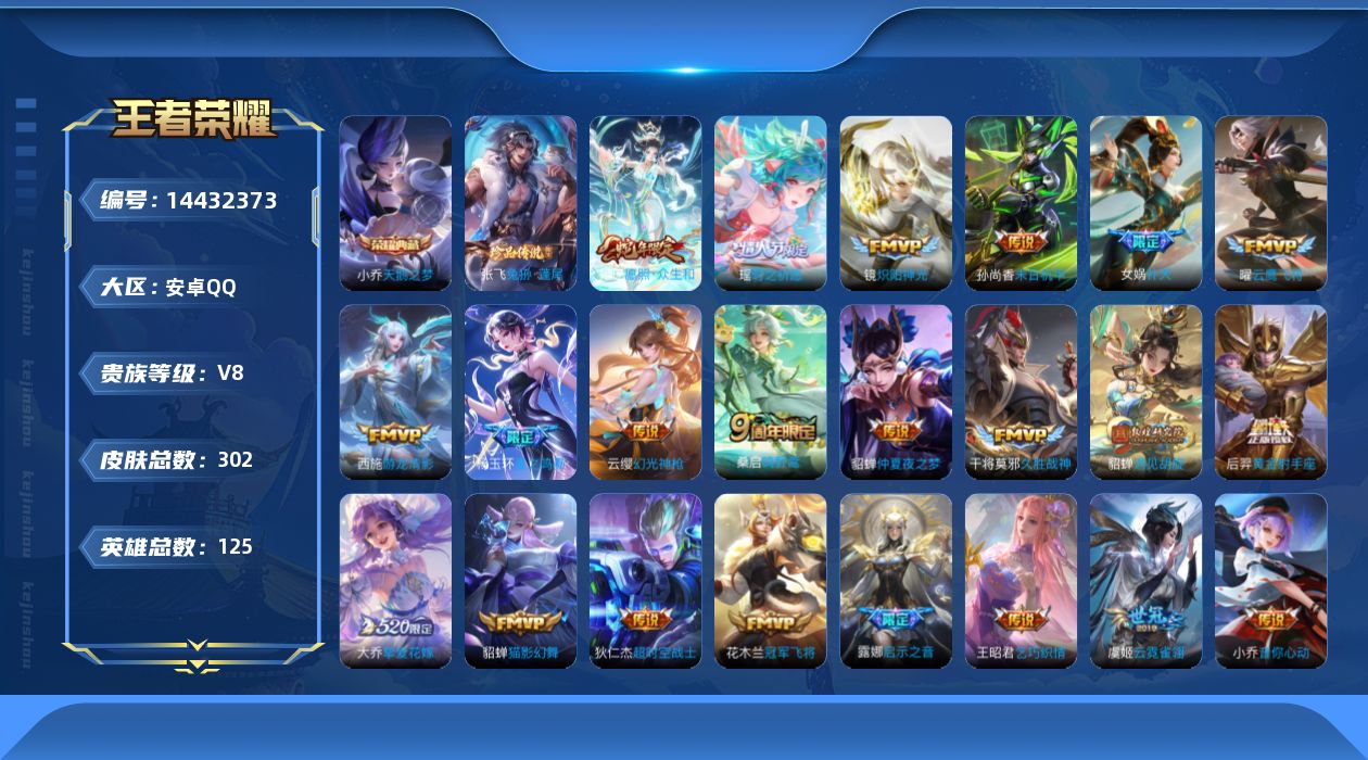 [14432373]v8 1典藏 1珍品传说 25传说 125英雄 302皮肤 可修改实名 【英雄全皮】:影全皮戈娅全皮 【稀有英雄】:大司命韩信韩跳跳夏洛特夏师傅艾琳橘右京橘子娜可露露鸟人不知火舞赵云金蝉唐僧戈娅 【荣耀水晶】:天鹅之梦小乔典藏 【珍品传说】:兔狲·蓬尾 【传说皮】:幻光神呛星之鸣奏遇见胡旋游龙清影小青龙黄金射手座仲夏夜之梦大飞蛾末日机甲-孙尚香绿蚂蚱云霓雀翎冠军飞将久胜战神猫影幻舞云鹰飞将小将军炽阳神光音你心动-小乔乞巧织情飞鸢探春超时空战士-狄仁杰花朝如约花篮子挚爱花嫁 【珍宝阁皮】:妄想食味蔷薇恋人玩趣恶龙 【赛季/战令皮】:噬灭天穹s37古海寻踪s33海盐诗旅s30擒涛扼浪s31潮玩骑兵奇幻香踪探海日志s32驭风魔法玲珑珍味顽趣-梦奇剑破天穹s35天穹祈灯s34天穹之誓s36蔡文姬夏日便利店虞姬夏日便利店原初探秘者s21万华元夜s22演武夺筹s23千军破阵s25圣弓游侠真爱魔法火炮绅士沙漠行僧s26幻夜卜梦吟游魔法夜都怪侠金庭之子s27午后时光大漠名商s28云中旅人s29超时空战士-钟无艳落雪兰心 【史诗皮】:化蝶舞鸭鸭历险记-刘禅雪豹·霜爪龙之律动茶境仙星界战将蒙犽顽岩魄蔬乡物语鲁班七号遇见神鹿白龙吟黄金分割率特工魅影千年之狐永昼高渐离燃音魔法百解令蒙犽蒙恬荣光圣徽龙骑士小龙虾偶像歌手晚萤无限星赏官魅语白蛇电玩·爆裂旋风暗夜猫娘时之恋人-孙尚香乱世虎臣修罗女仆咖啡摇滚巨星水果甜心天才门将星夜王子心灵骇客时之奇旅-安琪拉幽灵船长鬼剑武藏诗语江南纤云弄巧拒霜思缤纷独角兽乘风破浪逐浪之夏月团寄思水晶猎龙者唤灵魅影箭羽风息金属风暴圣诞狂欢圣诞恋歌鹰眼统帅暗夜贵公子魅力维加斯奇遇舞章未来纪元-赵云 【限定皮】:愿照·众生和妲己年限逐霄战戟陌上桑鸣野蒿傲雪梅呛补天寅虎·展翼孙膑年限魔法小厨娘高山流水五谷丰年幽恒沐浴露梁祝李小龙一生所爱匿光追影者寅虎·心曲虎婆时之祈愿-云中君时