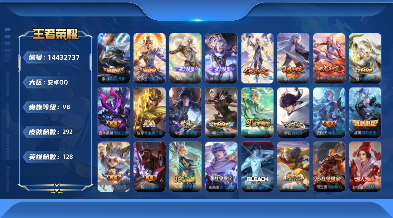 [14432737]v6 2典藏 2无双 15传说 128英雄 292皮肤 典藏英雄武则天 可修改实名 【英雄全皮】:李白全皮司空震全皮敖隐全皮蚩奼全皮 【稀有英雄】:敖隐小龙人大司命嬴政始皇帝韩信韩跳跳夏洛特夏师傅艾琳橘右京橘子娜可露露鸟人不知火舞赵云金蝉唐僧戈娅 【荣耀水晶】:鸣剑·曳影九霄神辉木兰典藏 【无双皮】:韩信群星魔术团韩信无双碎月剑心李白无双 【传说皮】:乘龙·淬吴钩孙策年限神树通天黄金狮子座海洋之心地狱之眼一念神魔云鹰飞将小将军炽阳神光飞鸢探春绛天战甲鸡嘴战神 【珍宝阁皮】:万物之道蔷薇恋人 【赛季/战令皮】:噬灭天穹s37海盐诗旅s30擒涛扼浪s31探海日志s32地狱燃心剑破天穹s35天穹祈灯s34青焰无极苍威无极天穹之誓s36炼金王s6凯尔特女王s7狰s8饕餮s9烛龙s10重明s11穷奇s12御狮s13御霄s14御旌s15御銮s16朔风刀s17混沌棋s18疑决卦s19醍醐杖s20原初探秘者s21万华元夜s22演武夺筹s23驱傩正仪s24夺宝奇兵迷踪丽影沙漠行僧s26金庭之子s27大漠名商s28云中旅人s29 【史诗皮】:石田雨龙星界战将谪仙醉月曹操夜都魔契怒海争锋光弋星穹万灵启世紫霞仙子苍穹之光电玩小子小书包白龙吟黄金分割率特工魅影千年之狐冰冠公主青蛇偶像歌手晚萤暗夜猫娘末日机甲-吕布猫狗日记-孙策乱世虎臣修罗女仆咖啡摇滚巨星水果甜心心灵骇客功夫厨神德古拉伯爵暗隐猎兽者幽灵船长鬼剑武藏天秀·启明舞动绿茵地狱岩魂诗语江南纤云弄巧繁星吟游呼啦呼啦缤纷独角兽乘风破浪逐浪之夏水晶猎龙者金属风暴原初追逐者圣诞狂欢鹰眼统帅王者之锤暗夜贵公子魅力维加斯黎明之约无心未来纪元-赵云 【限定皮】:愿照·山河定司空震年限鸣野蒿凤求凰白切鸡遇见飞天诗剑行梁祝李小龙逐梦之影孙行者大圣娶亲 【普通皮】:极光幻客熔金海岸雾都夜雨动物派对劲辣红锅大乔绒语心约破阵