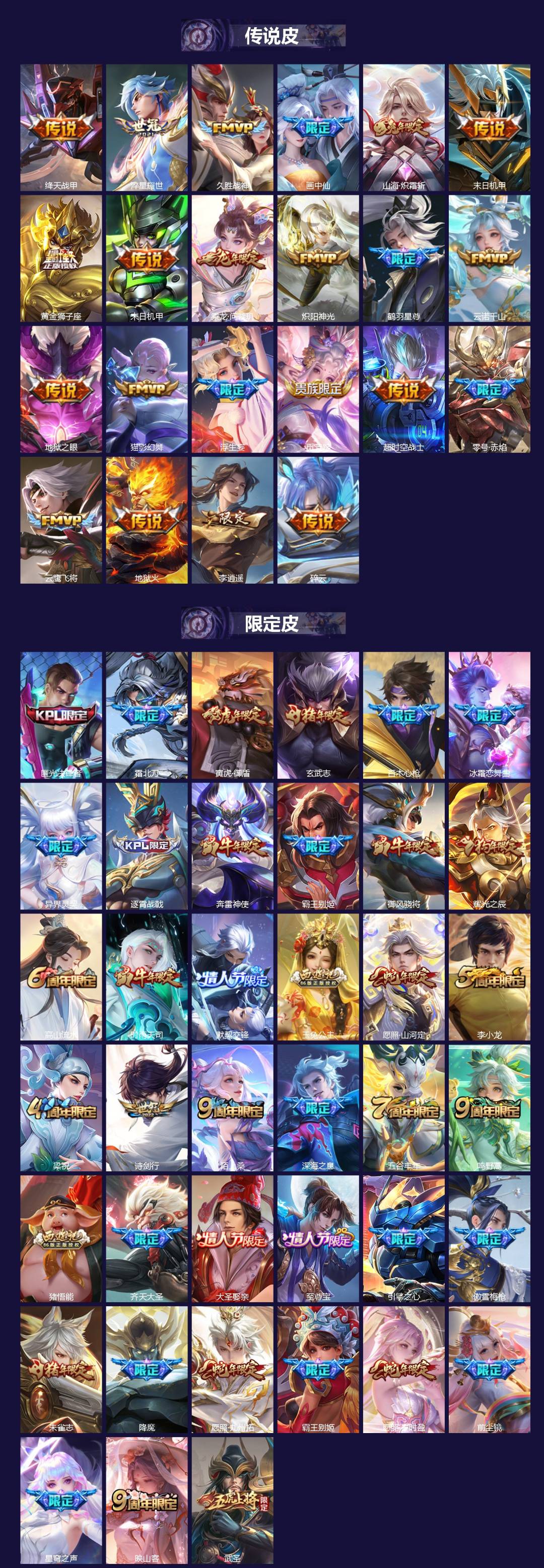 [14433421]v10 5典藏 1珍品无双 2无双 4珍品传说 38传说 127英雄 431皮肤 可修改实名 【英雄全皮】:娜可露露全皮狂铁全皮刘邦全皮夏洛特全皮猪八戒全皮影全皮 【稀有英雄】:敖隐小龙人大司命嬴政始皇帝韩信韩跳跳夏洛特夏师傅艾琳橘右京橘子娜可露露鸟人不知火舞赵云金蝉唐僧戈娅 【珍品无双】:馥梦繁花 【荣耀水晶】:神鉴启示录鸣剑·曳影幻阙歌貂蝉典藏全息碎影猴子典藏杀手不太冷 【无双皮】:器灵·螭龙剑离恨烟公孙离无双 【珍品传说】:怪盗基德时之奇旅-孙策酷洛米之心大耳狗之梦 【传说皮】:乘龙·问璇玑孙尚香年限云诺千山李山海·炽霜斩李信年限黄金狮子座零号·赤焰地狱火地狱之眼末日机甲-孙尚香绿蚂蚱淬星耀世久胜战神猫影幻舞云鹰飞将小将军炽阳神光绛天战甲鸡嘴战神超时空战士-狄仁杰末日机甲-孙策碎云画中仙浮生妄鹤羽星尊艾琳觅芳踪 【珍宝阁皮】:妄想食味胡桃夹子蔷薇恋人女武神 【赛季/战令皮】:噬灭天穹s37古海寻踪s33星界游侠海盐诗旅s30擒涛扼浪s31潮玩骑兵奇幻香踪探海日志s32顽趣-梦奇剑破天穹s35天穹祈灯s34青焰无极苍威无极天穹之誓s36蔡文姬夏日便利店虞姬夏日便利店暖冬·兔眠凯尔特女王s7狰s8饕餮s9穷奇s12御狮s13御霄s14御旌s15御銮s16朔风刀s17混沌棋s18疑决卦s19醍醐杖s20原初探秘者s21万华元夜s22演武夺筹s23驱傩正仪s24千军破阵s25朔望之晖蓝屏警告神迹守卫-钟馗狮舞东方赤莲之焰驯魔猎人星空之诺银河之约夺宝奇兵迷踪丽影西部大镖客-猪八戒暗影游猎游乐娃子单词大作战狂想玩偶喵潮玩骑士王云间偶戏星际陆战队-达摩胡桃异想国神迹守卫-墨子航海奇遇记圣弓游侠真爱魔法火炮绅士沙漠行僧s26幻夜卜梦吟游魔法夜都怪侠金庭之子s27电玩高手电玩铁子午后时光大漠名商s28云中旅人s29超时空战士-钟无艳落雪兰心 【史诗皮】:灵蛊蚀心器