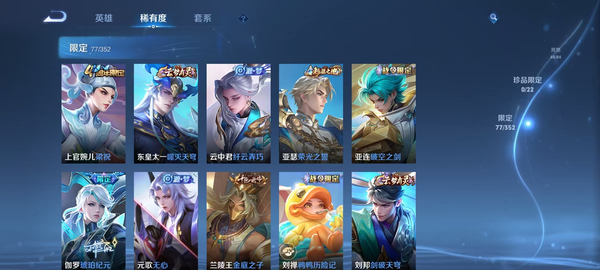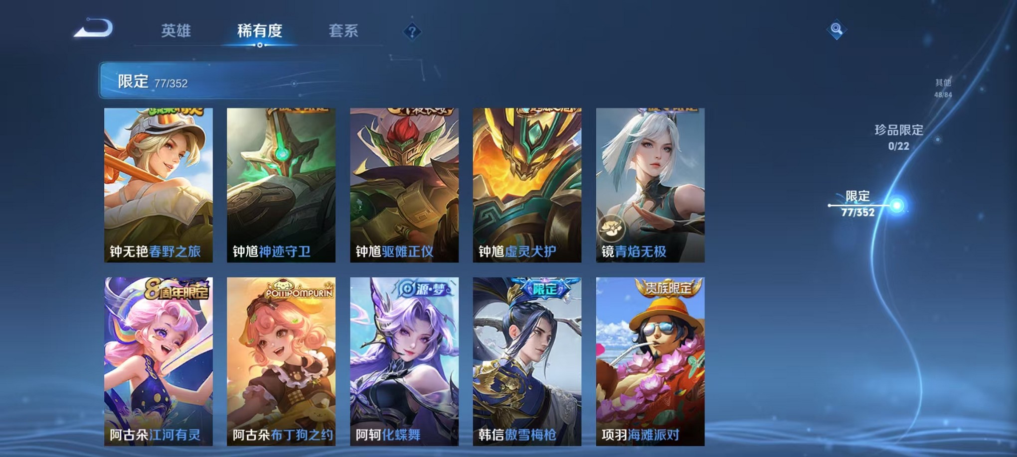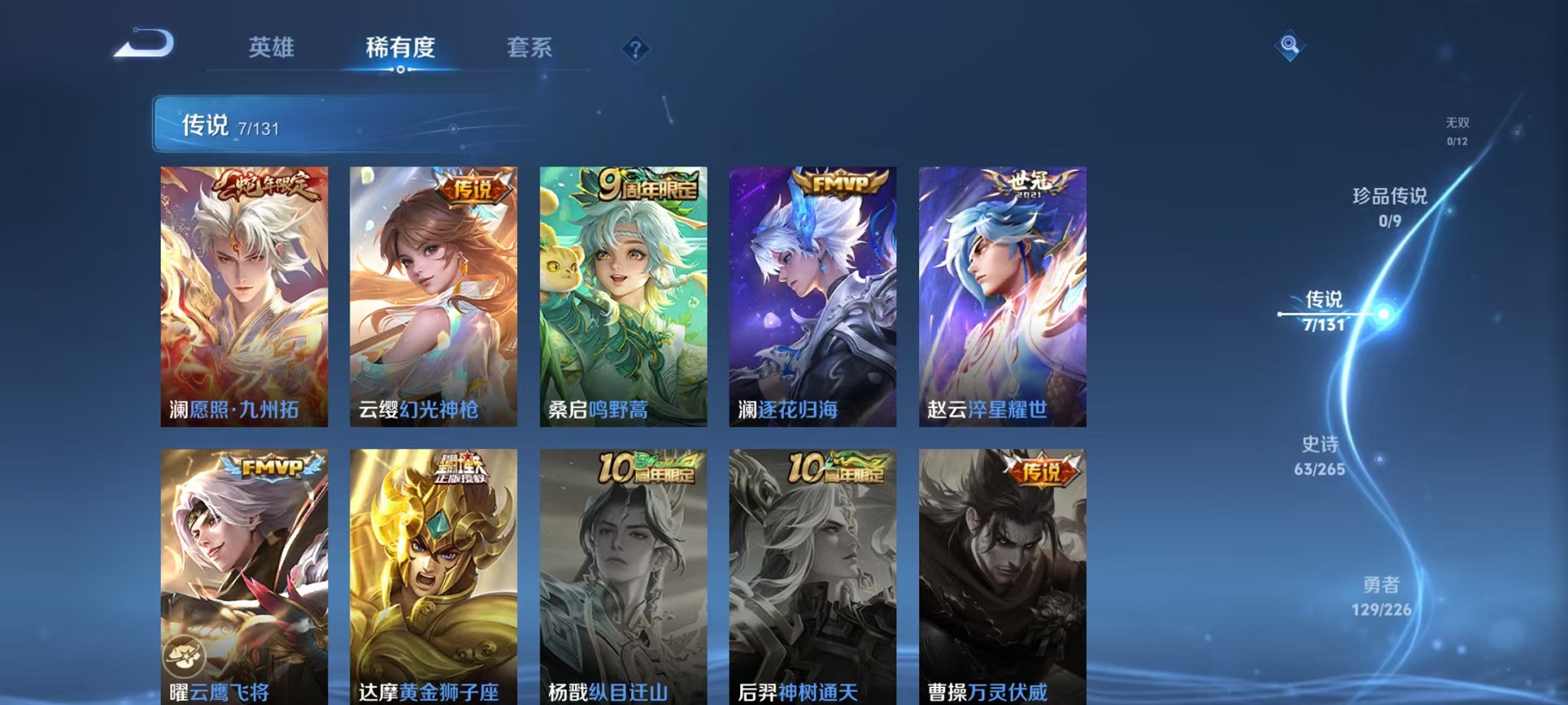 127英雄-247皮肤-可二次【247皮肤7传说夺宝积分306 可秒换绑】安卓qq-127英雄-247皮肤【传说皮肤】逐花归海 鸣野蒿 幻光神呛 愿照·九州拓 黄金狮子座 云鹰飞将 淬星耀世【史诗皮肤】百解令 万灵启世 龙之律动 至尊宝 百相守梦 百相守梦 琥珀纪元 电玩·爆裂旋风 蔬乡物语 青焰无极 热力回旋 舞动绿茵 拒霜思 功夫厨神 女仆咖啡 魅力维加斯 魔术师 鹰眼统帅 圣诞恋歌 无限星赏官