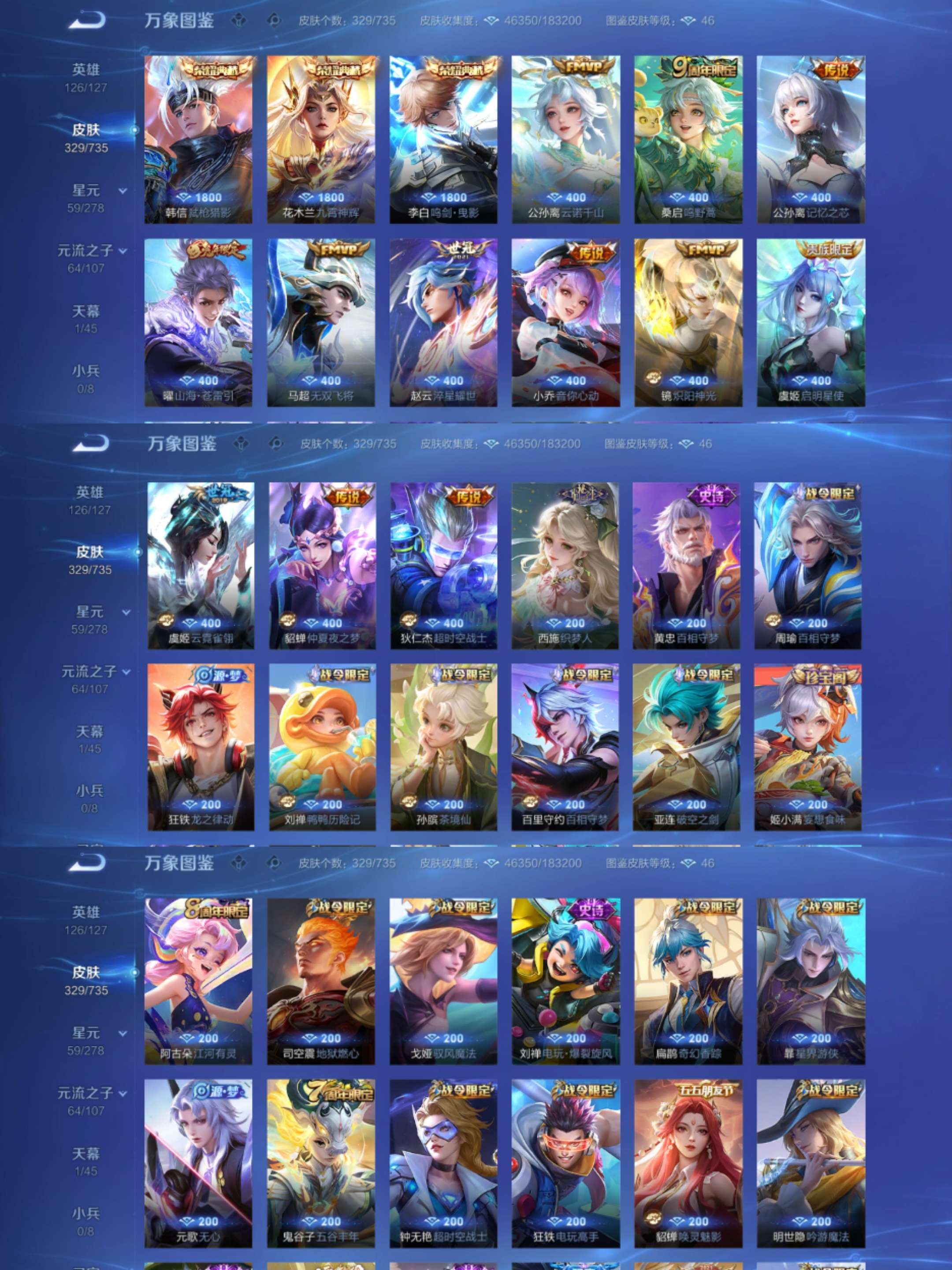 126英雄-329皮肤-可二次【3水晶1星元11传说弑呛猎影九霄神辉鸣剑·曳影可秒换绑】安卓qq-126英雄-329皮肤【3水晶】 弑呛猎影 九霄神辉 鸣剑·曳影【星元皮肤】金色仲夏夜【传说皮肤】记忆之芯 山海·苍雷引 无双飞将 超时空战士 仲夏夜之梦 炽阳神光 音你心动 云霓雀翎 启明星使 鸣野蒿 淬星耀世【史诗皮肤】大圣娶亲 至尊宝 破空之剑 百相守梦 奇幻香踪 星界游侠 驭风魔法 电玩·爆裂旋风