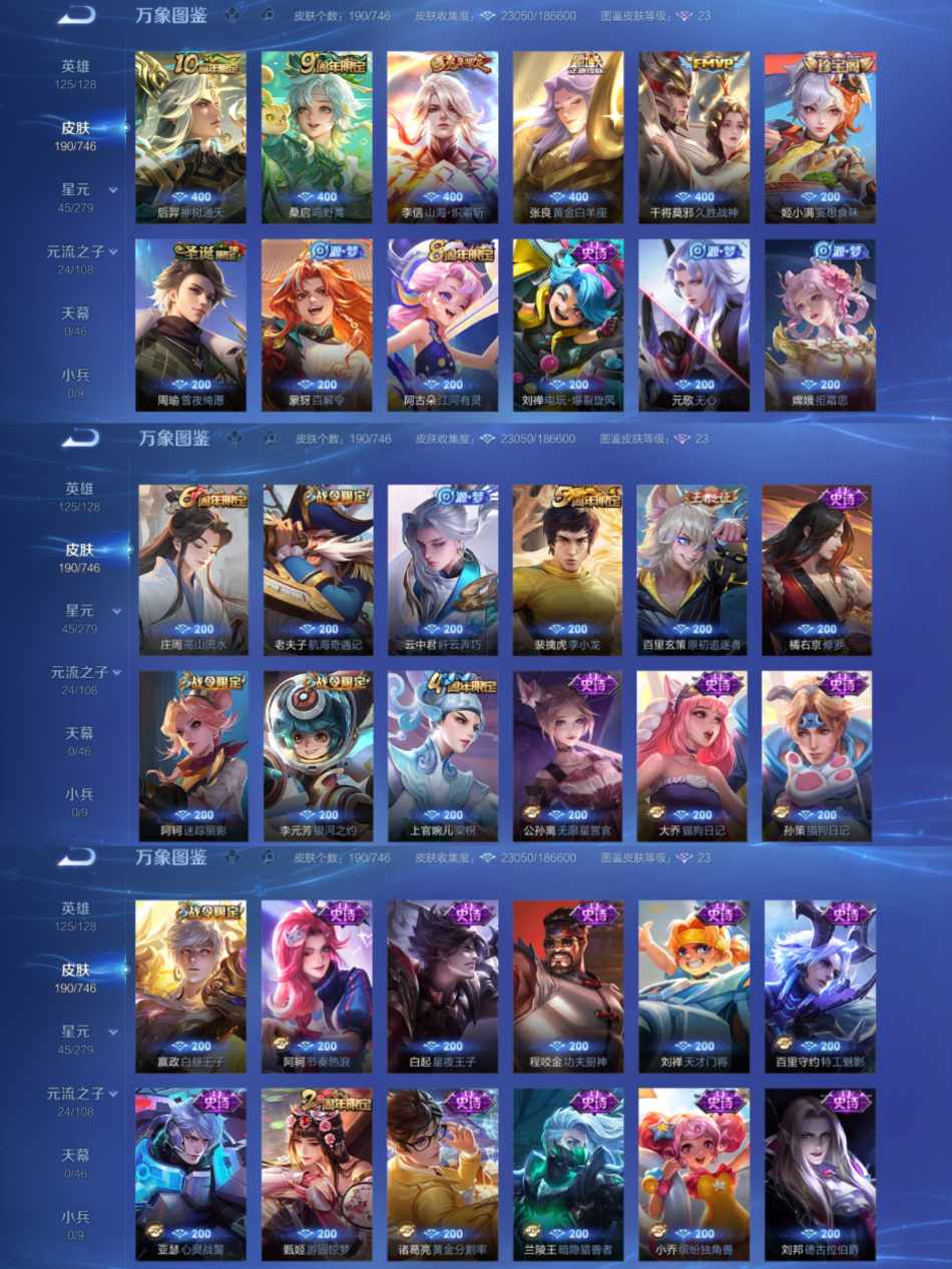 125英雄-190皮肤-可二次【190皮肤5传说可秒换绑】安卓qq-125英雄-190皮肤【传说皮肤】神树通天 山海·炽霜斩 久胜战神 黄金白羊座 鸣野蒿【史诗皮肤】百解令 至尊宝 电玩·爆裂旋风 幽灵船长 拒霜思 功夫厨神 猫狗日记 修罗 暗隐猎兽者 航海奇遇记 千年之狐 银河之约 地狱岩魂 德古拉伯爵 绅士熊喵 天才门将 电玩小子 金属风暴 龙骑士 梁祝 李小龙 猫狗日记 水果甜心 缤纷独角兽 心