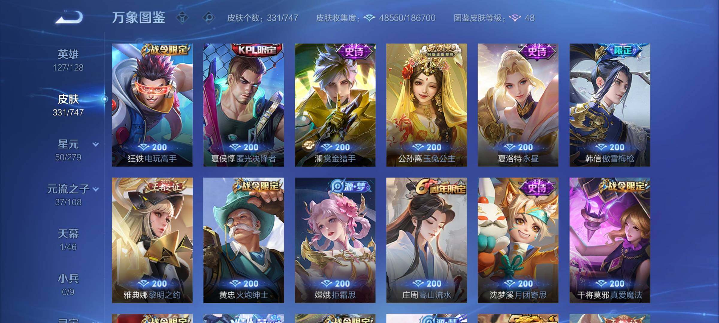 连体吃鸡4粉6呛五爪金龙【店长推荐·弑呛猎影·孙策时之奇旅·千劫归真·蛇年差蔡文姬·霜月吟·夜礼服假面·影龙天霄·诗剑行·无双飞将·乞巧织情·镜炽阳神光·云鹰飞将·一念神魔·白虎志·可二次】w7436-安卓q-127英雄-331皮肤-13王者印记-300铭文-贵族积分7w【贵族8】【1典藏·1珍品·27传说·1天幕·19按键】【因赛季更新游戏段付以上号为准!】 【英雄全皮】:达摩全皮,狂铁