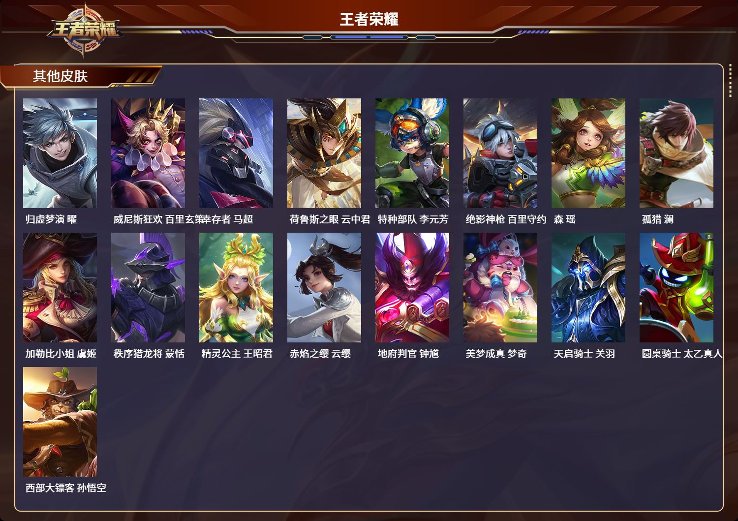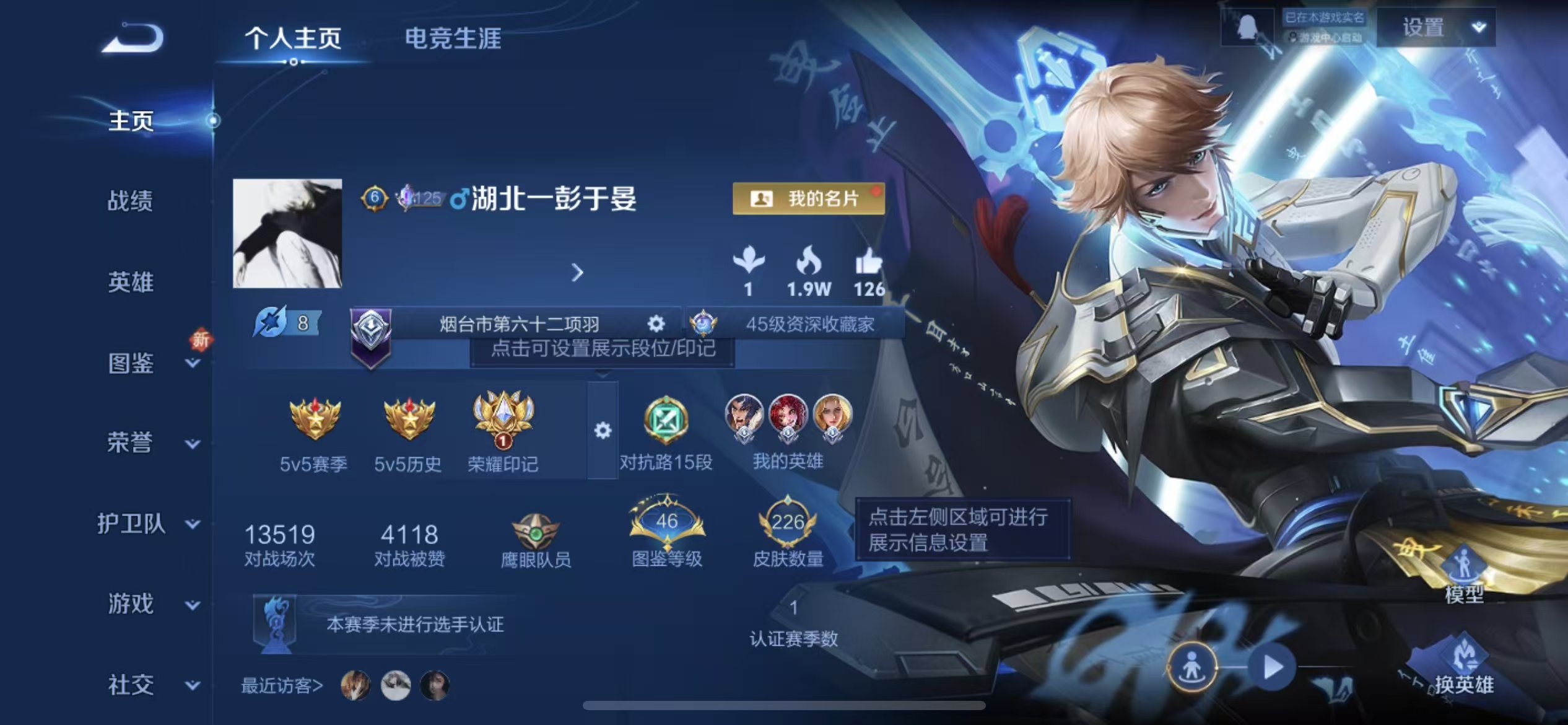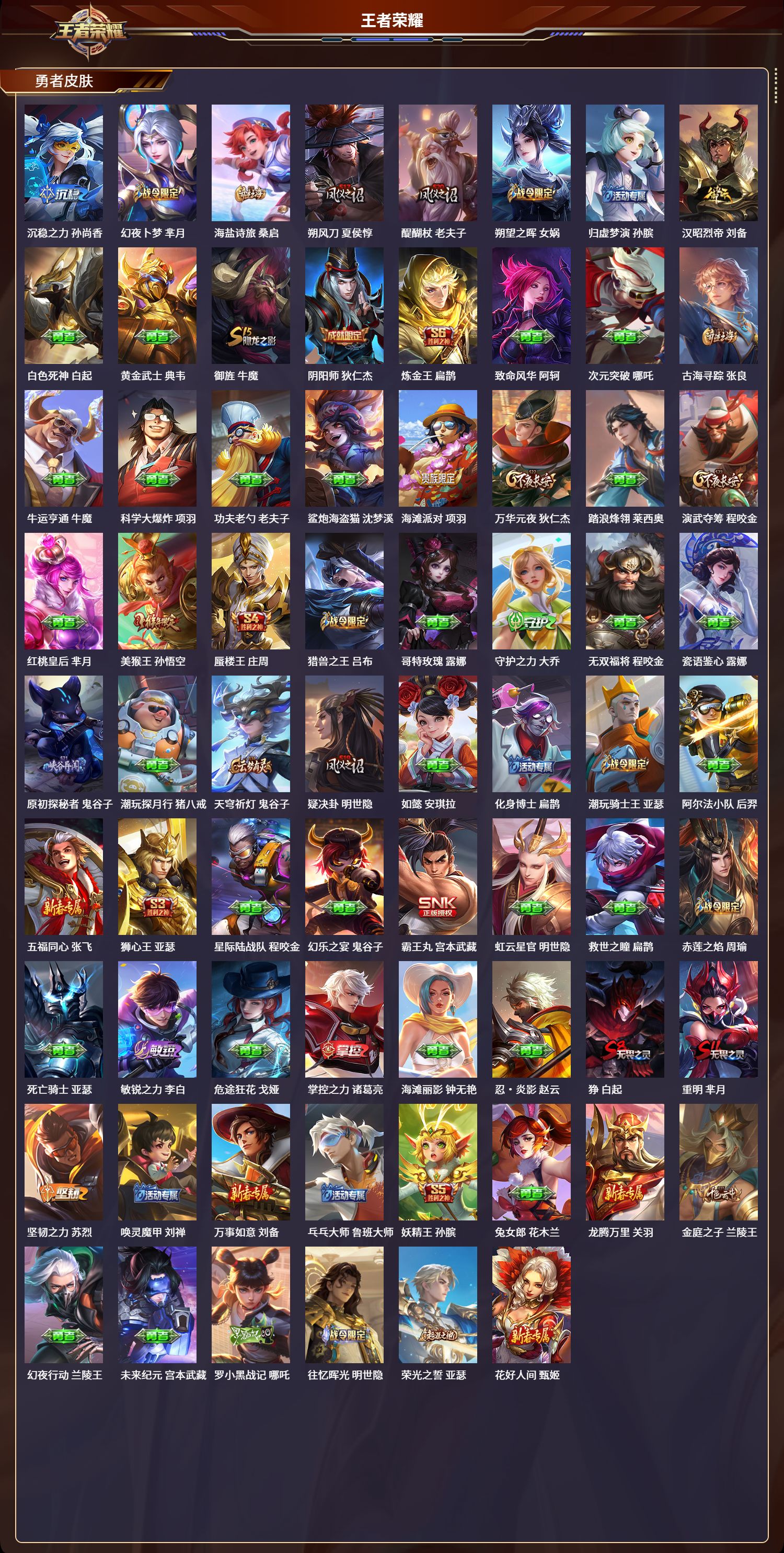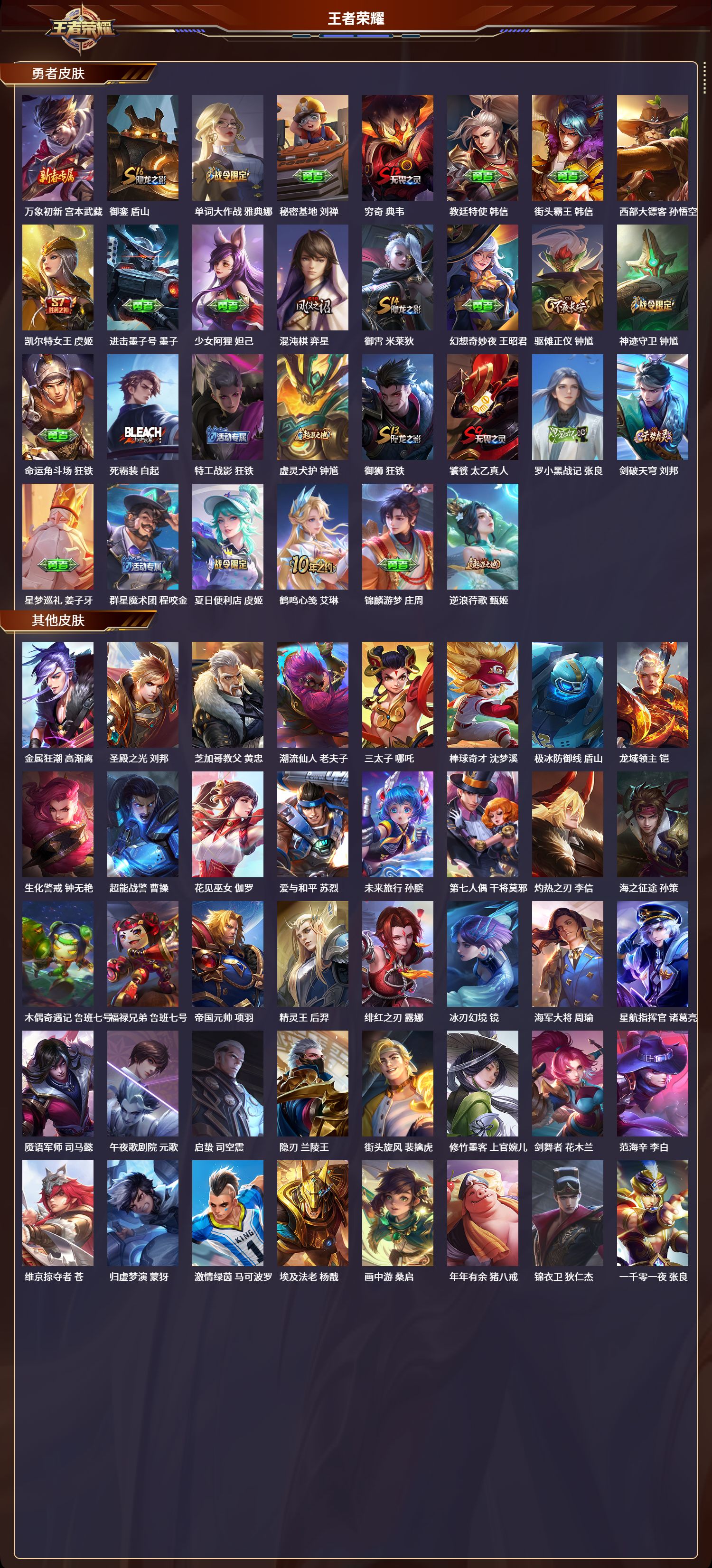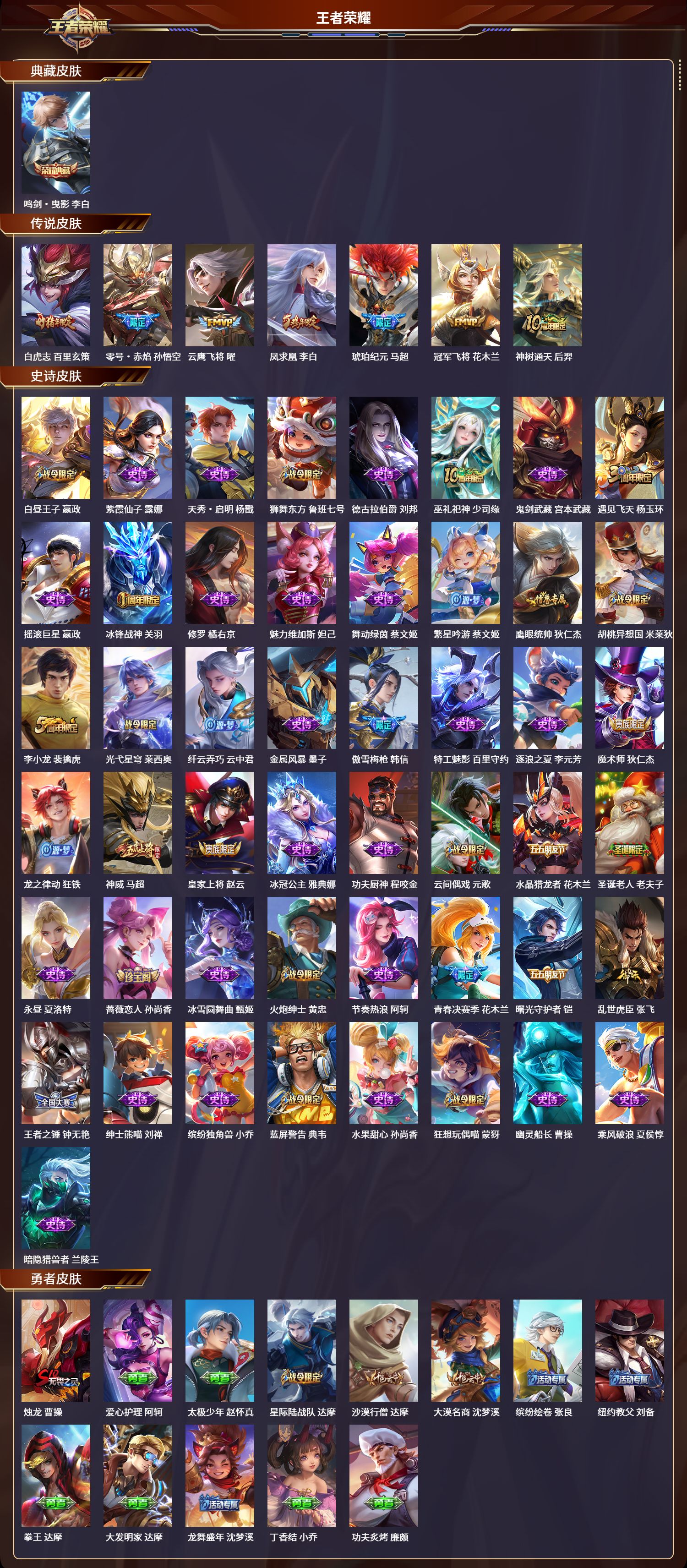 苹果qq/荣耀王者/226皮肤/124英雄/1典藏/0珍品无双/0无双/0珍品传说/7传说/49史诗/8稀有英雄【1 典藏皮肤】鸣剑·曳影 李白【7 传说皮肤】白虎志 百里玄策零号·赤焰 孙悟空云鹰飞将 曜凤求凰 李白琥珀纪元 马超冠军飞将 花木兰神树通天 后羿【49 史诗皮肤】白昼王子 嬴政紫霞仙子 露娜天秀·启明 杨戬狮舞东方 鲁班七号德古拉伯爵 刘