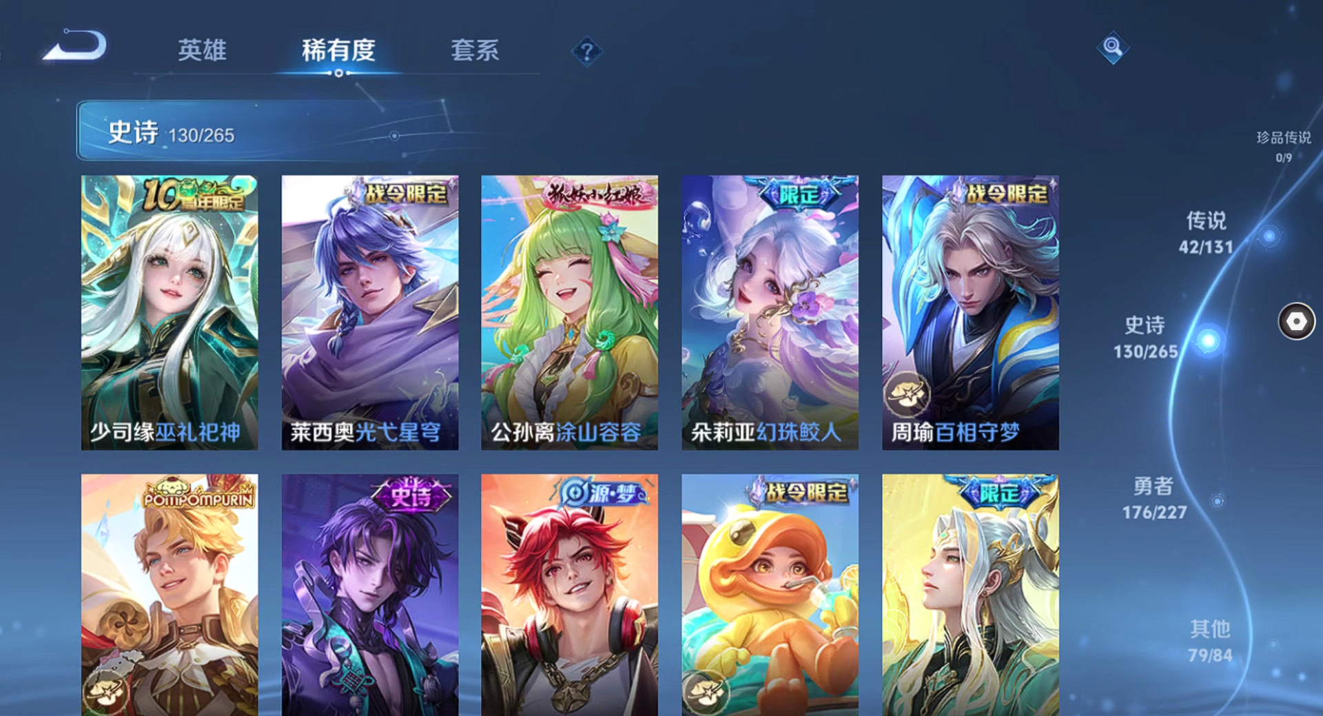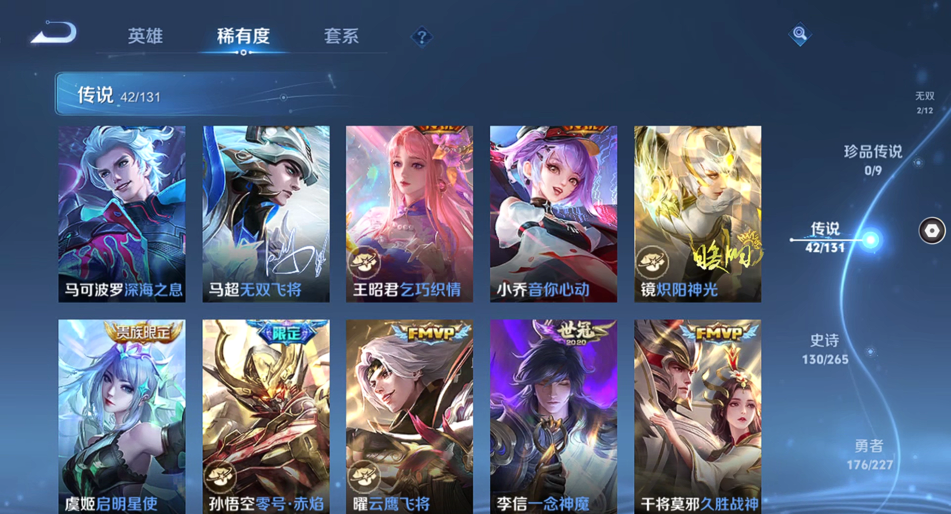【王者荣耀】【lywz22965】珍品无双0 典藏5 无双2 珍品传说0 传说42 史诗130 英雄127 皮肤434 贵族9级 荣耀典藏:全息碎影|天鹅之梦|赤影疾锋|弑呛猎影|星空梦想__无双皮肤:碎月剑心|天机白泽__传说皮肤:鸣野蒿|深海之息|无双飞将|炽阳神光|启明星使|胖达荣荣|地狱之眼|地狱火|海洋之心|云霓雀翎|久胜战神|黄金狮子座|黄金射手座|一念神魔|云鹰飞将|冠军飞将|乞巧织情|电玩·雷克斯|浮生妄|鹤羽星尊|孙尚香-末日机甲|白虎志|凤求凰|惊梅引|铠-琥珀纪元|零号·赤焰|鲁班七号-时之奇旅|马超-琥珀纪元|怒海麟威|霜月吟|天魔缭乱|小乔-音你心动|夜礼服假面|影龙天霄|永恒水手月亮|遇见神鼓|逐花归海|云缨-鹤归松栖|云中君-群星魔术团|至美·化雀舞|灼幽烈阳|神树通天__稀有限定:御风骁将|至尊宝|青龙志|大圣娶亲|引擎之心|岱宗|神威|孙行者|傲雪梅呛|梁祝|拒霜思|暗影游猎|百解令|百里守约-真我赫兹|大漠名商|地狱燃心|电玩高手|古海寻踪|海滩派对|海盐诗旅|航海奇遇记|幻夜卜梦|皇家上将|辉光之辰|火炮绅士|剑破天穹|江河有灵|金庭之子|镜-真我赫兹|决胜骁骑|黎明之约|美猴王|迷踪丽影|魔法小厨娘|魔术师|匿光侦查者|奇幻香踪|千军破阵|擒涛扼浪|青焰无极|驱傩正仪|燃音魔法|荣光圣徽|沙漠行僧|死亡摇滚|探海日志|天穹祈灯|玩趣恶龙|妄想食味|无心|五谷丰年|午后时光|纤云弄巧|星界游侠|星空之诺|演武夺筹|夜都怪侠|阴阳师|吟游魔法|驭风魔法|遇见飞天|原初追逐者|云间偶戏|真爱魔法|暗夜贵公子|暗夜猫娘|暗隐猎兽者|暗渊魔法|缤纷独角兽|冰冠公主|冰雪圆舞曲|乘风破浪|大乔-猫狗日记|德古拉伯爵|地狱岩魂|电玩·爆裂旋风|伽罗-琥珀纪元|功夫厨神|鬼剑武藏|唤灵魅影|黄金分割率|箭羽风息|节奏热浪|金属风暴|莱西奥-末日机甲|乐园奇幻夜|李元芳-蔬乡物语|龙骑士|吕布-末日机甲|魅力维加斯|魅语|女仆咖啡|偶像歌手|热力回旋|赏金猎手|上官婉儿-群星魔术团|绅士熊喵|圣诞狂欢|圣诞恋歌|鲁班七号-蔬乡物语|水果甜心|水晶猎龙者|孙策-猫狗日记|滕王阁序|天才门将|天秀·启明|晚萤|赵云-未来纪元|闲日渔趣|星夜王子|雪夜绮愿|摇滚巨星|鹰眼统帅|幽灵船长|遇见神鹿|云中君-时之祈愿|至美·乘鲤谣|钟无艳-超时空战士|逐浪之夏|紫霞仙子|赵怀真-鹤归松栖|百里守约-百相守梦|老夫子-百相守梦|陌上桑|谪仙醉月|噬灭天穹|撼地雄心|破空之剑|蔡文姬-夏日便利店|虞姬-夏日便利店|天穹之誓|浮光幕影|怒海争锋|海诺-心动手记|修罗|曙光守护者|心灵战警|千年之狐|孙尚香-时之恋人|无限星赏官|舞动绿茵|特工魅影|心灵骇客|茶境仙|星界战将|谧流熔炉|器灵·浮梦炉|云中旅人|玲珑珍味|朔望之晖|钟馗-神迹守卫|孙悟空-神迹守卫|流音漫舞|访茗客|暖冬·兔眠|灵卜魔法|苍威无极|圣弓游侠|墨子-神迹守卫|落雪兰心|刘禅-鸭鸭历险记|沈梦溪-鸭鸭历险记|灵蛊蚀心|龙之律动|布丁狗之约|虚灵犬护|布丁狗之誓|逆浪荇歌|孙策-百相守梦|周瑜-百相守梦|幻珠鲛人|涂山容容|光弋星穹|往忆晖光|荣光之誓|巫礼祀神|鹤鸣心笺__优质皮肤:尼罗河女神|一千零一夜|创世神祝|年年有余|埃及法老|孤猎|木偶奇遇记|熊喵少女|午夜歌剧院|露花倒影|未来旅行|激情绿茵|海之征途|天启骑士|碧珀绯影|秩序猎龙将|锦衣卫|冰刃幻境|森|超能战警|英喵野望|维京掠夺者|海军大将|绯红之刃|踏雪寻梅|启蛰|战争骑士|伊势巫女|画中游|生化警戒|威尼斯狂欢|第七人偶|潮流仙人|芝加哥教父|街头旋风|绝影神呛|地府判官|荷鲁斯之眼|幸存者|赤焰之缨|福禄兄弟|隐刃|前尘|特种部队|三太子|精灵王|剑舞者|范海辛|星航指挥官|龙域领主|爱与和平|占星师|花间舞|魇语军师|极冰防御线|花见巫女|棒球奇才|东海龙王|蔷薇王座|灼热之刃|精准探案法|圣殿之光|帝国元帅|战争女神|霓裳曲|加勒比小姐|阿摩司公爵|异域舞娘|精灵公主|修竹墨客|万圣前夜|怪诞之夜|动物派对|长夏之忆|破阵·退雄兵|异域游侠|暗都幽影|功夫炙烤|暖冬絮语|幻夜行动|聚星闪耀|潮玩探月行|瓷语鉴心|秘密基地|次元突破|鲨炮海盗猫|野性能量|丁香结|虹云星官|守护之力|坚韧之力|幻乐之宴|功夫老勺|命运角斗场|幻想奇妙夜|海滩丽影|阿尔法小队|兔女郎|死亡骑士|黄金武士|少女阿狸|天使之翼|玩偶对对碰|宫本武藏-未来纪元|红桃皇后|忍·炎影|爱心护理|街头霸王|教廷特使|鸿运当头|金色潮汐|漠中幻影|时空谍影|决胜大满贯|破局者|王牌新星|零食大作战|西部游侠|太极少年|乐园追猎者|牛运亨通|幻泉雾影|危途狂花|胡桃狂想曲|契约魔法|潮玩牛仔|紫罗兰之誓|铁甲之心|次元傲视|黑桃队长|进击墨子号|拳王|时尚教父|鲤鱼之梦|救世之瞳|白色死神|爱与正义|程咬金-星际陆战队|白执事|大发明家|哥特玫瑰|魅影绮裳|西施-雪境奇遇|金福满堂|星梦巡礼|灵卦秘语|爆裂喵拳|景韶洛都|浪漫序章|缤纷绘卷|掌控之力|雾都夜雨|逐霄战戟|铁骨偃魂|纽约教父|龙腾万里|乱世虎臣|经纬探寻者|敏锐之力|西施-归虚梦演|孙悟空-西部大镖客|牛魔-西部大镖客|鲁班大师-归虚梦演|龙舞盛年|汉昭烈帝|乓乓大师|五福同心|盾山-圆桌骑士|蒙犽-归虚梦演|万事如意|曜-归虚梦演|唤灵魔甲|太乙真人-圆桌骑士|沉稳之力|赤莲之焰|程咬金-群星魔术团|完美运算|化身博士|花好人间|熔金海岸|春野之旅|无尽旅途|万象初新|潮玩骑兵|苍林狼骑|蔚蓝守将|劲