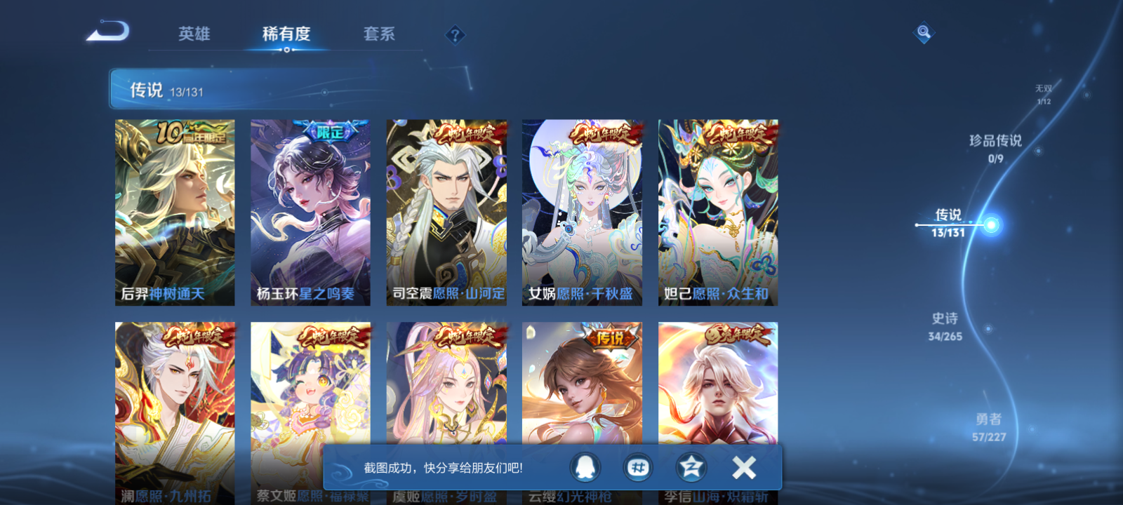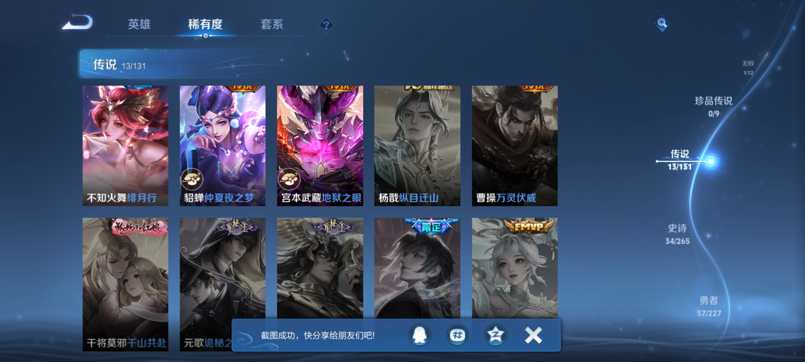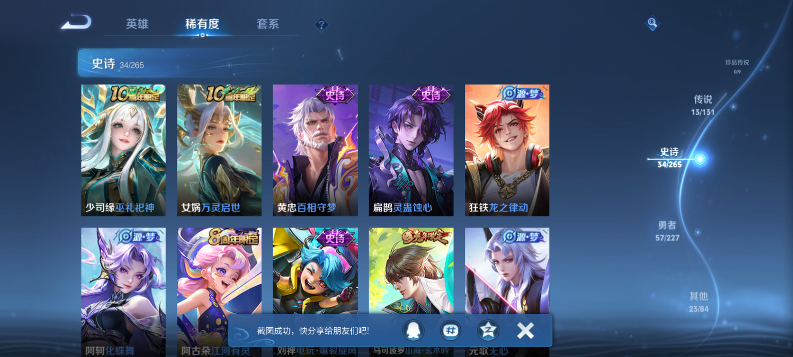 【王者荣耀】【lywz22954】珍品无双0 典藏1 无双1 珍品传说0 传说13 史诗34 英雄124 皮肤129 贵族7级 荣耀典藏:星域神启__无双皮肤:器灵·螭龙剑__传说皮肤:地狱之眼|仲夏夜之梦|绯月行|山海·炽霜斩|幻光神呛|愿照·岁时盈|愿照·山河定|愿照·九州拓|愿照·众生和|愿照·福禄聚|星之鸣奏|愿照·千秋盛|神树通天__稀有限定:飞衡|梁祝|山海·玄木吟|大漠名商|古海寻踪|海滩派对|海盐诗旅|胡桃夹子|皇家上将|江河有灵|金庭之子|魔术师|擒涛扼浪|沙漠行僧|探海日志|天穹祈灯|无心|阴阳师|缤纷独角兽|乘风破浪|电玩·爆裂旋风|鬼剑武藏|箭羽风息|节奏热浪|金属风暴|吕布-末日机甲|魅力维加斯|魅语|女仆咖啡|水果甜心|水晶猎龙者|晚萤|星夜王子|鹰眼统帅|钟无艳-超时空战士|紫霞仙子|心灵战警|千年之狐|舞动绿茵|谧流熔炉|化蝶舞|云中旅人|落雪兰心|灵蛊蚀心|龙之律动|布丁狗之约|虚灵犬护|逆浪荇歌|黄忠-百相守梦|荣光之誓|万灵启世|巫礼祀神|鹤鸣心笺__优质皮肤:创世神祝|孤猎|午夜歌剧院|碧珀绯影|冰刃幻境|超能战警|维京掠夺者|踏雪寻梅|潮流仙人|芝加哥教父|绝影神呛|地府判官|幸存者|星航指挥官|龙域领主|魇语军师|极冰防御线|花见巫女|异域舞娘|万圣前夜|次元突破|野性能量|虹云星官|幻想奇妙夜|死亡骑士|黄金武士|天使之翼|忍·炎影|街头霸王|教廷特使|鸿运当头|时空谍影|王牌新星|拳王|星梦巡礼|灵卦秘语|景韶洛都|浪漫序章|铁骨偃魂|龙腾万里|孙悟空-西部大镖客|龙舞盛年|乓乓大师|万事如意|曜-归虚梦演|完美运算|花好人间|苍林狼骑|蔚蓝守将|劲辣红锅|妄想特派|春野闲踪|灵野札记|玫蓝誓约|命运加冕|踏浪烽翎|克喵|哪吒-罗小黑战记|径山谋武|逐霄之志__贵族等级:贵族7级__王者段位:非凡王者练手皮肤号 1典藏1无双 蛇年限定套 绯月行,山海·炽霜斩