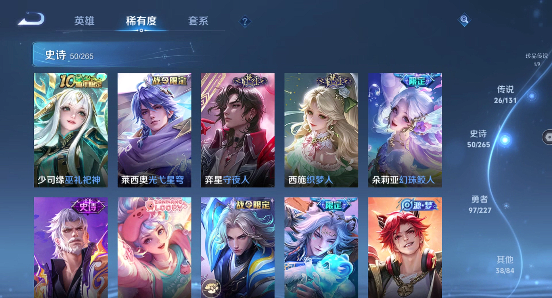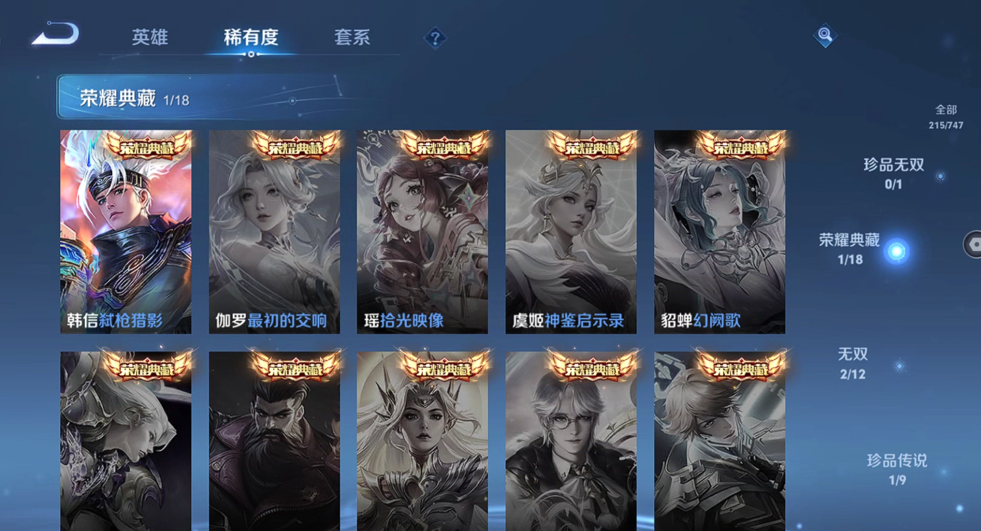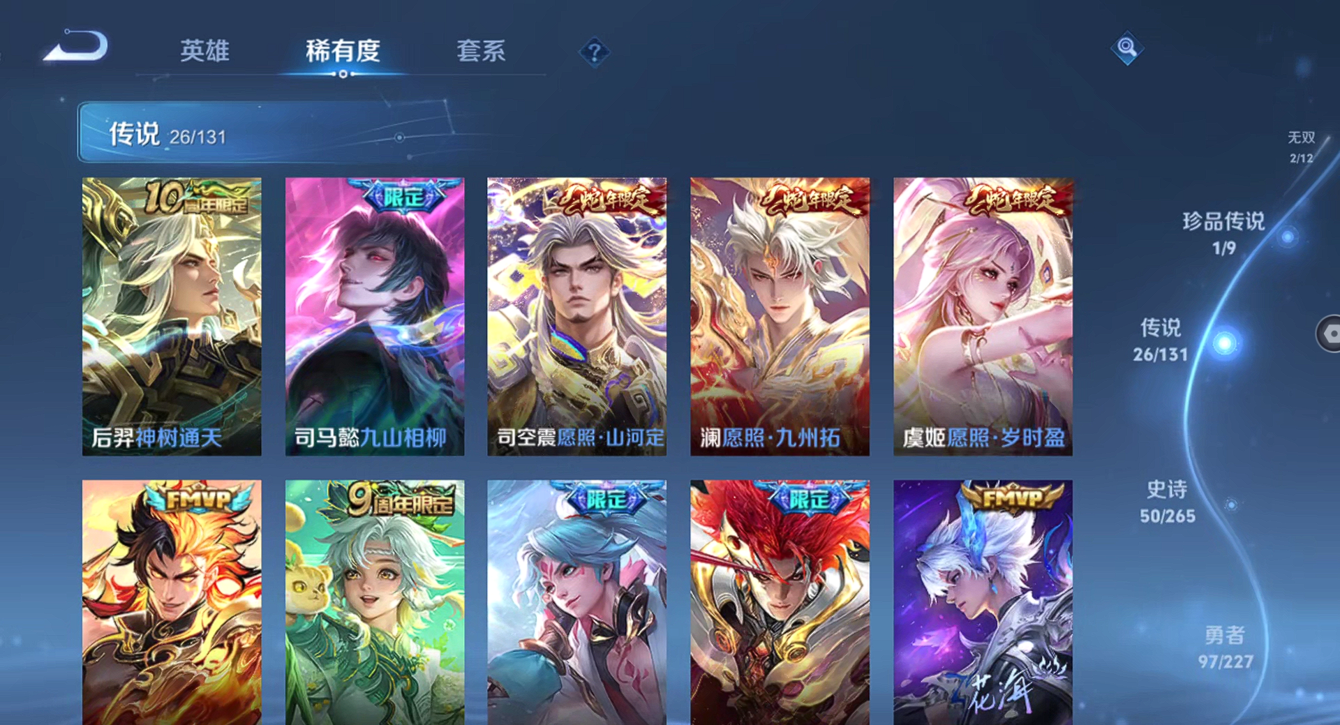 【王者荣耀】【lywz22940】珍品无双0 典藏1 无双2 珍品传说1 传说26 史诗50 英雄126 皮肤215 贵族8级 荣耀典藏:弑呛猎影__无双皮肤:器灵·螭龙剑|天机白泽__珍品传说:孙策-时之奇旅__传说皮肤:鸣野蒿|无双飞将|炽阳神光|启明星使|地狱之眼|黄金狮子座|狄仁杰-超时空战士|黄金白羊座|一念神魔|浮生妄|孙尚香-末日机甲|落雪白狼|马超-琥珀纪元|怒海麟威|祈雪灵祝|燃星之曲|诗剑行|霜月吟|妄想奇谈|逐花归海|祥瑞亨通|愿照·岁时盈|愿照·山河定|愿照·九州拓|九山相柳|神树通天__稀有限定:至尊宝|神威|李小龙|山海·玄木吟|海滩派对|胡桃异想国|皇家上将|剑破天穹|魔术师|匿光追影者|青焰无极|天穹祈灯|阴阳师|缤纷独角兽|冰雪圆舞曲|苍穹之光|功夫厨神|鬼剑武藏|黄金分割率|节奏热浪|金属风暴|李元芳-蔬乡物语|魅力维加斯|偶像歌手|圣诞狂欢|圣诞恋歌|鲁班七号-蔬乡物语|水果甜心|天秀·启明|赵云-未来纪元|星夜王子|鹰眼统帅|逐浪之夏|紫霞仙子|百里守约-百相守梦|老夫子-百相守梦|噬灭天穹|敬我三分|蔡文姬-夏日便利店|虞姬-夏日便利店|天穹之誓|曙光守护者|心灵战警|孙尚香-时之恋人|茶境仙|星界战将|谧流熔炉|万物之道|器灵·浮梦炉|化蝶舞|玲珑珍味|单词大作战|流音漫舞|访茗客|苍威无极|刘禅-鸭鸭历险记|沈梦溪-鸭鸭历险记|雪豹·霜爪|龙之律动|布丁狗之约|虚灵犬护|逆浪荇歌|孙策-百相守梦|周瑜-百相守梦|赞萌露比|幻珠鲛人|黄忠-百相守梦|织梦人|守夜人|光弋星穹|往忆晖光|荣光之誓|巫礼祀神|鹤鸣心笺__优质皮肤:年年有余|埃及法老|孤猎|午夜歌剧院|激情绿茵|海之征途|天启骑士|碧珀绯影|秩序猎龙将|锦衣卫|冰刃幻境|英喵野望|维京掠夺者|绯红之刃|启蛰|战争骑士|伊势巫女|生化警戒|威尼斯狂欢|街头旋风|地府判官|幸存者|赤焰之缨|隐刃|前尘|特种部队|精灵王|剑舞者|范海辛|龙域领主|魇语军师|灼热之刃|精灵公主|破阵·退雄兵|异域游侠|潮玩探月行|次元突破|鲨炮海盗猫|丁香结|功夫老勺|命运角斗场|幻想奇妙夜|海滩丽影|兔女郎|死亡骑士|少女阿狸|东方不败|红桃皇后|忍·炎影|爱心护理|街头霸王|教廷特使|太极少年|牛运亨通|幻泉雾影|潮玩造梦师|胡桃狂想曲|铁甲之心|重装意志|次元傲视|无尽征程|拳王|白色死神|白执事|大发明家|哥特玫瑰|魅影绮裳|西施-雪境奇遇|金福满堂|星梦巡礼|灵卦秘语|爆裂喵拳|景韶洛都|浪漫序章|雾都夜雨|铁骨偃魂|龙腾万里|敏锐之力|西施-归虚梦演|孙悟空-西部大镖客|鲁班大师-归虚梦演|龙舞盛年|乓乓大师|五福同心|万事如意|曜-归虚梦演|唤灵魔甲|沉稳之力|程咬金-群星魔术团|花好人间|熔金海岸|苍林狼骑|劲辣红锅|妄想特派|春野闲踪|灵野札记|玫蓝誓约|命运加冕|潮玩士官长|小满鸭|死霸装|无双福将|锦麟游梦|踏浪烽翎|戏梦巡演|落日弦歌|克喵|哪吒-罗小黑战记|径山谋武|极光幻客__贵族等级:贵族8级__王者段位:无双王者打野皮肤号 26按键 韩信典藏2无双 孙策珍品传说 琥珀纪元,九山相柳,启明星使,落雪白狼,愿照·山河定,浮生妄,祈雪灵祝,愿照·九州拓,逐花归海,霜月吟等限定皮肤