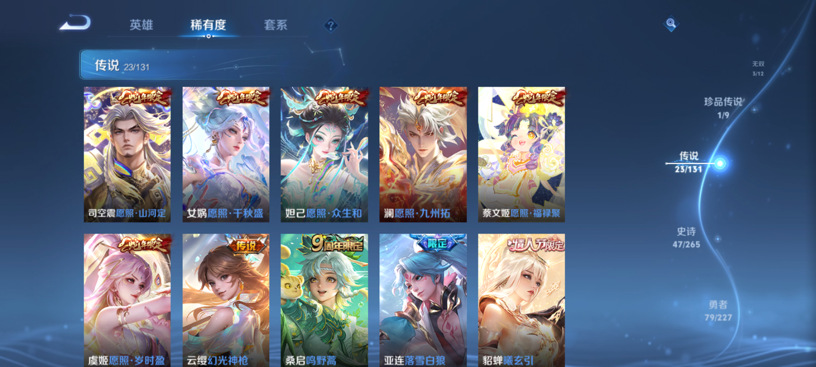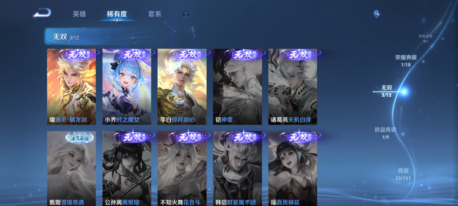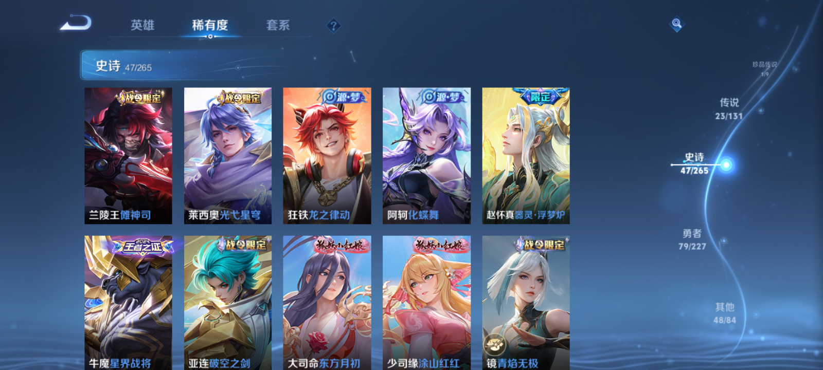 【王者荣耀】【lywz22935】珍品无双0 典藏1 无双3 珍品传说1 传说23 史诗47 英雄113 皮肤202 贵族8级 荣耀典藏:最初的交响__无双皮肤:时之魔女|碎月剑心|器灵·螭龙剑__珍品传说:怪盗基德__传说皮肤:鸣野蒿|炽阳神光|启明星使|胖达荣荣|黄金白羊座|记忆之芯|铠-琥珀纪元|落雪白狼|马超-琥珀纪元|貂蝉-曦玄引|战鼓燎原|逐花归海|乘龙·淬吴钩|乘龙·铭钟鼎|乘龙·问璇玑|灼幽烈阳|幻光神呛|愿照·岁时盈|愿照·山河定|愿照·九州拓|愿照·众生和|愿照·福禄聚|愿照·千秋盛__稀有限定:幽恒|烈魂|地狱燃心|海滩派对|华丽摇滚|皇家上将|剑破天穹|魔术师|青焰无极|燃音魔法|荣光圣徽|天狼运算者|天穹祈灯|纤云弄巧|夜都魔契|阴阳师|暗渊魔法|白蛇|冰雪圆舞曲|乘风破浪|乘龙·聚宝船|乘龙·忆丹青|德古拉伯爵|地狱岩魂|伽罗-琥珀纪元|功夫厨神|鬼剑武藏|节奏热浪|李元芳-蔬乡物语|魅力维加斯|女仆咖啡|偶像歌手|圣诞狂欢|鲁班七号-蔬乡物语|水果甜心|水晶猎龙者|晚萤|星夜王子|摇滚巨星|鹰眼统帅|遇见神鹿|月团寄思|噬灭天穹|敬我三分|破空之剑|东方月初|涂山红红|天穹之誓|特工魅影|心灵骇客|星界战将|谧流熔炉|器灵·浮梦炉|化蝶舞|朔望之晖|孙悟空-神迹守卫|暖冬·兔眠|灵卜魔法|苍威无极|龙之律动|布丁狗之约|虚灵犬护|光弋星穹|傩神司|往忆晖光|荣光之誓__优质皮肤:一千零一夜|年年有余|埃及法老|孤猎|木偶奇遇记|熊喵少女|午夜歌剧院|露花倒影|激情绿茵|海之征途|天启骑士|碧珀绯影|秩序猎龙将|锦衣卫|冰刃幻境|超能战警|英喵野望|维京掠夺者|踏雪寻梅|启蛰|画中游|威尼斯狂欢|潮流仙人|街头旋风|绝影神呛|荷鲁斯之眼|赤焰之缨|特种部队|三太子|精灵王|龙域领主|爱与和平|花间舞|魇语军师|花见巫女|棒球奇才|蔷薇王座|灼热之刃|精准探案法|帝国元帅|战争女神|霓裳曲|加勒比小姐|阿摩司公爵|修竹墨客|暗都幽影|潮玩探月行|瓷语鉴心|丁香结|命运角斗场|幻想奇妙夜|阿尔法小队|死亡骑士|天使之翼|宫本武藏-未来纪元|红桃皇后|忍·炎影|爱心护理|街头霸王|鸿运当头|金色潮汐|漠中幻影|时空谍影|零食大作战|西部游侠|胡桃狂想曲|拳王|时尚教父|鲤鱼之梦|程咬金-星际陆战队|魅影绮裳|西施-雪境奇遇|金福满堂|灵卦秘语|爆裂喵拳|景韶洛都|浪漫序章|掌控之力|雾都夜雨|逐霄战戟|铁骨偃魂|龙腾万里|孙悟空-西部大镖客|牛魔-西部大镖客|热血海滩|龙舞盛年|乓乓大师|万事如意|太乙真人-圆桌骑士|沉稳之力|程咬金-群星魔术团|熔金海岸|春野之旅|无尽旅途|万象初新|苍林狼骑|蔚蓝守将|劲辣红锅|特工战影|妄想特派|秘证寻踪|春野闲踪|灵野札记|玫蓝誓约|戏梦巡演|逐霄之志|极光幻客__贵族等级:贵族8级__王者段位:荣耀王者【打野42段 万战小国梦奇 3热门英雄金标】21按键 1典藏3无双 马可珍品传说 满蛇年限定套等限定皮肤
