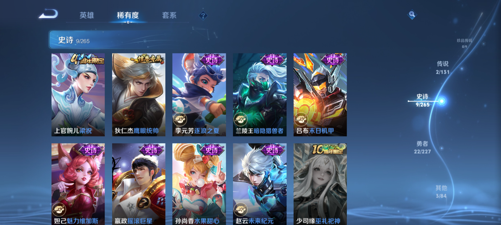 【王者荣耀】【lywz22911】珍品无双0 典藏1 无双0 珍品传说0 传说2 史诗9 英雄72 皮肤37 贵族1级 荣耀典藏:弑呛猎影__传说皮肤:地狱火|神树通天__稀有限定:梁祝|暗隐猎兽者|吕布-末日机甲|魅力维加斯|水果甜心|赵云-未来纪元|摇滚巨星|鹰眼统帅|逐浪之夏|噬灭天穹|谧流熔炉|虚灵犬护|逆浪荇歌|荣光之誓|鹤鸣心笺__优质皮肤:龙域领主|万圣前夜|死亡骑士|黄金武士|宫本武藏-未来纪元|街头霸王|拳王|西施-雪境奇遇|景韶洛都|浪漫序章|雾都夜雨|孙悟空-西部大镖客|万象初新|苍林狼骑|玫蓝誓约|命运加冕|死霸装|踏浪烽翎|哪吒-罗小黑战记__贵族等级:贵族1级__王者段位:无双王者【练手打野号】典藏韩信 地狱火 2按键