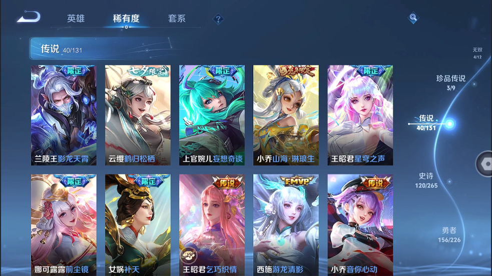 【女号基本都是女皮】背包1水 2典藏4无双3珍品 2星传说 27按键 3300紫星币 典藏:天鹅之梦,幻阙歌 无双:离恨烟,花合斗,青丘·九尾,时之魔女 珍品:大耳狗之梦,酷洛米之心,江户川柯南【王者荣耀】【lywz21052】珍品无双0 典藏2 无双4 珍品传说3 传说40 史诗120 英雄127 皮肤399 贵族9级 荣耀典藏:天鹅之梦|幻阙歌__无双皮肤:时之魔女|离恨烟|花合斗|青丘·九尾__珍品传说:江户川柯南|大耳狗之梦|酷洛米之心__传说皮肤:鸣野蒿|前尘镜|补天|炽阳神光|启明星使|仲夏夜之梦|云霓雀翎|久胜战神|猫影幻舞|云鹰飞将|游龙清影|乞巧织情|孙尚香-末日机甲|大乔-时之奇旅|金乌负日|时雨天司|太华|妄想奇谈|貂蝉-曦玄引|小乔-音你心动|星穹之声|夜礼服假面|影龙天霄|永恒水手月亮|逐花归海|乘龙·淬吴钩|乘龙·铭钟鼎|乘龙·问璇玑|云缨-鹤归松栖|山海·琳琅生|朵莉亚-心动手记|云中君-群星魔术团|至美·化雀舞|幻光神呛|愿照·众生和|愿照·福禄聚|星之鸣奏|愿照·千秋盛|续相思|神树通天__稀有限定:寅虎·心曲|白晶晶|幽恒|蔷薇恋人|玉兔公主|山海·碧波行|山海·玄木吟|神器·万象笔|时之彼端|唐三藏|拒霜思|暗影游猎|百解令|百里守约-真我赫兹|嫦娥-如梦令|妲己-时之奇旅|大漠名商|地狱燃心|繁星吟游|凤凰于飞|古海寻踪|海滩派对|海盐诗旅|皇家上将|剑破天穹|江河有灵|金庭之子|狂想玩偶喵|蓝屏警告|魔法小厨娘|魔术师|匿光破解者|奇幻香踪|擒涛扼浪|青焰无极|燃音魔法|荣光圣徽|沙漠行僧|探海日志|天穹祈灯|无心|五谷丰年|午后时光|纤云弄巧|星界游侠|阴阳师|吟游魔法|驭风魔法|遇见飞天|逐梦之音|暗夜贵公子|暗夜猫娘|暗隐猎兽者|白蛇|缤纷独角兽|冰冠公主|冰雪圆舞曲|乘风破浪|乘龙·聚宝船|乘龙·忆丹青|德古拉伯爵|地狱岩魂|浮梦罗烟|伽罗-琥珀纪元|功夫厨神|鬼剑武藏|唤灵魅影|节奏热浪|金属风暴|李元芳-蔬乡物语|吕布-末日机甲|玫瑰异探|魅力维加斯|魅语|梦奇-顽趣|女仆咖啡|奇遇舞章|青蛇|上官婉儿-群星魔术团|绅士熊喵|圣诞狂欢|圣诞恋歌|诗语江南|鲁班七号-蔬乡物语|水果甜心|水晶猎龙者|天才门将|天秀·幻梦|天秀·启明|完美假期|赵云-未来纪元|星夜王子|摇滚巨星|银翎春语|鹰眼统帅|永昼|幽灵船长|遇见神鹿|至美·乘鲤谣|逐浪之夏|紫霞仙子|百里守约-百相守梦|老夫子-百相守梦|噬灭天穹|敬我三分|破空之剑|涂山红红|埋骨钱|顽岩魄|蔡文姬-夏日便利店|虞姬-夏日便利店|天穹之誓|浮光幕影|海诺-心动手记|安琪拉-时之奇旅|修罗|曙光守护者|心灵战警|千年之狐|无限星赏官|舞动绿茵|特工魅影|心灵骇客|茶境仙|星界战将|谧流熔炉|万物之道|器灵·浮梦炉|化蝶舞|云中旅人|玲珑珍味|孙悟空-神迹守卫|流音漫舞|访茗客|暖冬·兔眠|灵卜魔法|苍威无极|仙境爱丽丝|刘禅-鸭鸭历险记|沈梦溪-鸭鸭历险记|龙之律动|布丁狗之约|虚灵犬护|石田雨龙|逆浪荇歌|黄忠-百相守梦|织梦人|涂山容容|光弋星穹|往忆晖光|荣光之誓|万灵启世|巫礼祀神|鹤鸣心笺__优质皮肤:尼罗河女神|一千零一夜|创世神祝|年年有余|埃及法老|孤猎|木偶奇遇记|熊喵少女|午夜歌剧院|露花倒影|未来旅行|激情绿茵|天启骑士|碧珀绯影|锦衣卫|冰刃幻境|森|超能战警|英喵野望|维京掠夺者|海军大将|绯红之刃|踏雪寻梅|启蛰|伊势巫女|画中游|生化警戒|威尼斯狂欢|第七人偶|潮流仙人|芝加哥教父|街头旋风|绝影神呛|地府判官|荷鲁斯之眼|幸存者|赤焰之缨|隐刃|前尘|特种部队|三太子|精灵王|剑舞者|范海辛|星航指挥官|龙域领主|爱与和平|占星师|花间舞|魇语军师|花见巫女|棒球奇才|东海龙王|蔷薇王座|灼热之刃|精准探案法|圣殿之光|战争女神|霓裳曲|加勒比小姐|阿摩司公爵|异域舞娘|精灵公主|修竹墨客|万圣前夜|怪诞之夜|动物派对|绒语心约|长夏之忆|暗都幽影|功夫炙烤|暖冬絮语|幻夜行动|聚星闪耀|潮玩探月行|虎啸剑宗|瓷语鉴心|秘密基地|次元突破|鲨炮海盗猫|野性能量|丁香结|虹云星官|守护之力|坚韧之力|幻乐之宴|功夫老勺|命运角斗场|幻想奇妙夜|海滩丽影|黑猫爱糖果|阿尔法小队|兔女郎|死亡骑士|黄金武士|少女阿狸|天使之翼|玩偶对对碰|宫本武藏-未来纪元|红桃皇后|忍·炎影|爱心护理|街头霸王|教廷特使|鸿运当头|金色潮汐|漠中幻影|时空谍影|决胜大满贯|破局者|王牌新星|零食大作战|西部游侠|太极少年|乐园追猎者|幻泉雾影|潮玩造梦师|危途狂花|胡桃狂想曲|契约魔法|潮玩牛仔|紫罗兰之誓|次元傲视|黑桃队长|幽兰居士|拳王|时尚教父|救世之瞳|白色死神|程咬金-星际陆战队|白执事|大发明家|哥特玫瑰|魅影绮裳|西施-雪境奇遇|金福满堂|星梦巡礼|灵卦秘语|爆裂喵拳|景韶洛都|浪漫序章|缤纷绘卷|掌控之力|雾都夜雨|逐霄战戟|铁骨偃魂|纽约教父|龙腾万里|乱世虎臣|经纬探寻者|敏锐之力|西施-归虚梦演|孙悟空-西部大镖客|牛魔-西部大镖客|鲁班大师-归虚梦演|热血海滩|龙舞盛年|汉昭烈帝|乓乓大师|五福同心|蒙犽-归虚梦演|万事如意|曜-归虚梦演|唤灵魔甲|太乙真人-圆桌骑士|沉稳之力|赤莲之焰|程咬金-群星魔术团|完美运算|化身博士|花好人间|熔金海岸|春野之旅|无尽旅途|万象初新|潮玩骑兵|苍林狼骑|蔚蓝守将|劲辣红锅|炽热元素使|妄想特派|秘证寻踪|春野闲踪|灵野札记|玫蓝誓约|命运加冕|小满鸭|死霸装|无双福将|锦麟游梦|踏浪烽翎|克喵|哪吒-罗小黑战记__贵族等