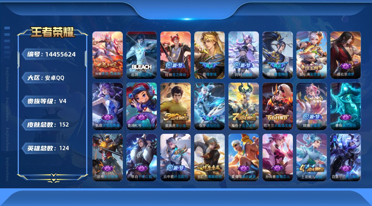 [14455624]hw8604安卓q-vundefined-至尊星耀v-122英雄-152皮肤-0典藏-0无双-0珍品传说-1传说-48史诗 【稀有英雄】 不知火舞 橘右京 夏洛特 娜可露露 韩信 艾琳 赵云 【传说皮肤】 乘龙·淬吴钩 【限定皮肤】 傲雪梅呛 【史诗皮肤】 电玩小子 末日机甲 百解令 高山流水 妄想食味 德古拉伯爵 心灵战警 五谷丰年 鬼剑武藏 龙之律动 石田雨龙 埋骨钱 怒海争锋 遇见飞天 修罗 拒霜思 魅力维加斯 鹰眼统帅 李小龙 纤云弄巧 金属风暴 傲雪梅呛 特工魅影 逐浪之夏 未来纪元 埋骨钱 皇家上将 功夫厨神 梁祝 圣诞恋歌 水晶猎龙者 怒海争锋 圣诞狂欢 浮光幕影 地狱岩魂 蔷薇恋人 冰雪圆舞曲 千年之狐 节奏热浪 琥珀纪元 绅士熊喵 缤纷独角兽 水果甜心 化蝶舞 江河有灵 幽灵船长 乘风破浪 暗隐猎兽者 【勇者皮肤】 时空谍影 沙漠行僧 大漠名商 暖冬絮语 纽约教父 大发明家 龙舞盛年 丁香结 沉稳之力 海盐诗旅 女武神 醍醐杖 归虚梦演 热血海滩 白色死神 黄金武士 阴阳师 次元突破 古海寻踪 科学大爆炸 功夫老勺 西部大镖客 海滩派对 万华元夜 演武夺筹 西部游侠 野性能量