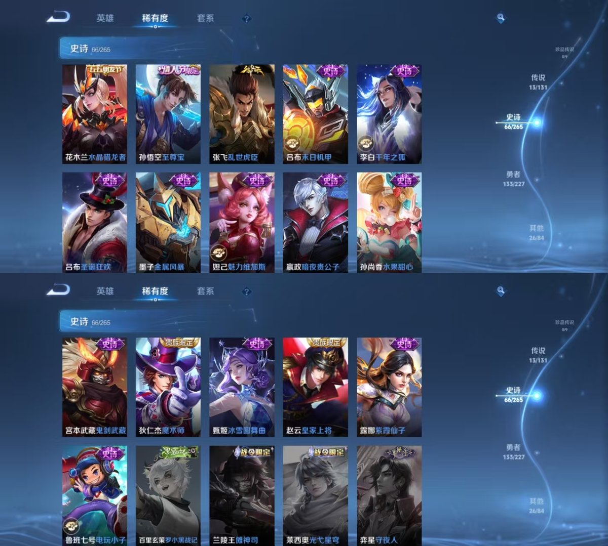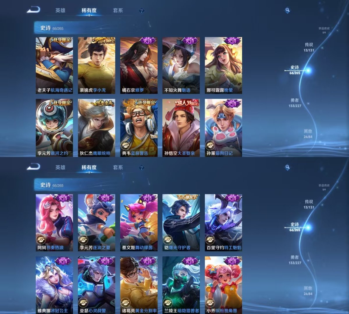 _2299145-实名:可修改贵族等级:v7英雄数:127皮肤数:239荣耀水晶:九霄神辉传说皮:久胜战神云霓雀翎末日机甲-孙尚香地狱火地狱之眼记忆之芯貂蝉曦玄引云诺千山限定皮:李小龙武圣美猴王白虎志至尊宝大圣娶亲五谷丰年神器·万象笔鸣野蒿逐霄战戟愿照·山河定愿照·九州拓