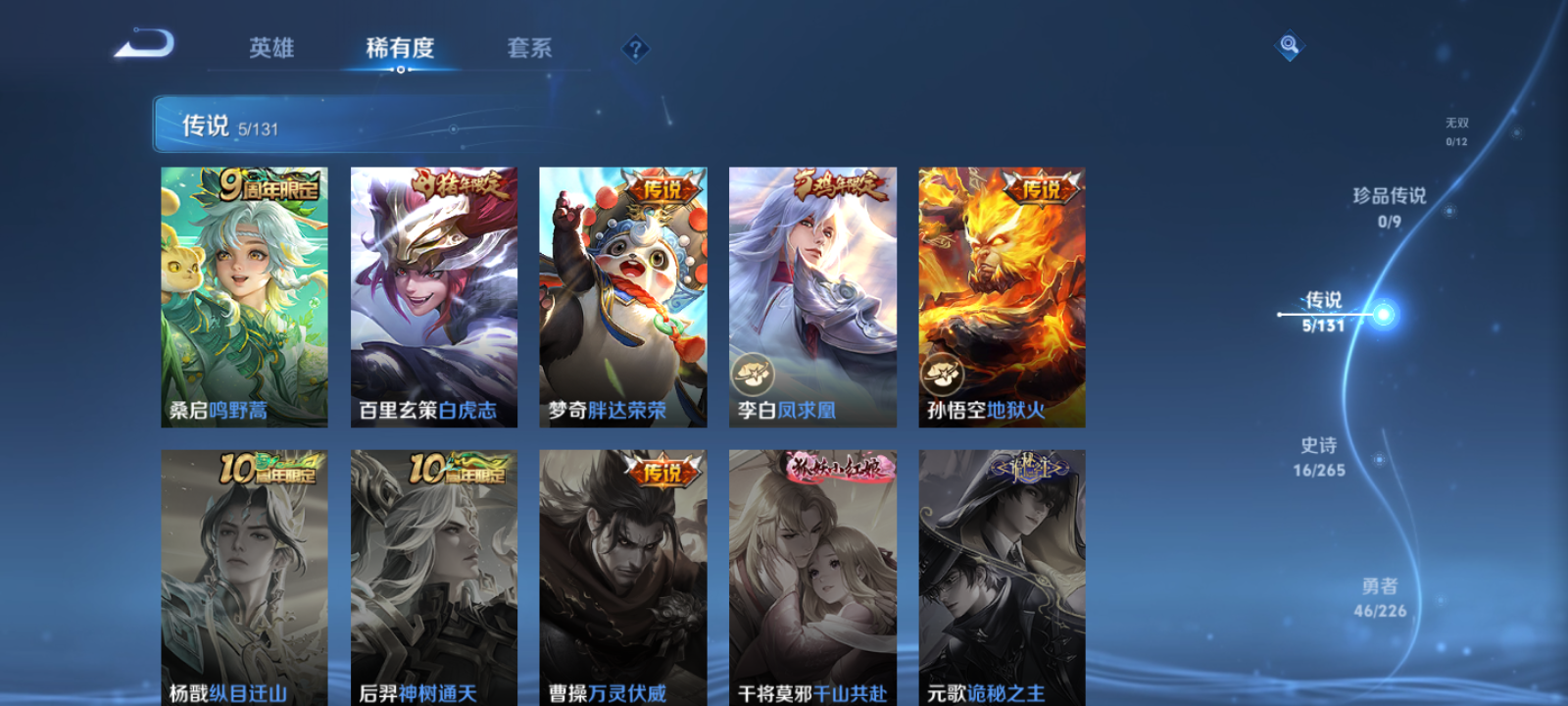 【王者荣耀】【lywz21121】珍品无双0 典藏0 无双0 珍品传说0 传说5 史诗16 英雄123 皮肤87 贵族0级 传说皮肤:鸣野蒿|胖达荣荣|地狱火|白虎志|凤求凰__稀有限定:青龙志|朱雀志|古海寻踪|海滩派对|海盐诗旅|皇家上将|剑破天穹|凯尔特女王|炼金王|擒涛扼浪|穷奇|死亡摇滚|探海日志|饕餮|天穹祈灯|妖精王|阴阳师|遇见飞天|御旌|御銮|御狮|白龙吟|德古拉伯爵|鬼剑武藏|金属风暴|魅力维加斯|水晶猎龙者|孙策-猫狗日记|鹰眼统帅|幽灵船长|逐浪之夏|紫霞仙子|噬灭天穹|修罗|御霄|狰|烛龙|重明|钟馗-神迹守卫|鹤鸣心笺__优质皮肤:埃及法老|孤猎|午夜歌剧院|激情绿茵|天启骑士|森|绯红之刃|踏雪寻梅|威尼斯狂欢|街头旋风|精灵王|星航指挥官|爱与和平|魇语军师|战争女神|异域舞娘|精灵公主|万圣前夜|虹云星官|幻乐之宴|功夫老勺|海滩丽影|死亡骑士|少女阿狸|玩偶对对碰|忍·炎影|教廷特使|破局者|西部游侠|危途狂花|拳王|时尚教父|致命风华|雾都夜雨|纽约教父|霸王丸|五福同心|曜-归虚梦演|完美运算|化身博士|万象初新__贵族等级:无贵族等级__王者段位:荣耀黄金【打野小号】白虎志凤求凰