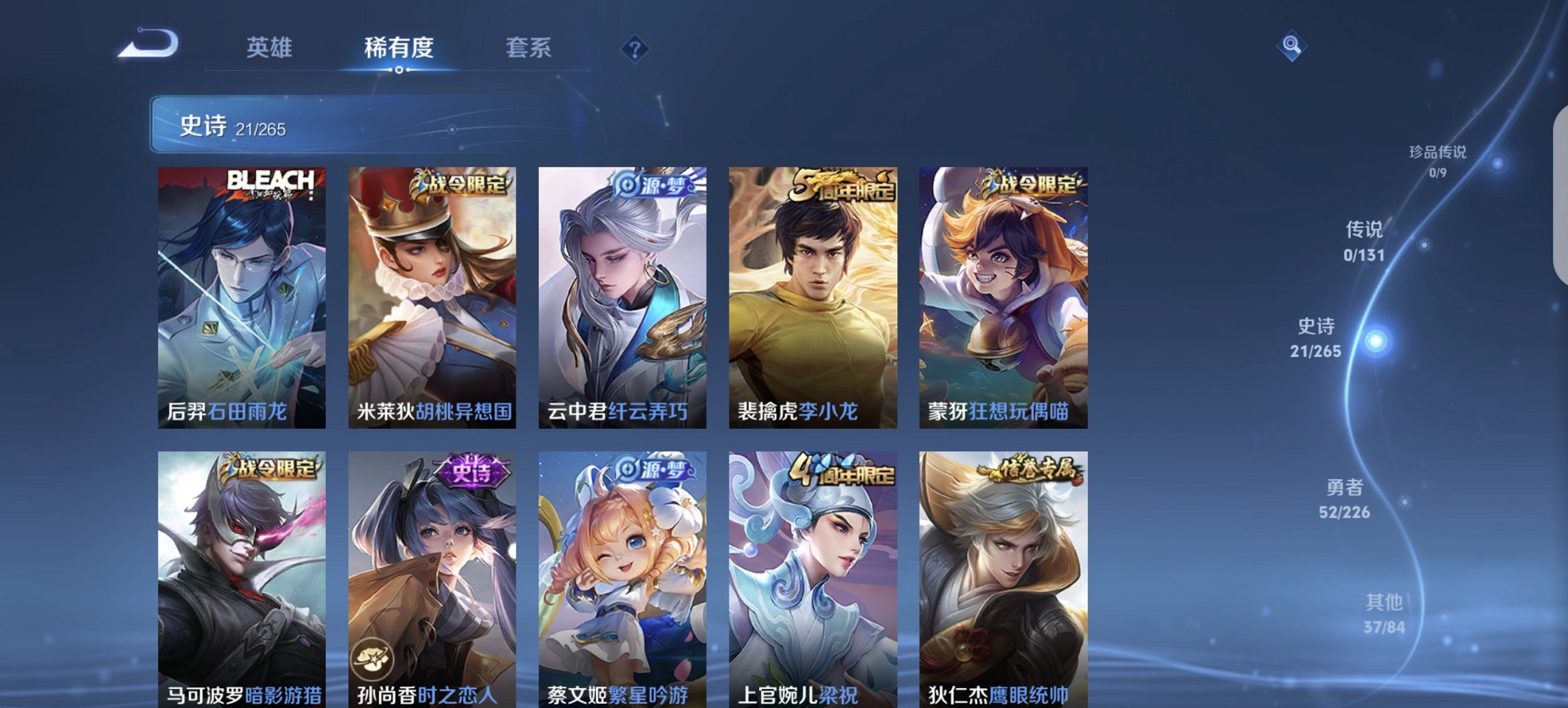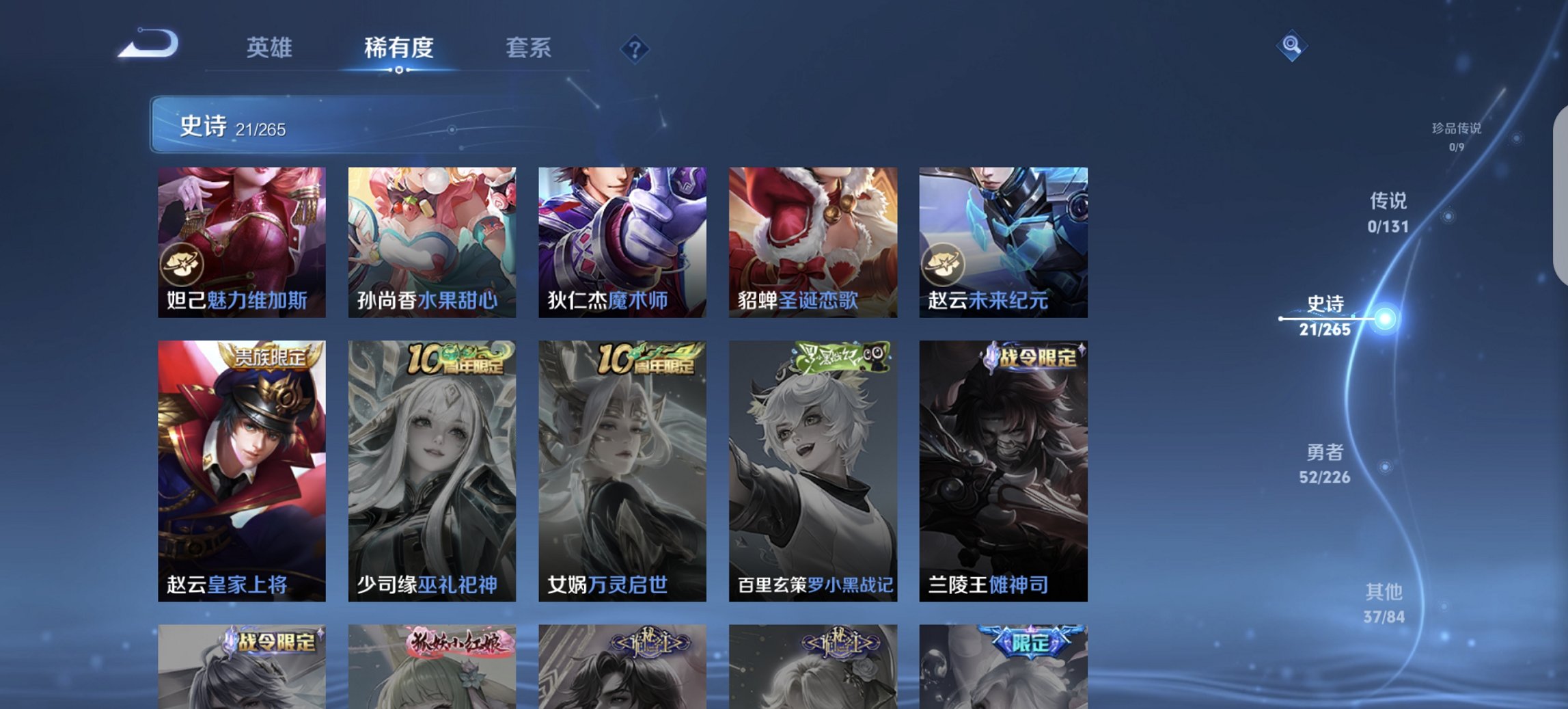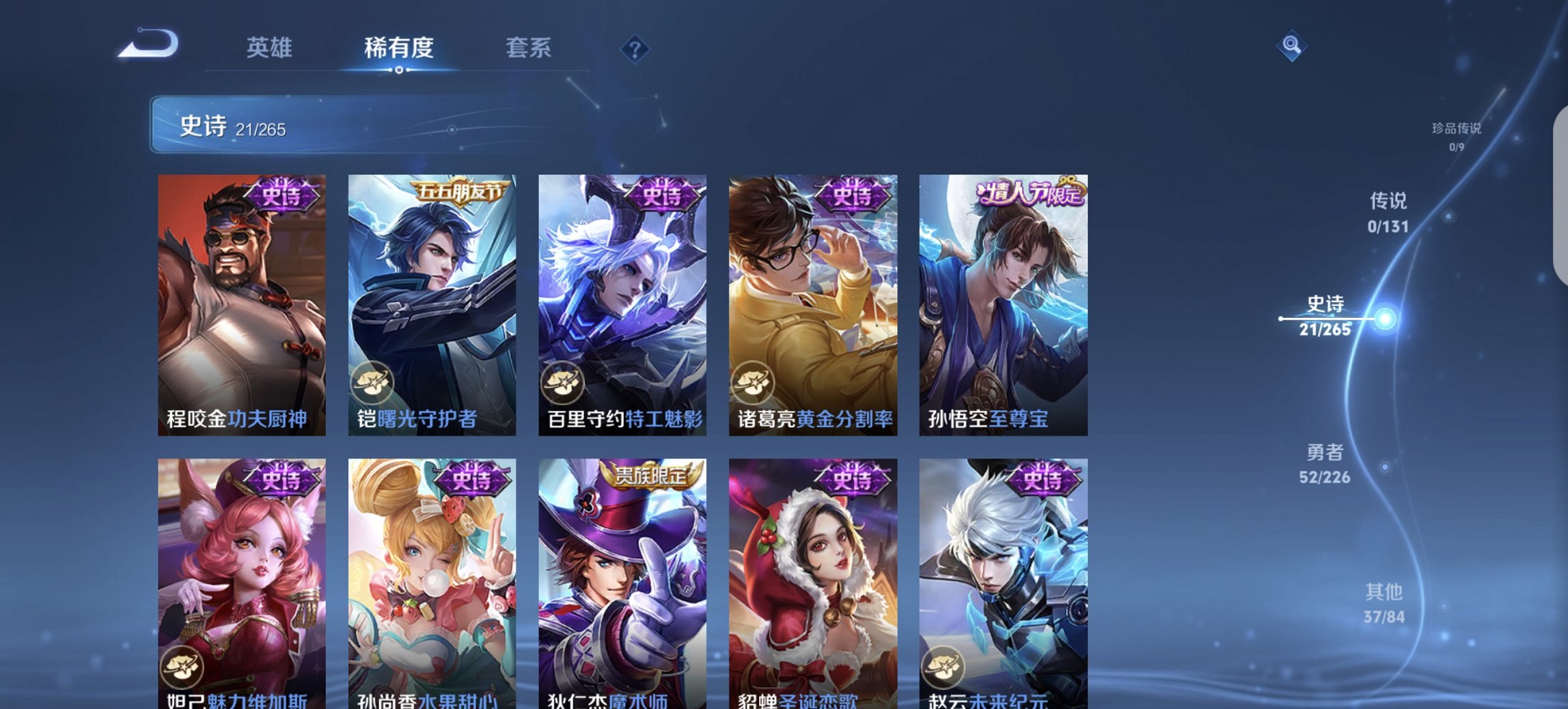 113英雄-110皮肤-【q54级 至尊宝特价号 秒换绑不用等】安卓qq-113英雄-110皮肤【史诗皮肤】至尊宝 石田雨龙 逆浪荇歌 繁星吟游 功夫厨神 魅力维加斯 魔术师 鹰眼统帅 圣诞恋歌 曙光守护者 暗影游猎 狂想玩偶喵 胡桃异想国 梁祝 李小龙 水果甜心 时之恋人 纤云弄巧 皇家上将 黄金分割率 未来纪元 特工魅影【勇者皮肤】命运角斗场 零食大作战 破局者 单词大作战 虚灵犬护 星梦巡礼 归