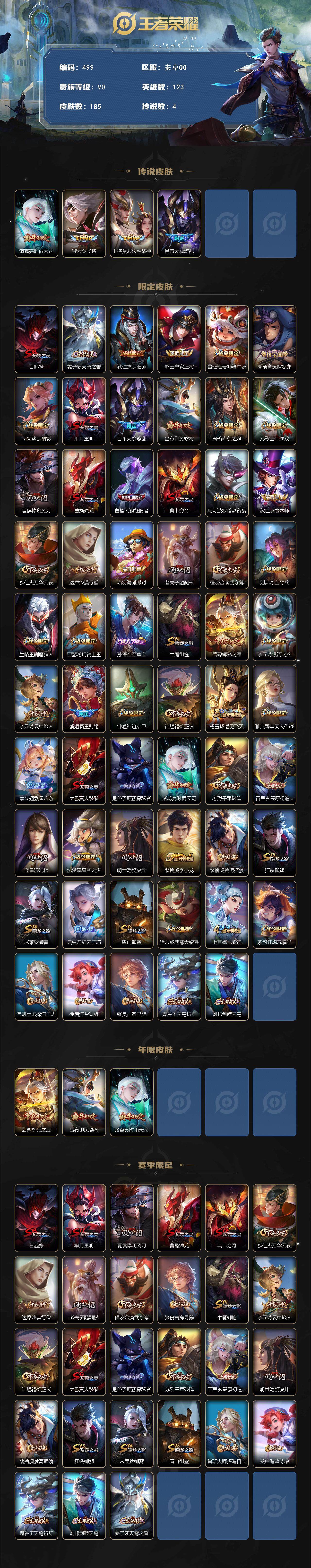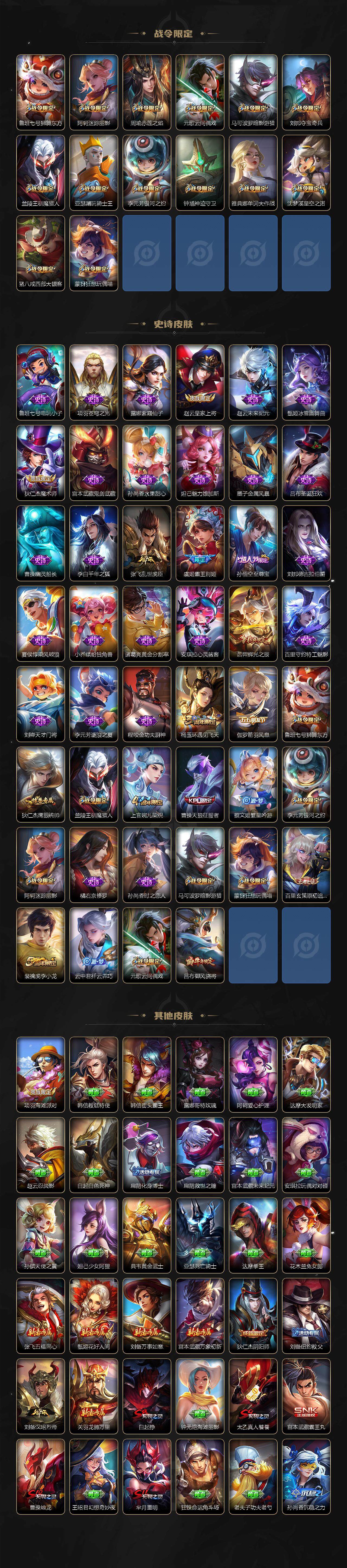 123英雄-185皮肤-贵族0/皮肤185/传说4/史诗46/英雄123/时雨天司 诸葛亮/云鹰飞将 曜/久胜战神 干将莫邪/天魔缭乱 吕布/狰 白起/天穹之誓 姜子牙/阴阳师 狄仁杰/皇家上将 赵云/狮舞东方 鲁班七号/玩趣恶龙 高渐离/迷踪丽影 阿轲/重明 芈月/御风骁将 吕布/赤莲之焰 周瑜/云间偶戏 元歌/朔风刀 夏侯惇/烛龙 曹操/天狼征服者 曹操/穷奇 典韦/暗影游猎 马可波罗/魔术师 狄仁杰/万华元夜